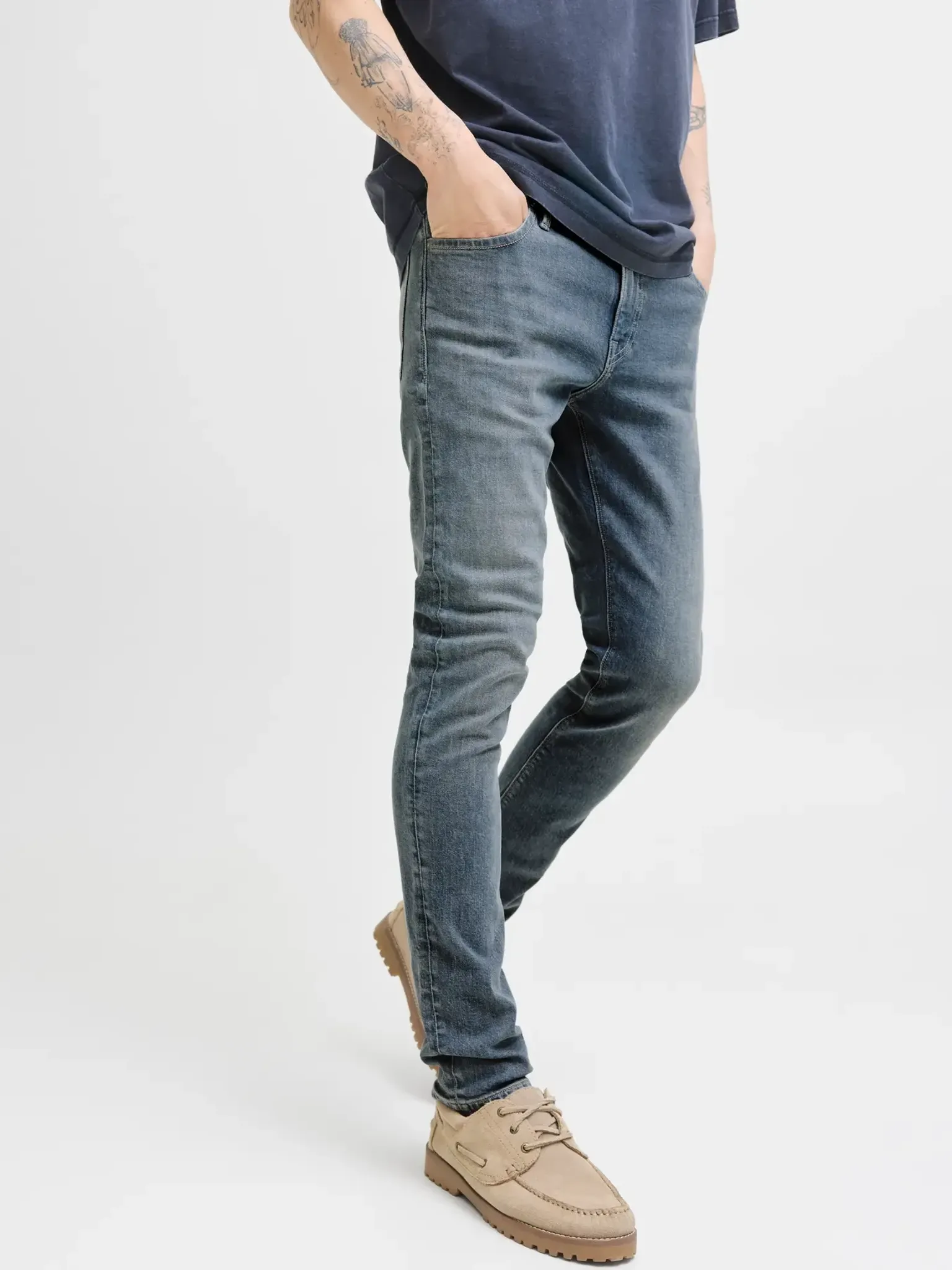 Jeansen i grey denim är designade för herrar och erbjuder en modern slim-fit passform som passar perfekt i både avslappnade och mer uppklädda sammanhang.