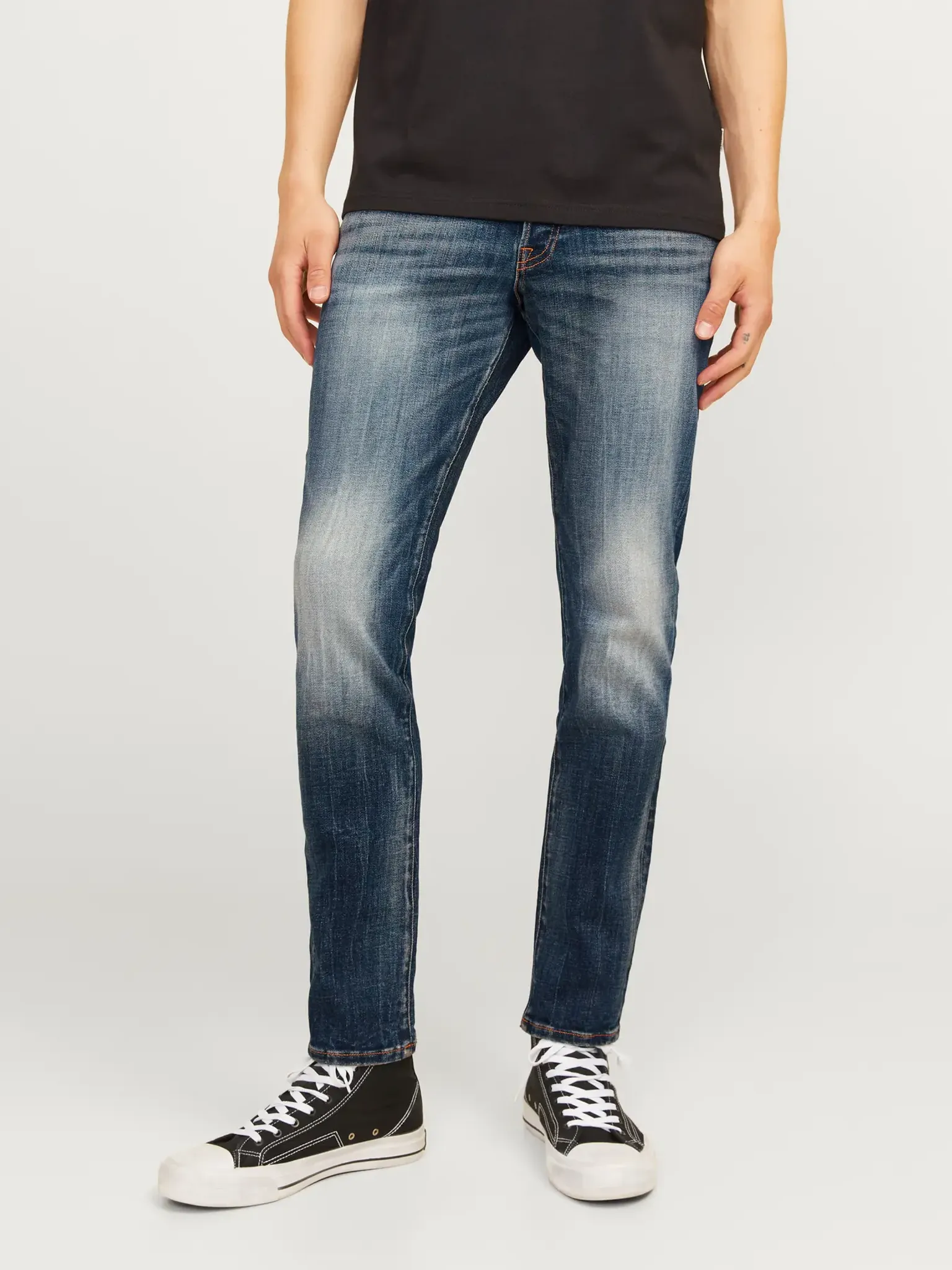Mörka slim fit jeans med stentvättad yta - GLENN