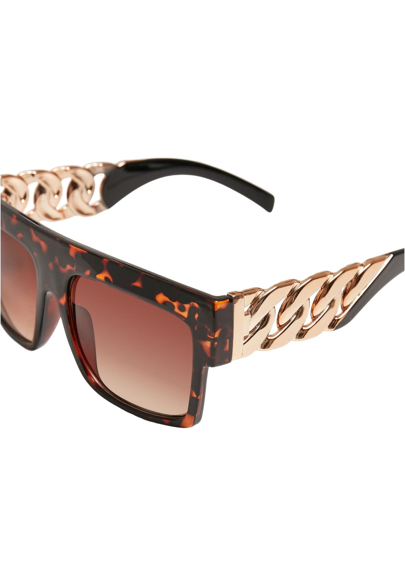 Stiliga solglasögon med guld kedja i färgen amber/gold