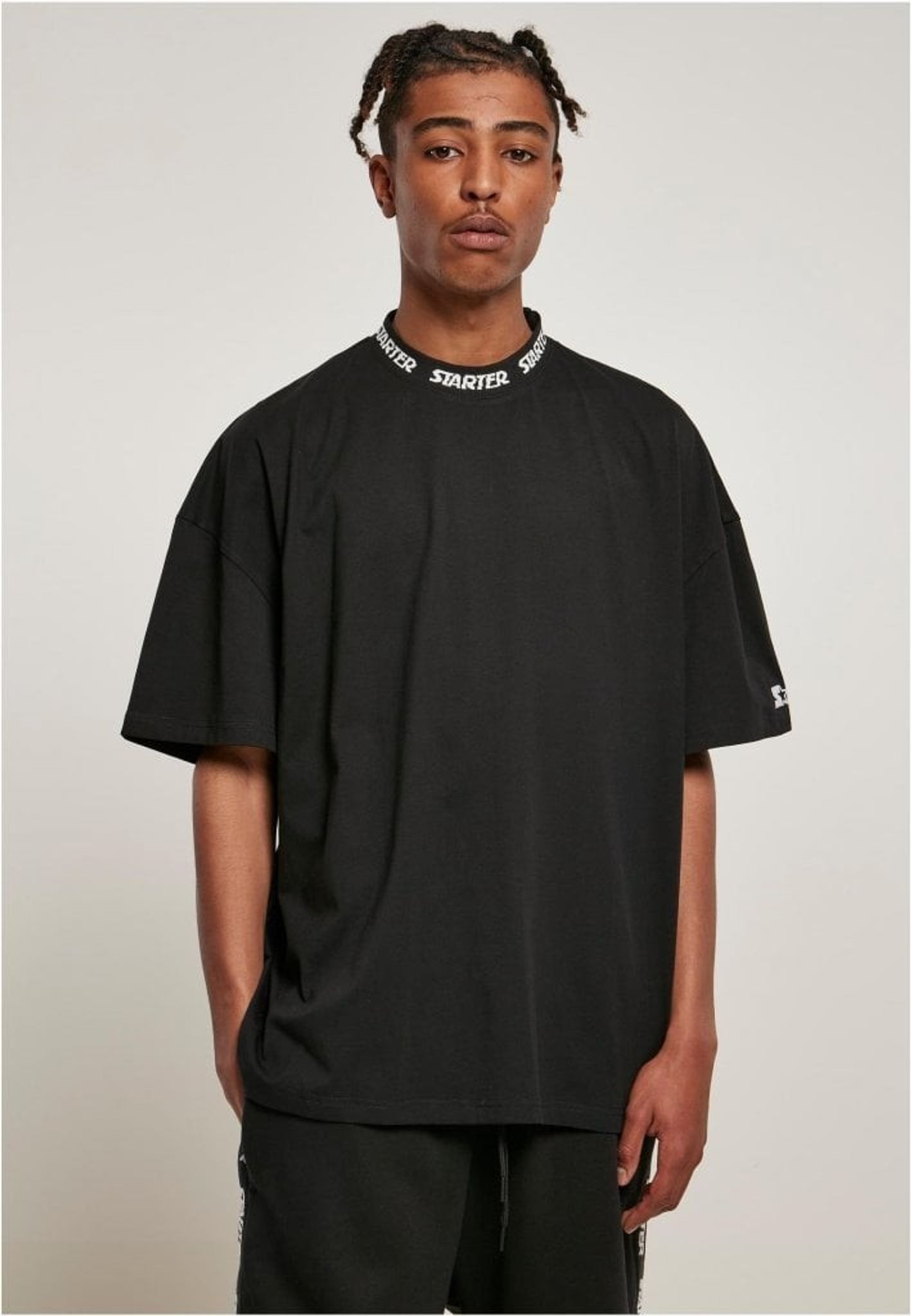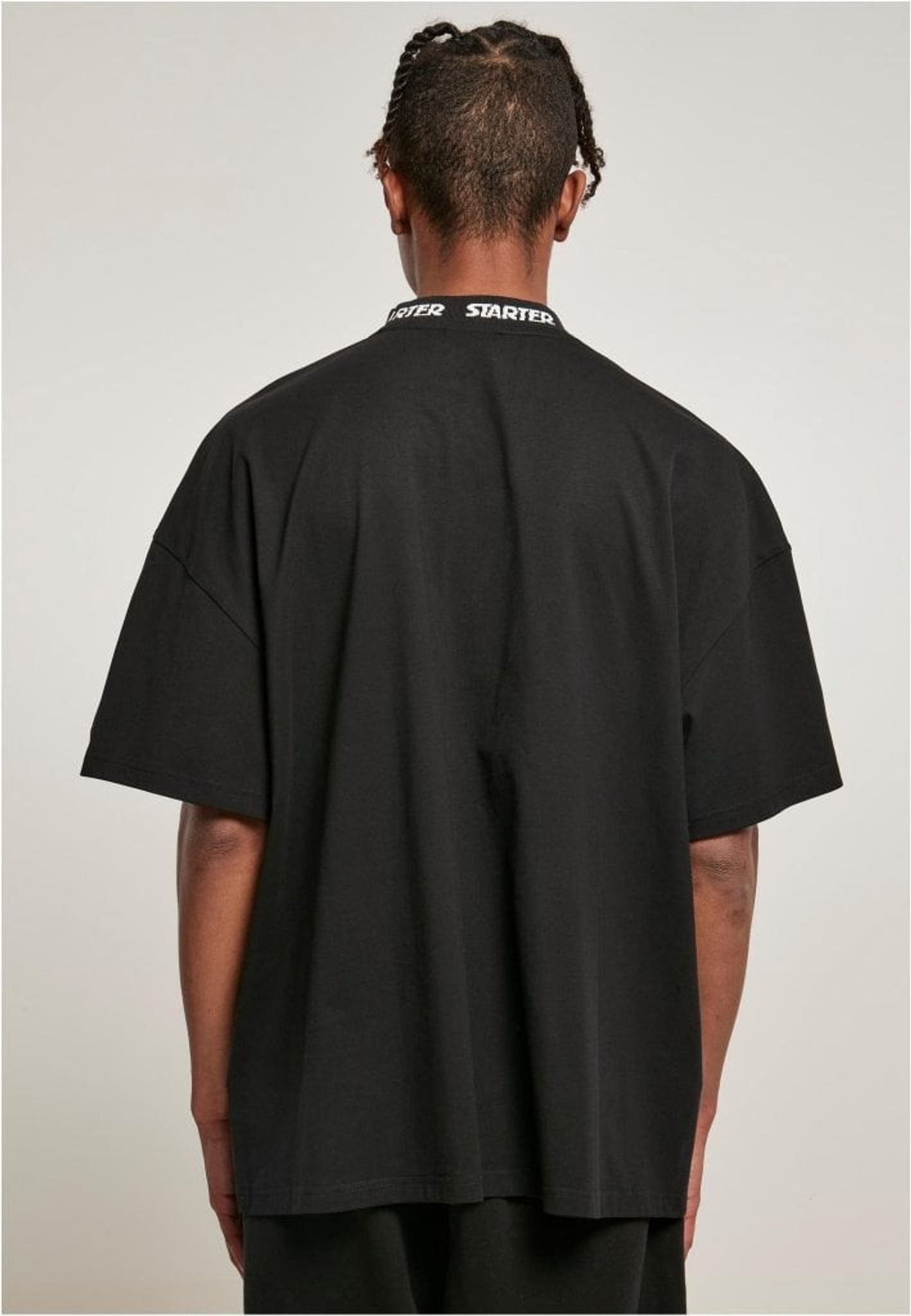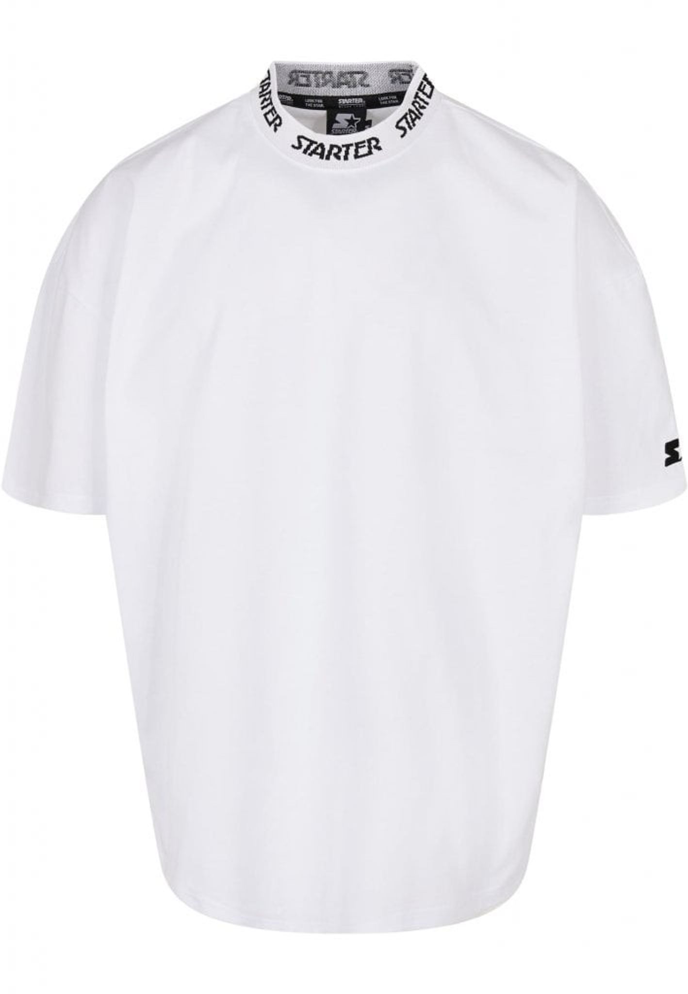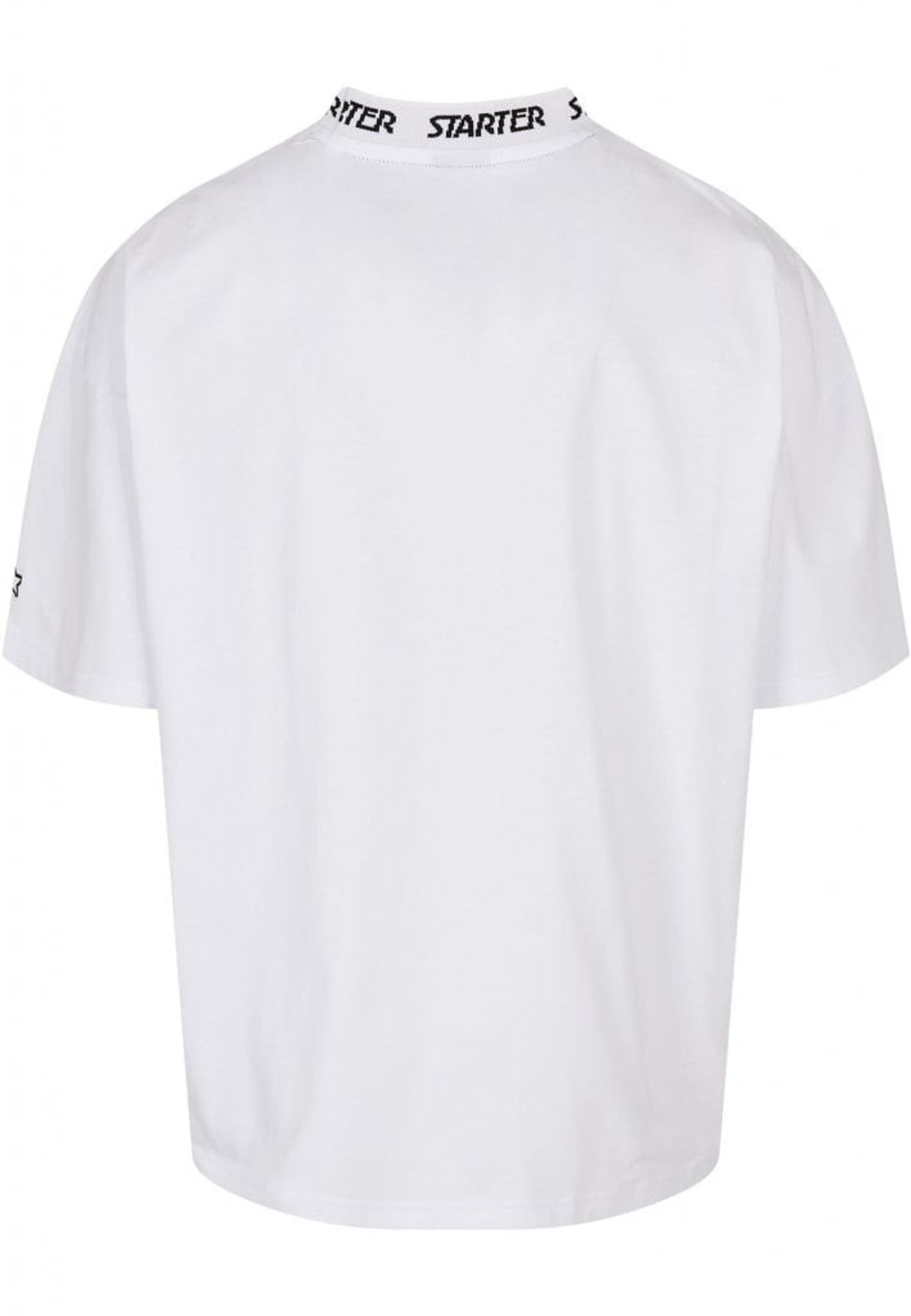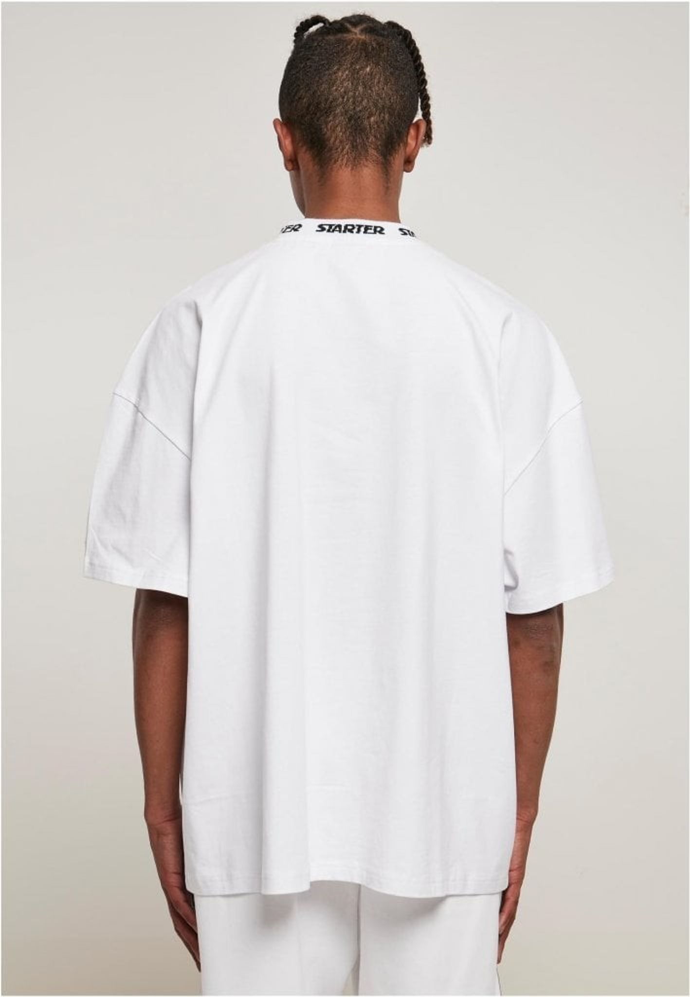 Starter Jaquard Rib T-shirt er en T-shirt i oversize model og med en halskrave fyldt med Starter logoer. Starter-logoet er broderet på venstre ærme, og den nederste kant af samme side er lappet.