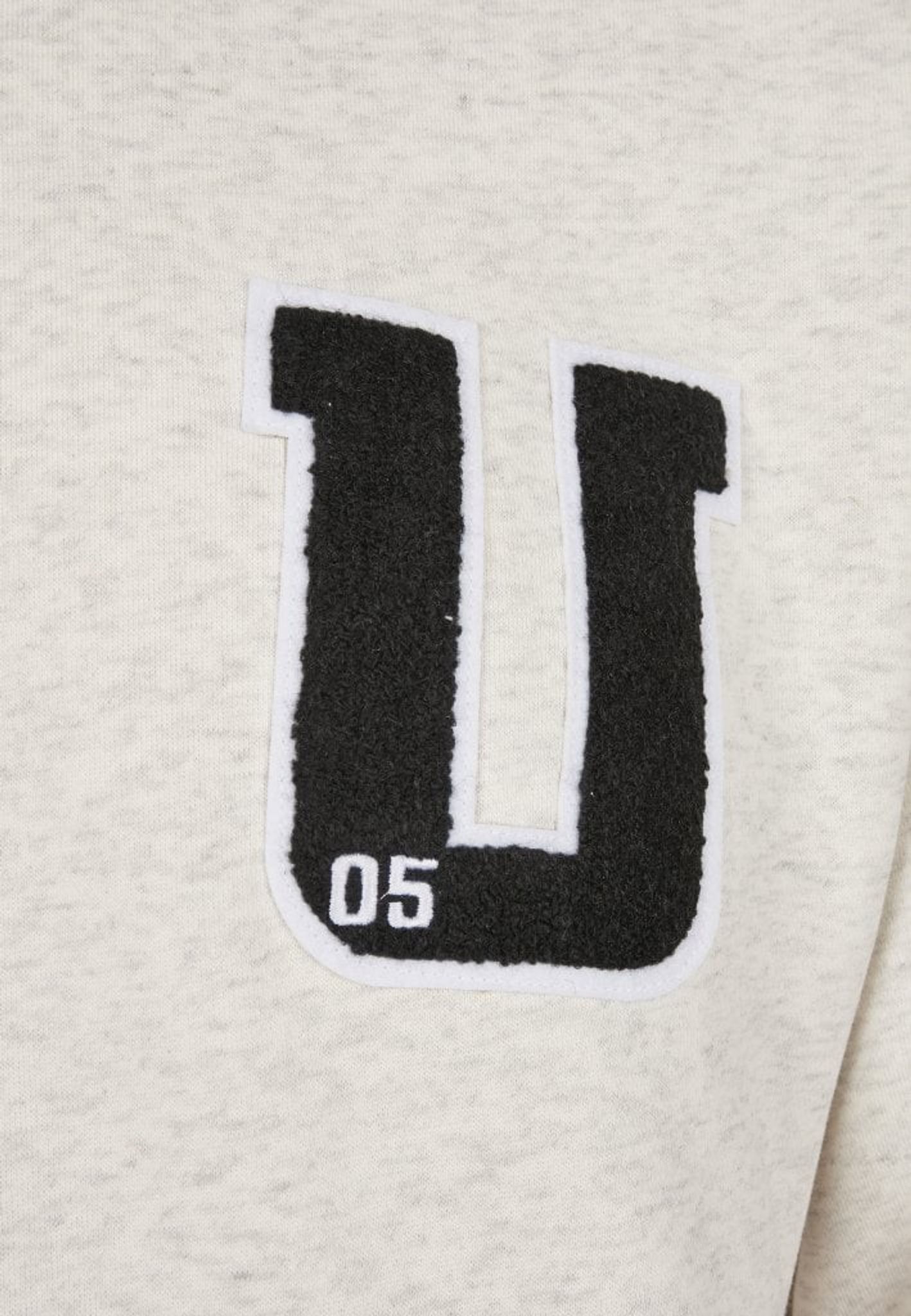 Foran på maven er en stor kengurulomme, og på brystet er bogstavet U. U betyder Urban Classics og 05 står for det år, hvor mærket blev grundlagt.