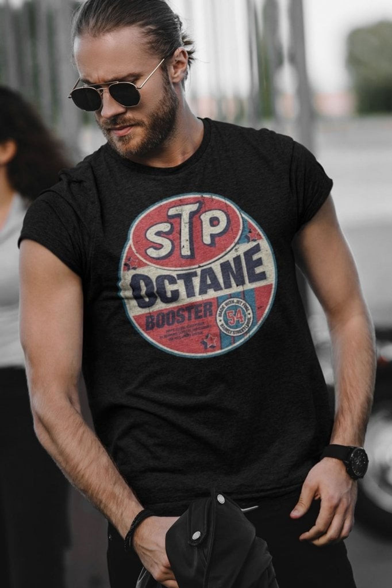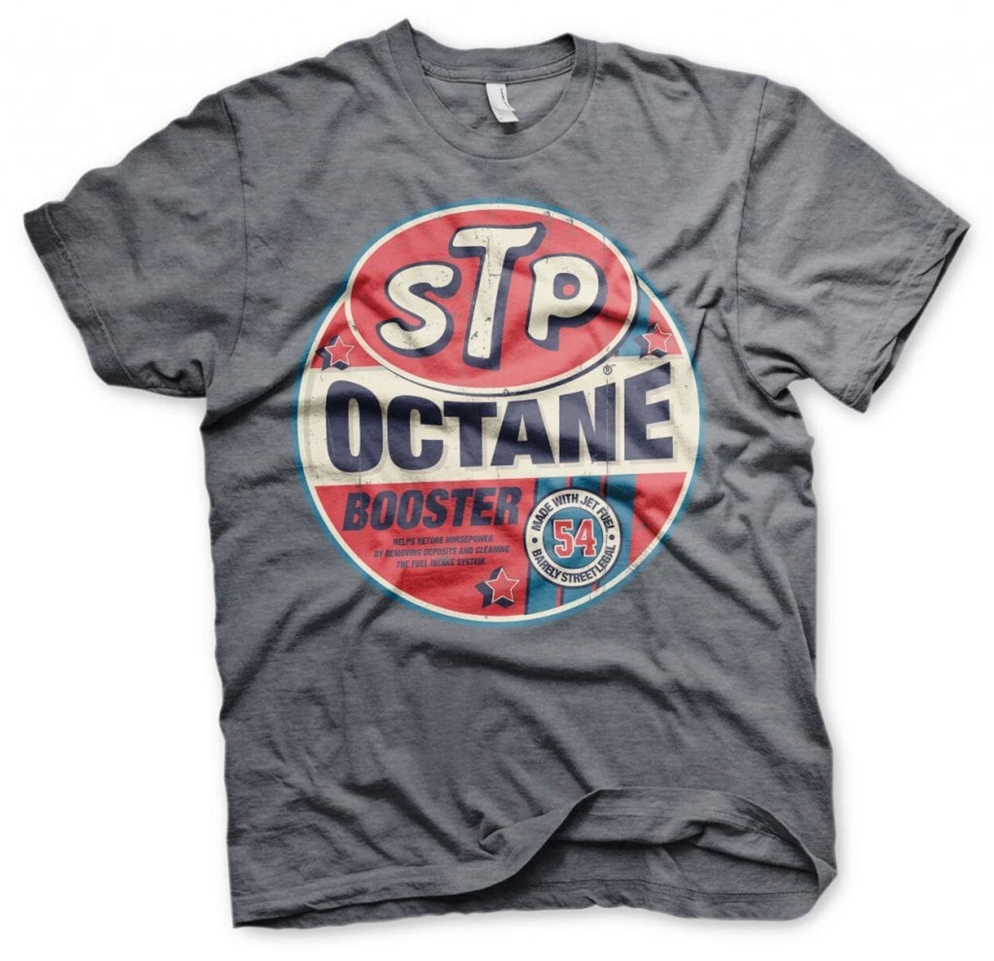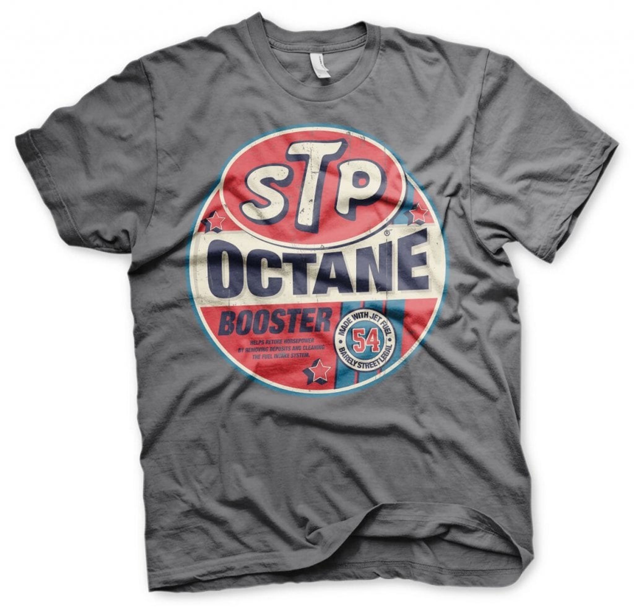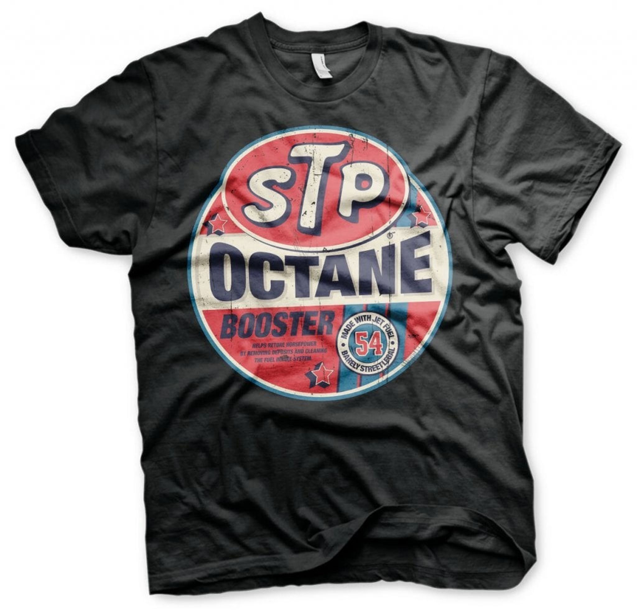 Denne T-shirt er ikke bare en almindelig skjorte, den er et symbol på kraft og ydeevne. Med motivet, der pryder fronten, bliver du en del af STP-familien og viser, at du ikke stiller dig tilfreds med middelmådige brændstoffer. STP-logoet skinner klart i hvidt og blåt, mens ordene "OCTANE" og "BOOSTER" skriger, at din motor er klar til handling.