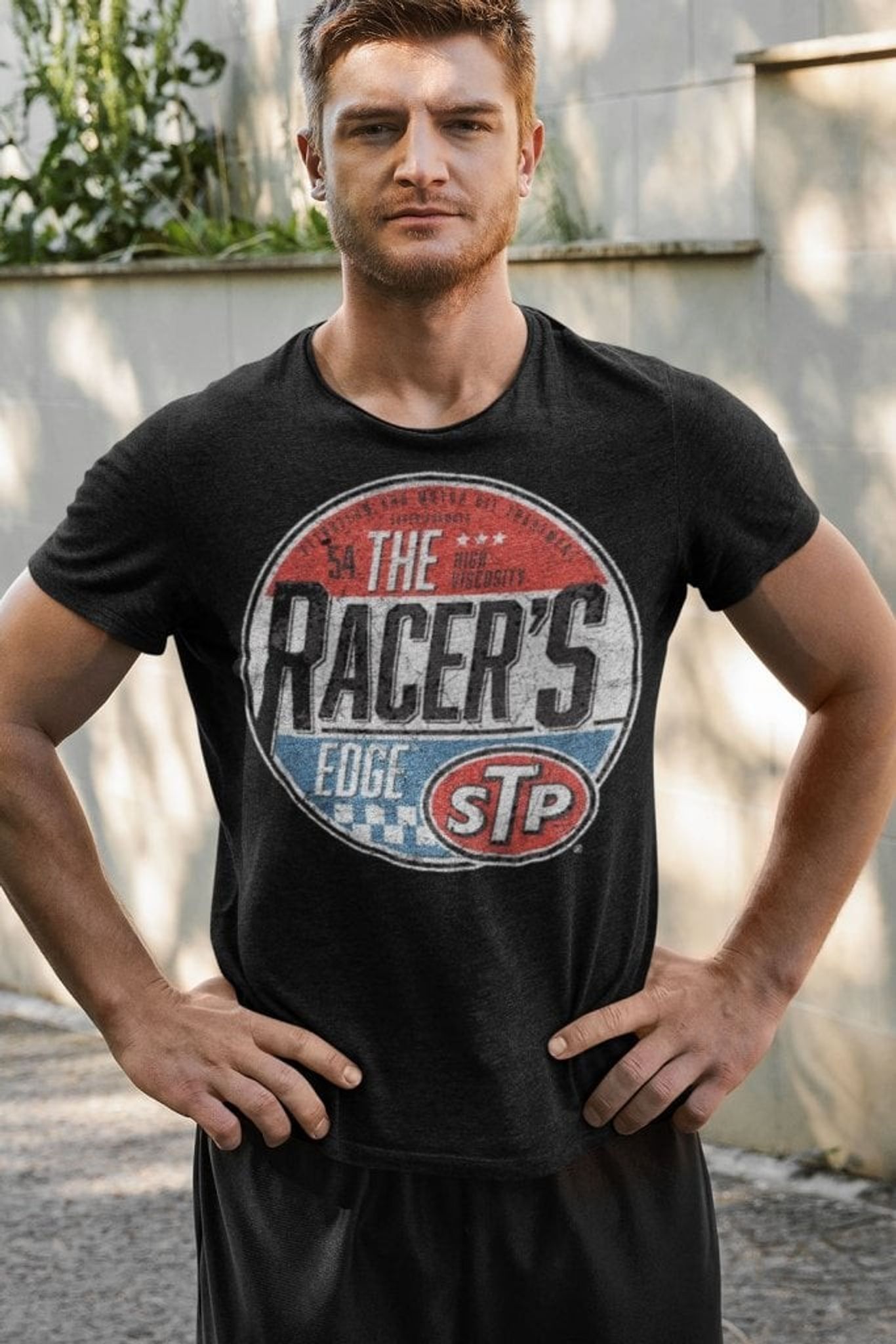 Denne T-shirt er ikke bare en almindelig skjorte - den er et rigtigt kunstværk! Designet er spækket med alle de ikoniske elementer, der repræsenterer STP-mærket. Fra det cirkulære design med det klassiske STP-logo til det kraftfulde slogan "The Racer's Edge", denne trøje skriger racing og højtydende produkter.