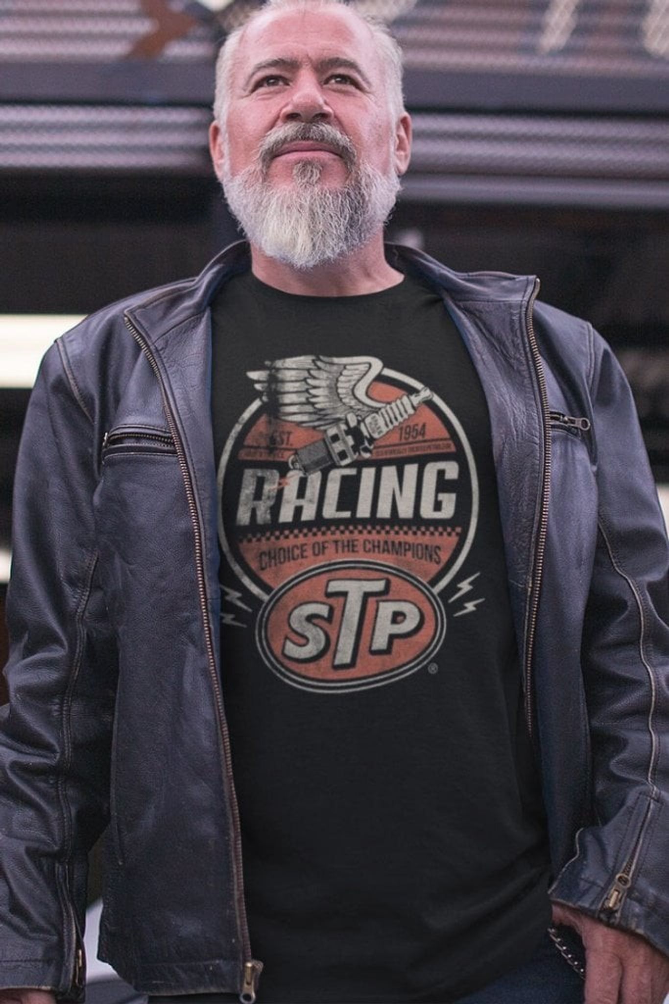 Er du en ægte racer-entusiast? Så er denne T-shirt perfekt til dig! Med motivet, der repræsenterer STP's racertradition, vil du føle dig som en mester på vejene. Det bevingede tændrør symboliserer fart og kraft – ligesom dig, når du kører i din bil. Og teksten "RACING" med store, hvide versaler giver en slidt effekt, der får dig til at føle dig som en ægte racerhelt.