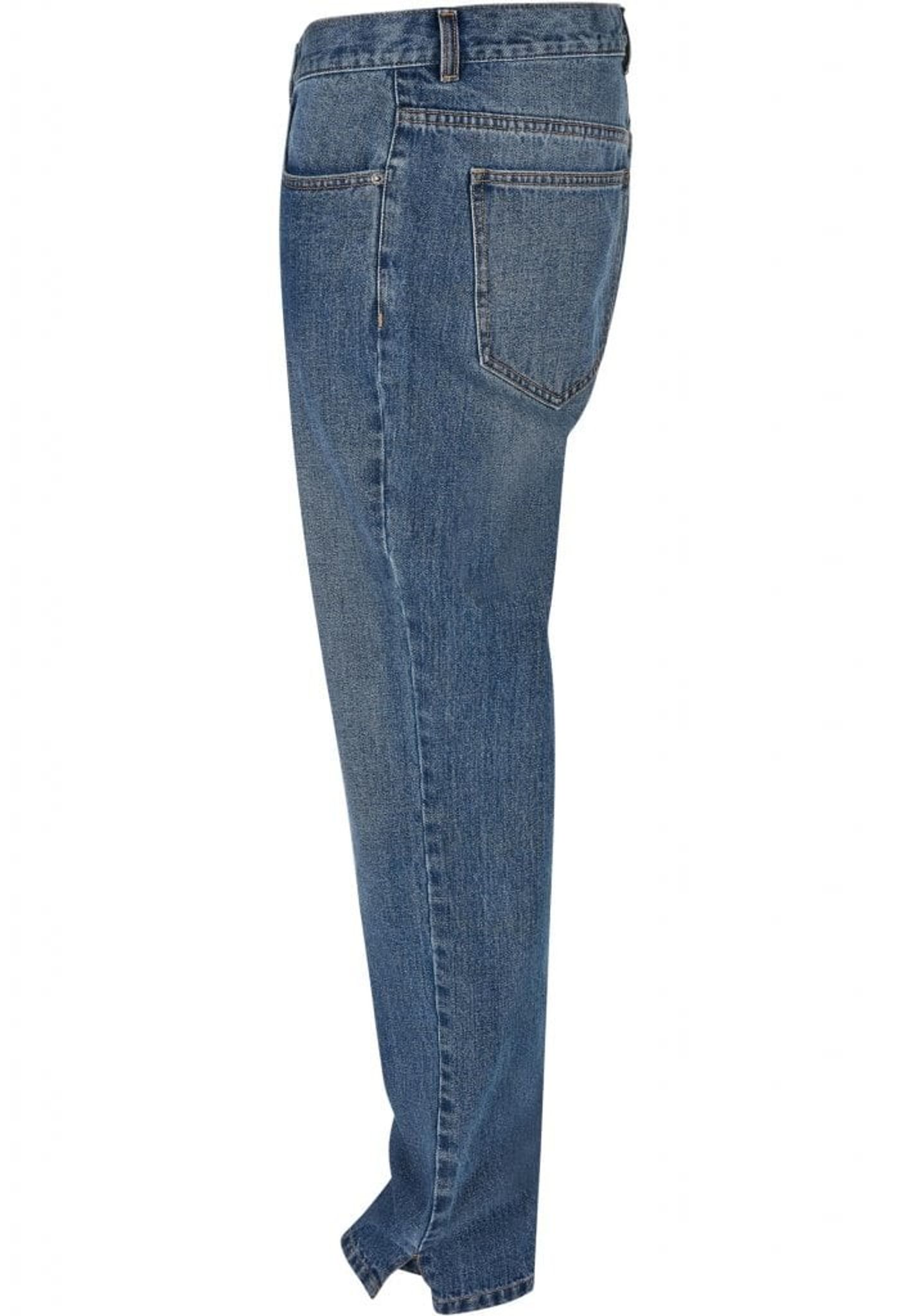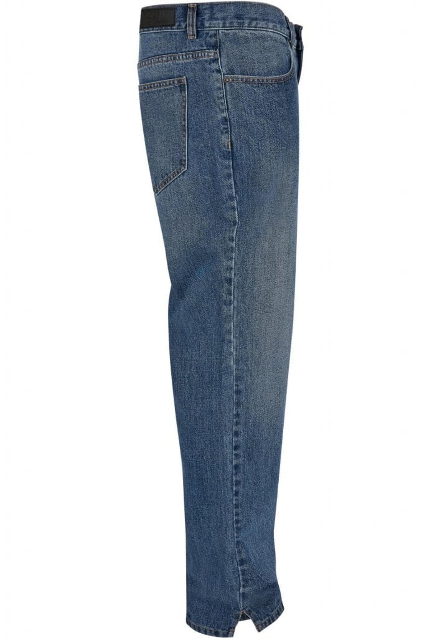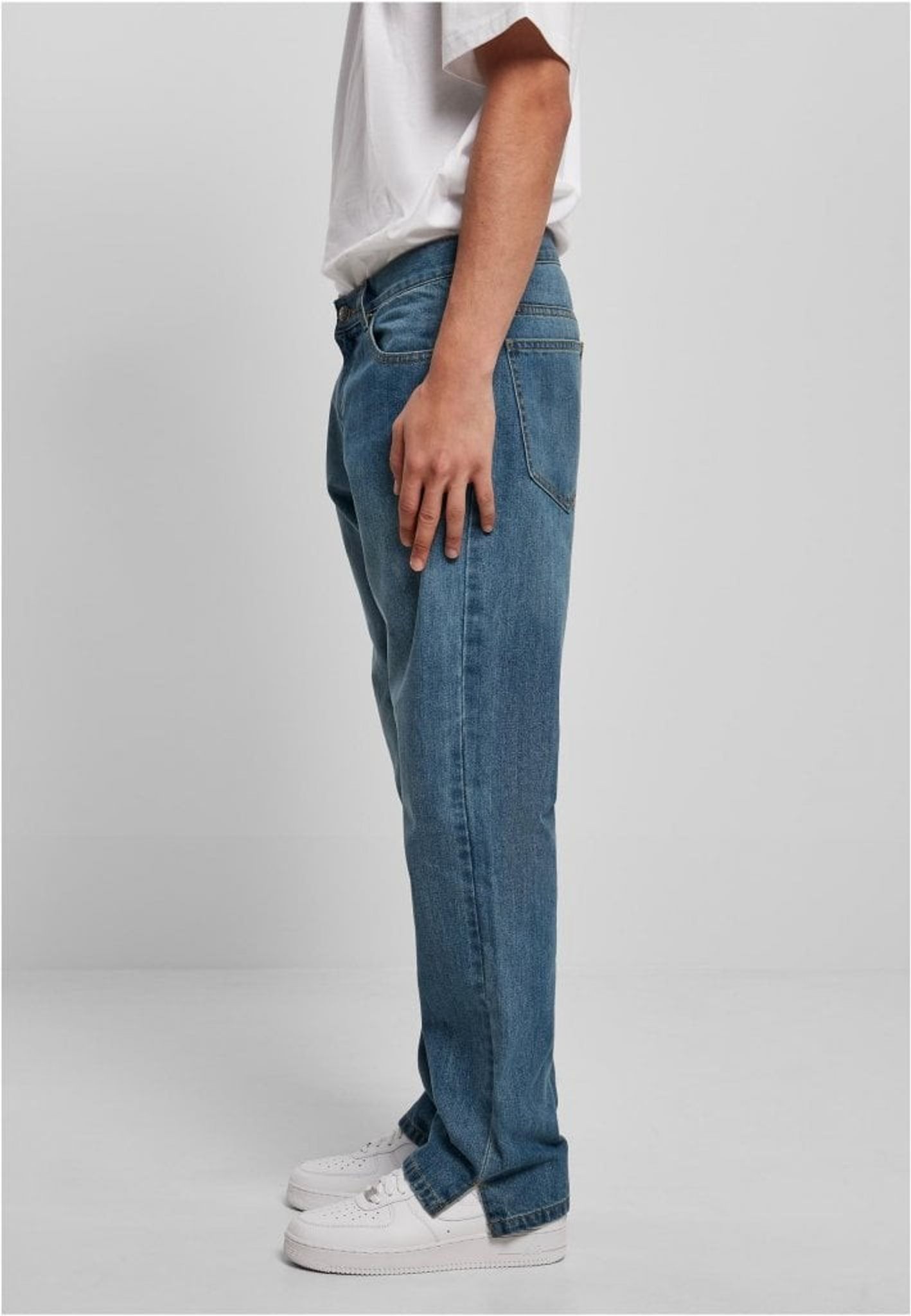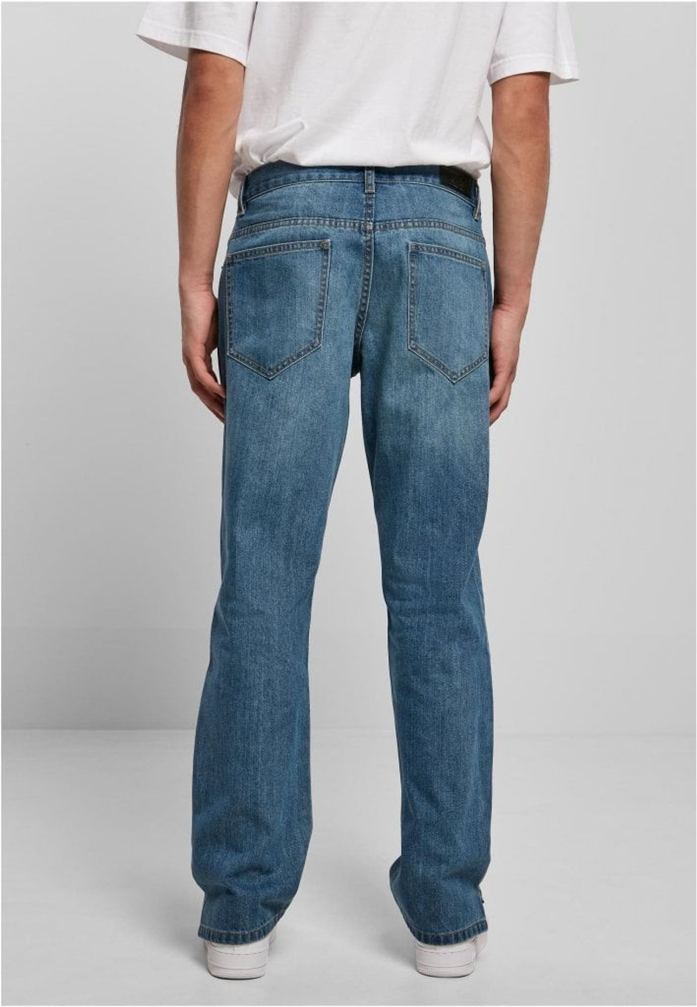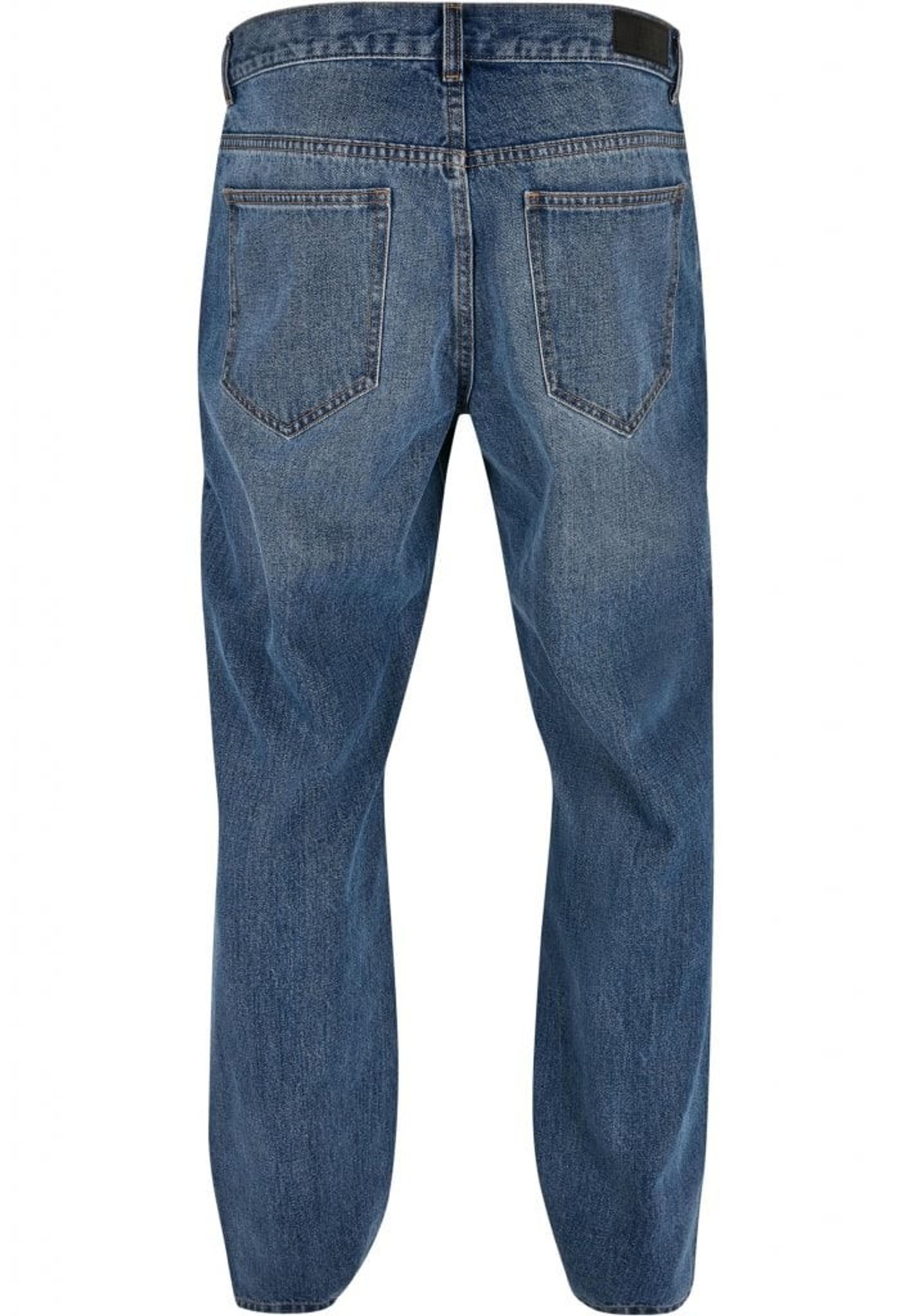 Disse herrejeans følger den gennemprøvede 5-lommers form med respektive sidelommer og lappede baglommer. De har en almindelig høj talje med bæltestropper og lige ben, der har sideslidser. En behagelig løs pasform og et robust denimstof i bomuld fuldender det urbane look.