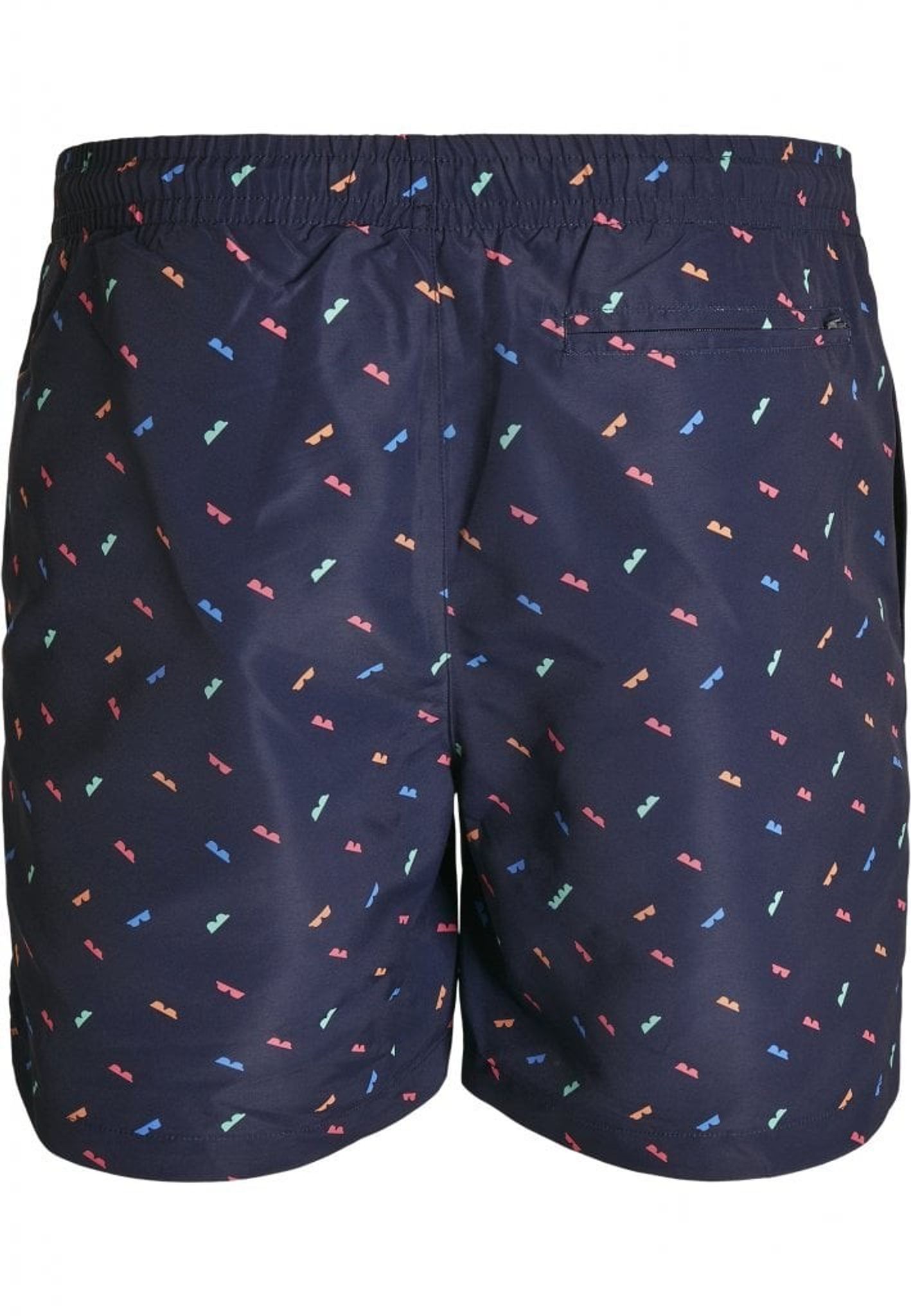 Badebukserne er udstyret med en baglomme, der lukkes med lynlås og to åbne bukselommer.