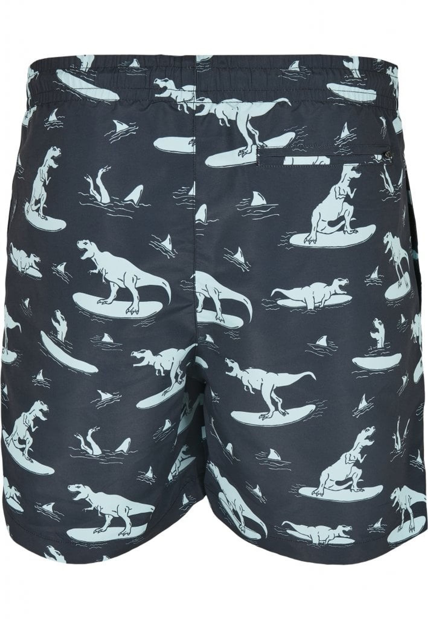 Et par skøre svømmeshorts med en T-rex, der surfer rundt på vandet. Et vand, der også synes at være fyldt med hajer. Kan det være farligere?