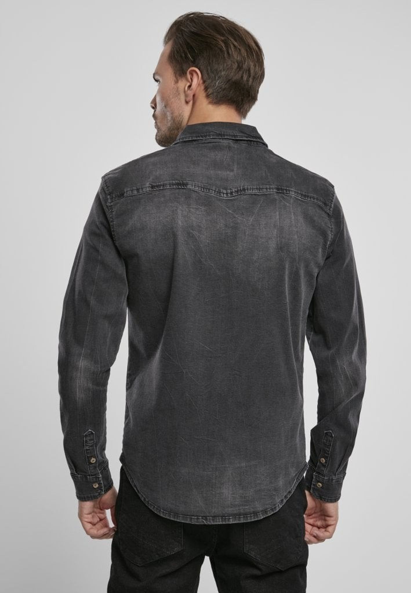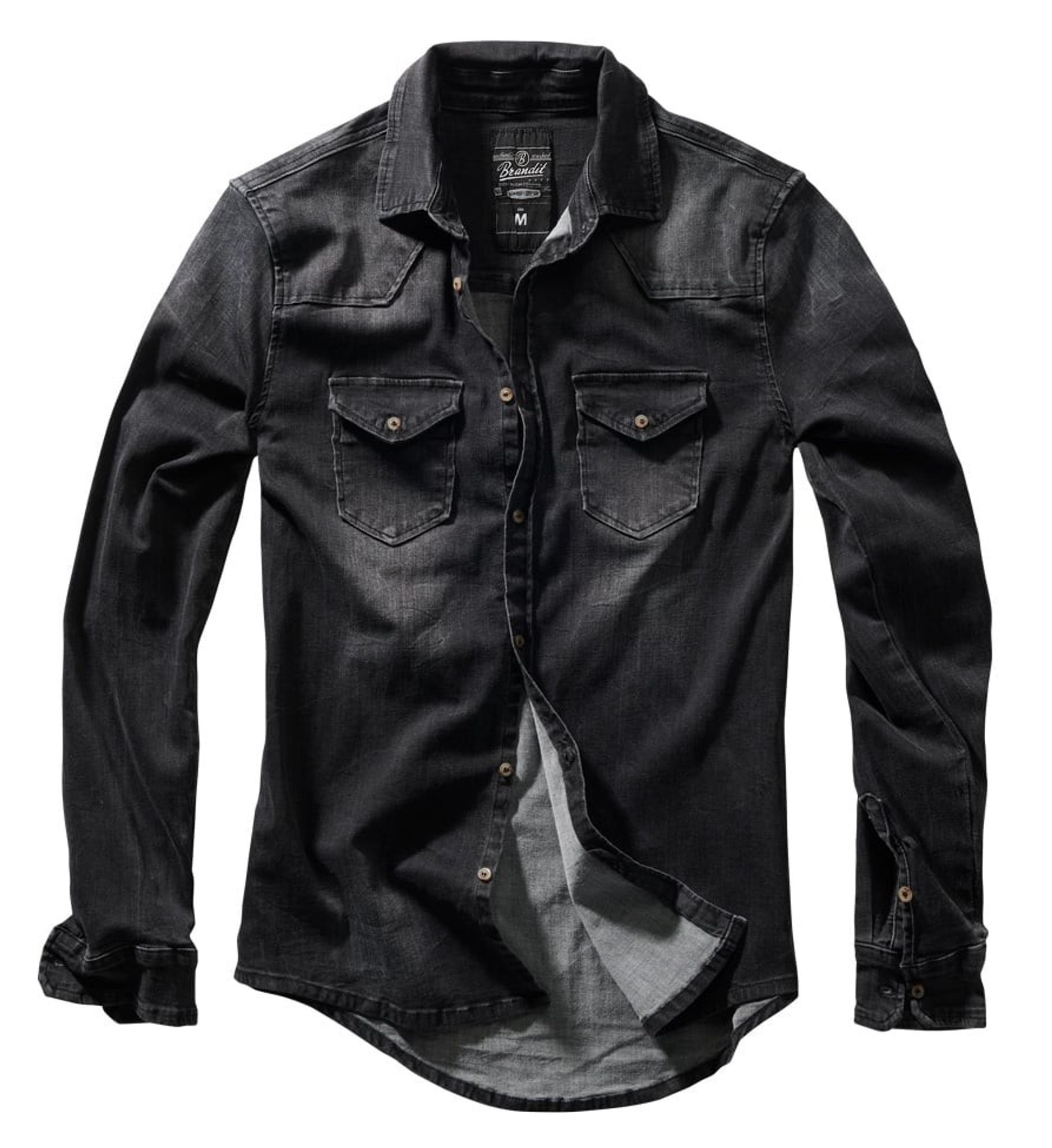 Den sorte jeans skjorte har en klassisk Kent krave. Kraven er spids i kanterne og betragtes som en formel men diskret krave. På trods af at kraven anses for formel, passer den stadig meget godt til alle lejligheder, primært fordi det er sådan en klassisk krave.