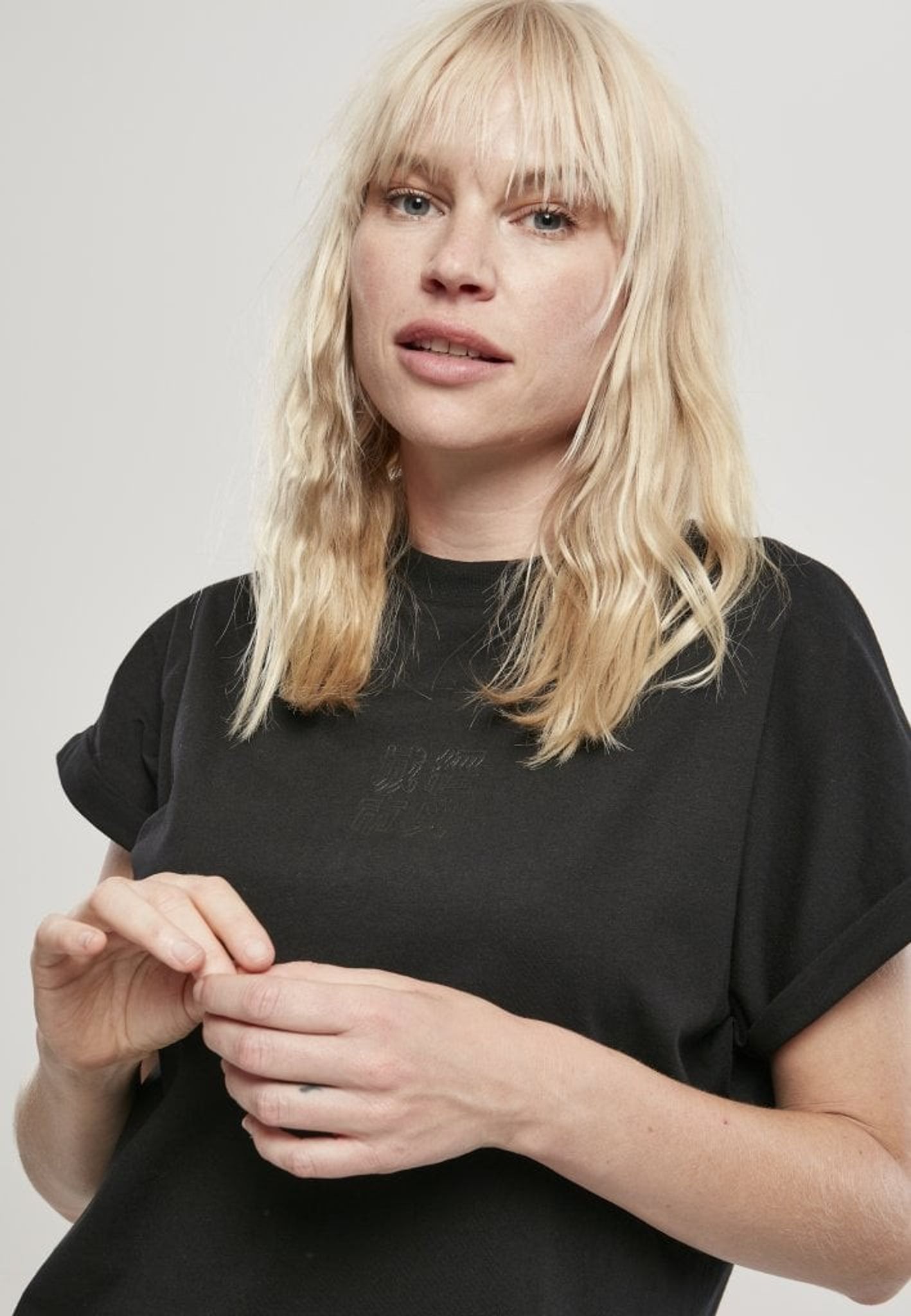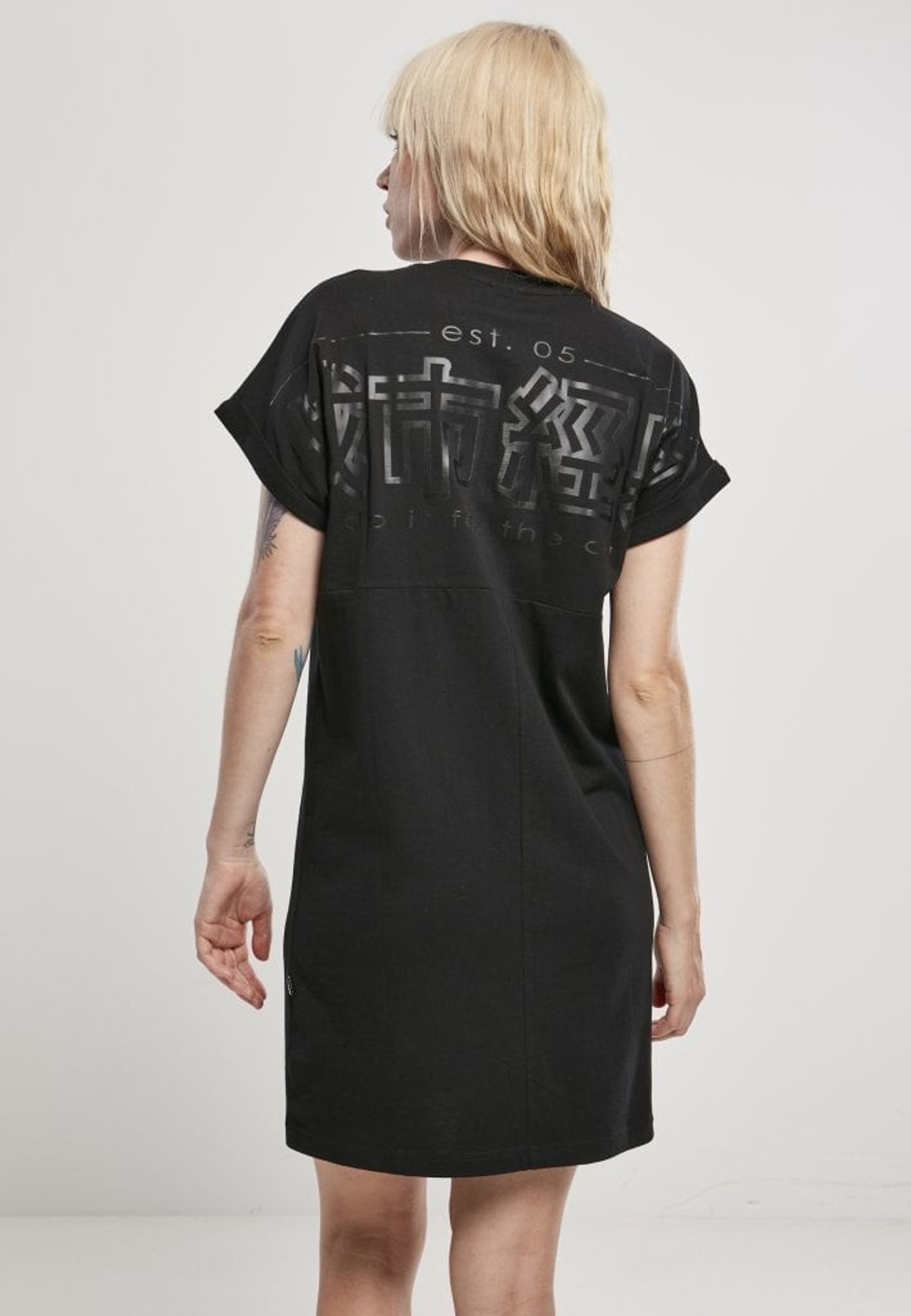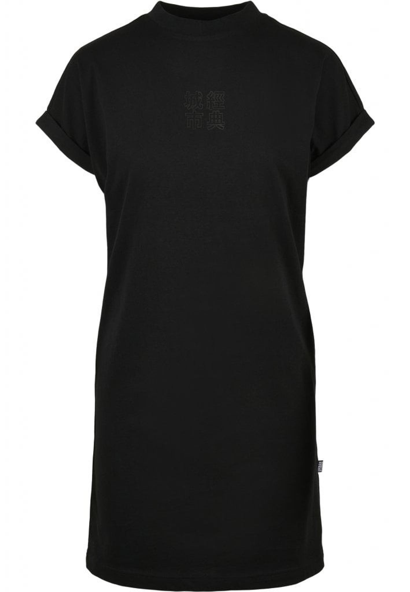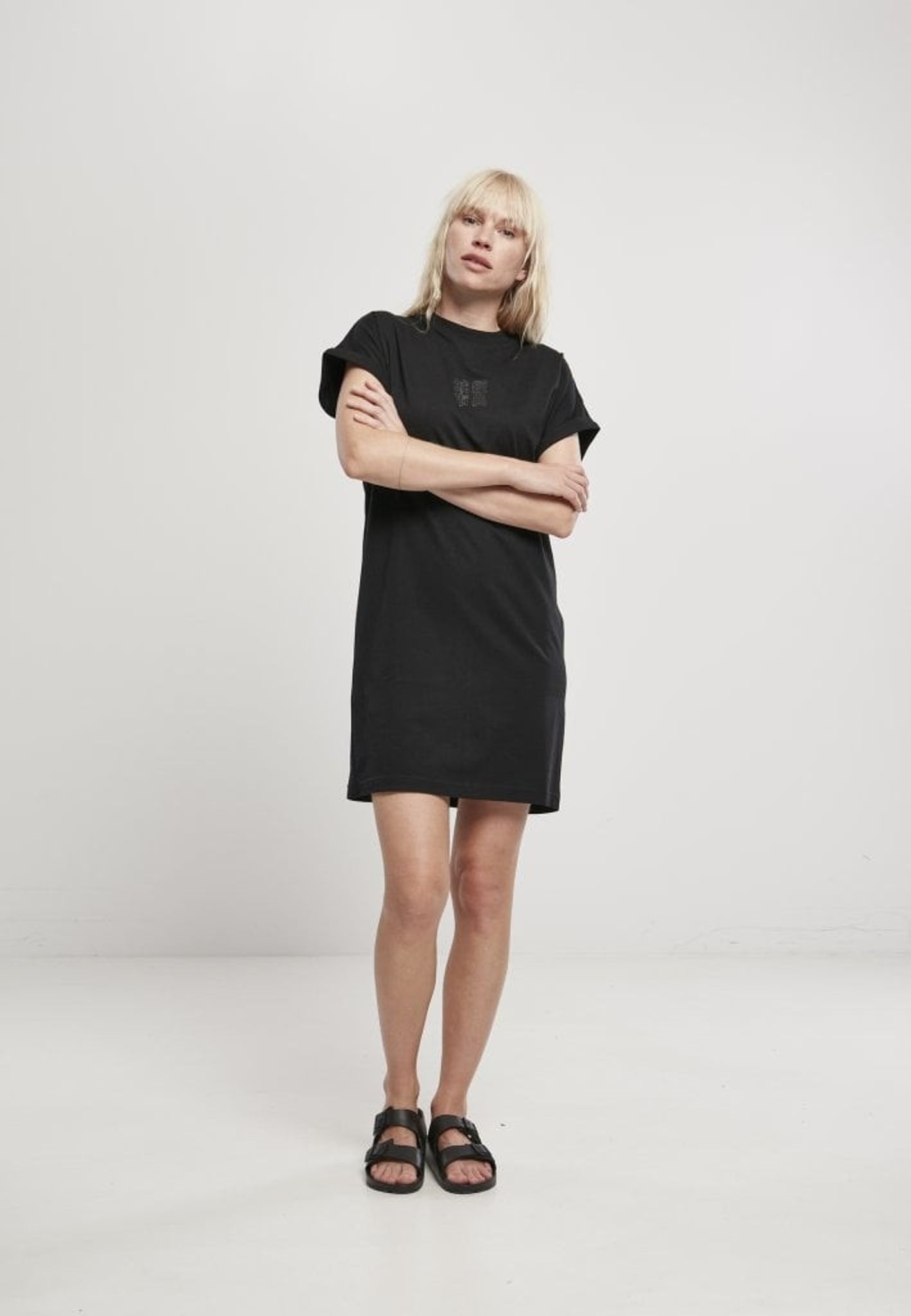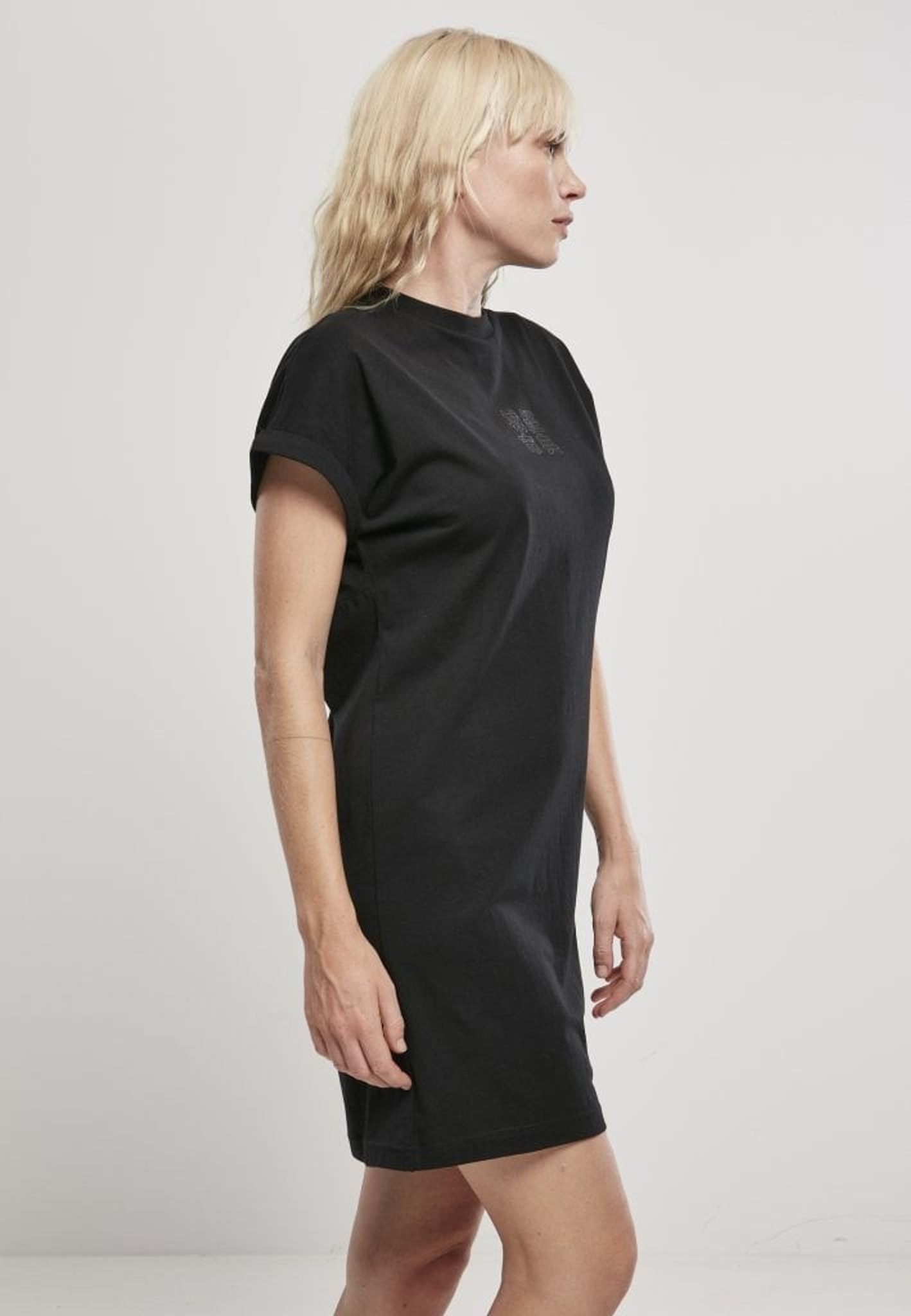 Black short dress in t-shirt model