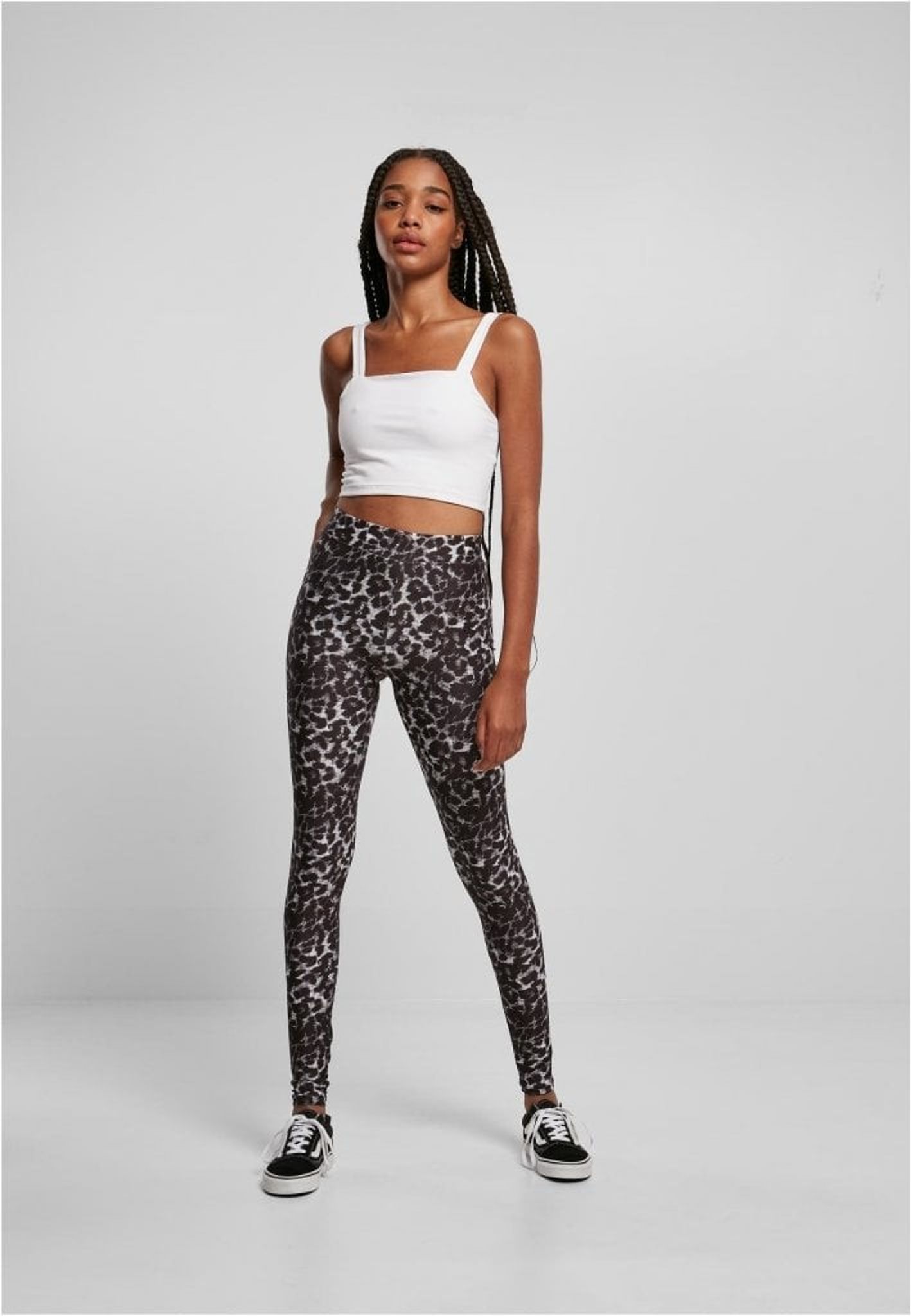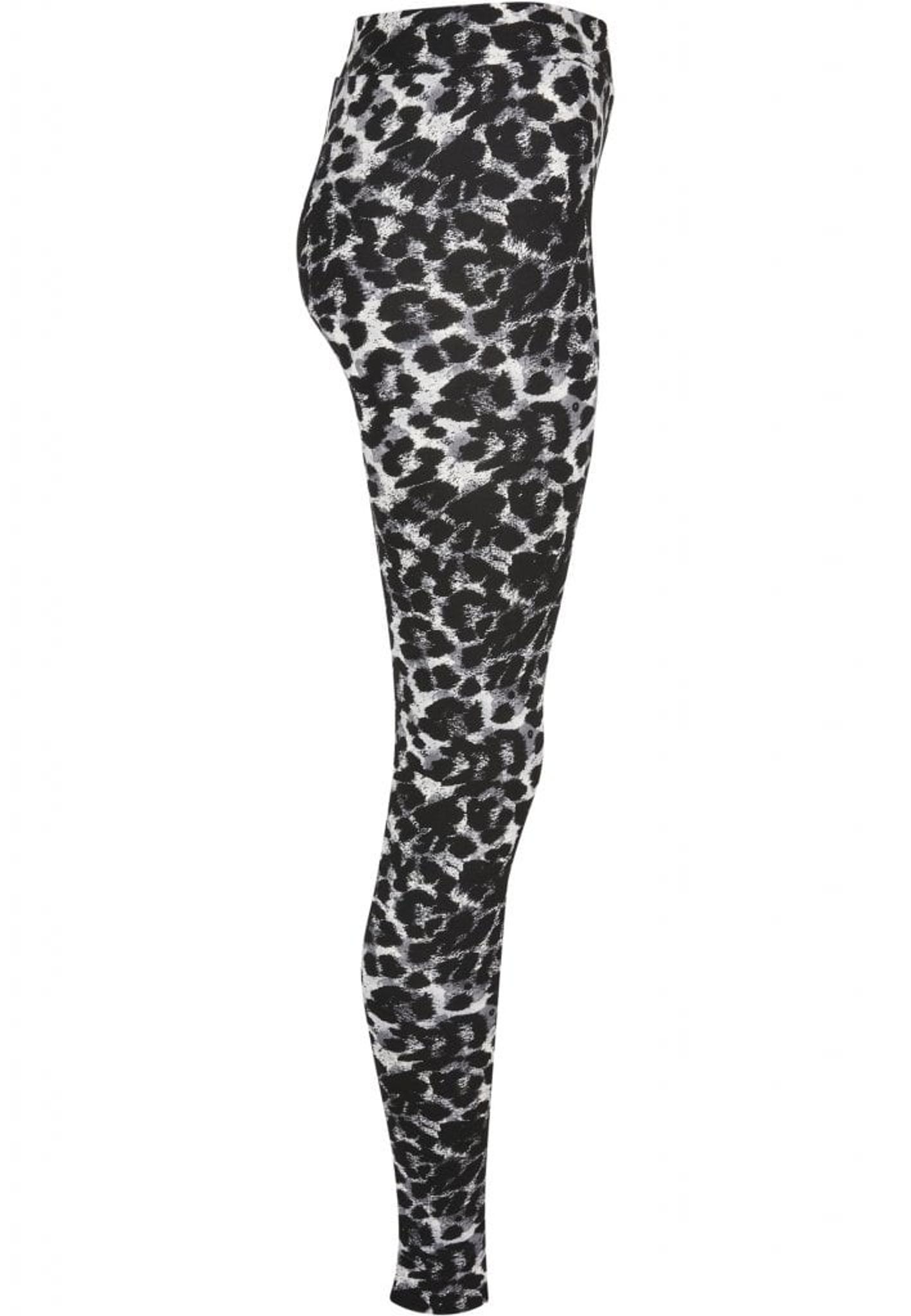 Leggings med sort leopardmønster printet over hele stoffet.
