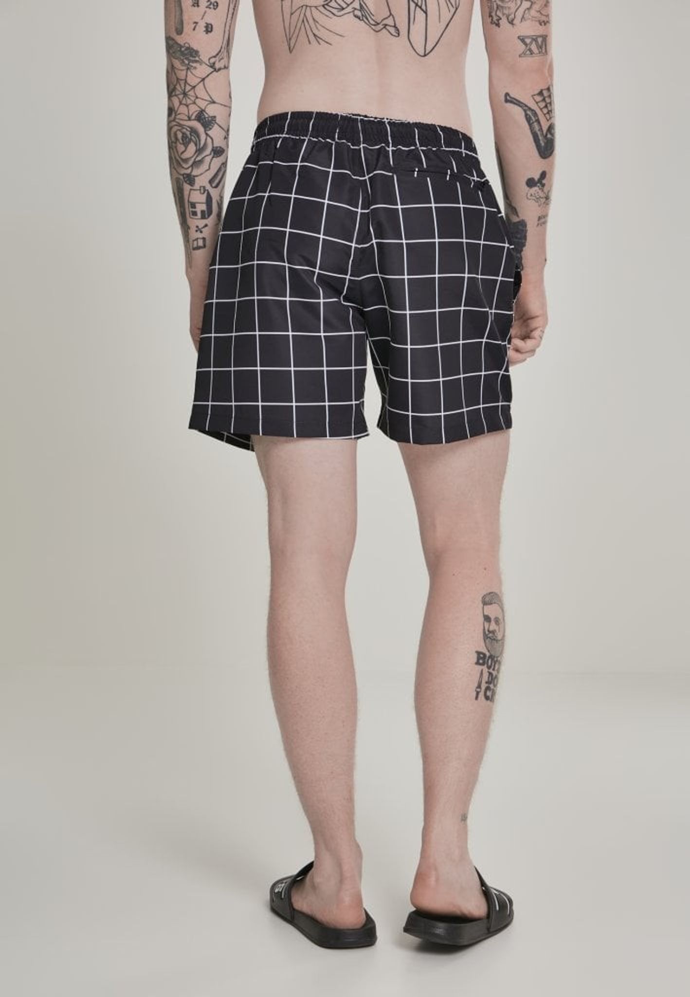 Svart og hvid rutig badbyxa herr