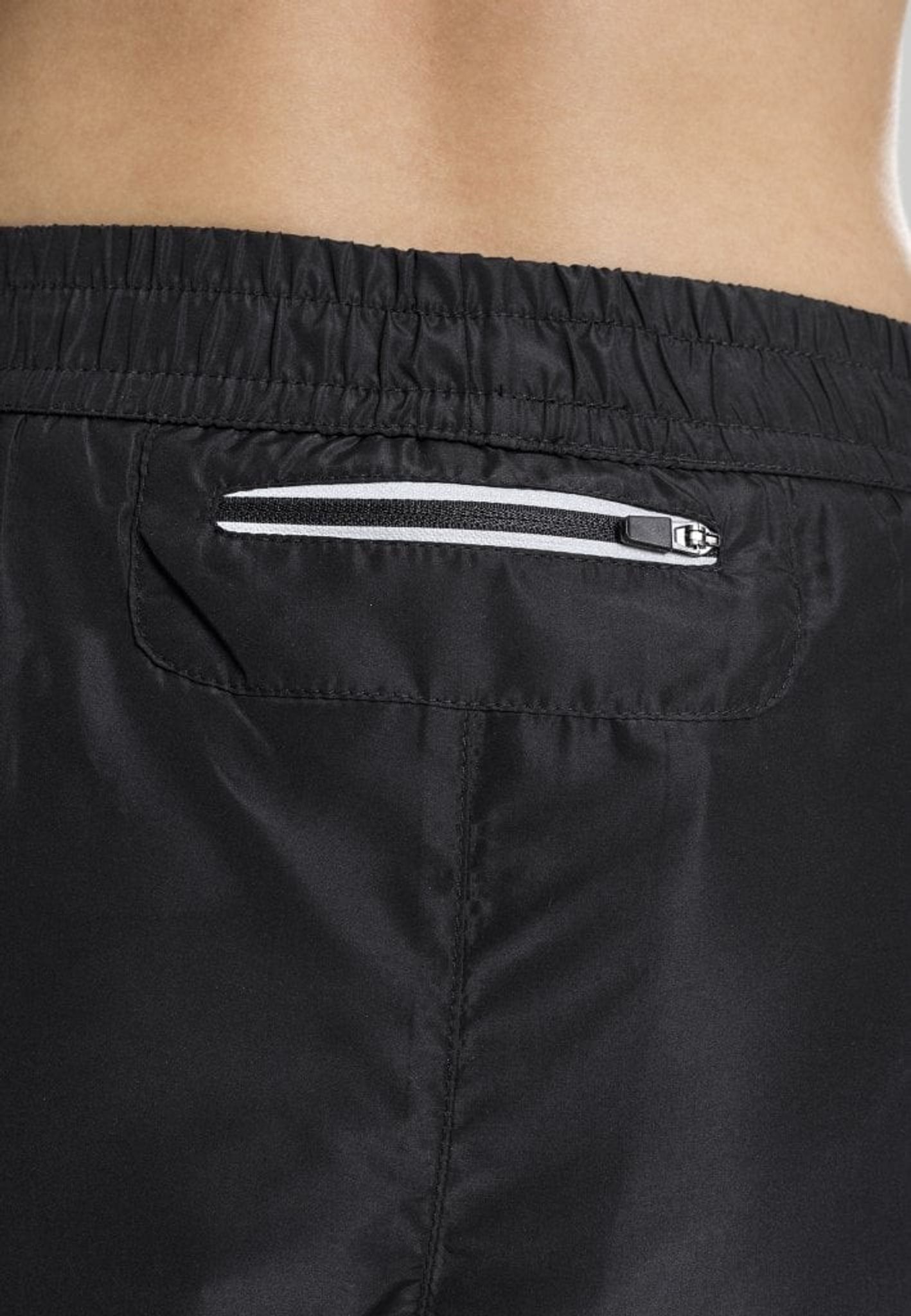 Midt på ryggen lige under elastikken på shortsen er der en lille lomme med lynlås.