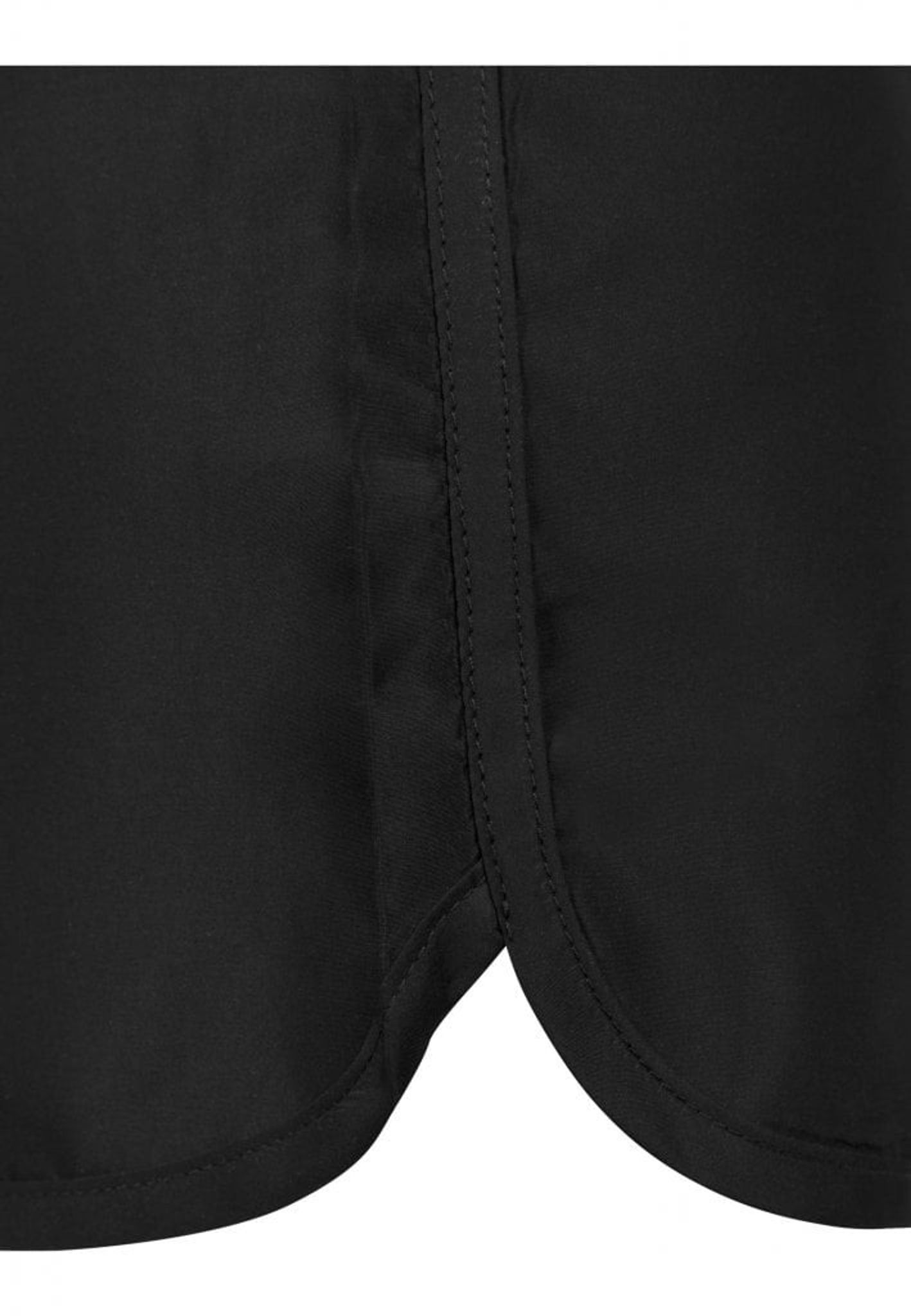Den nederste kant af shortsen er lidt rund i siden.