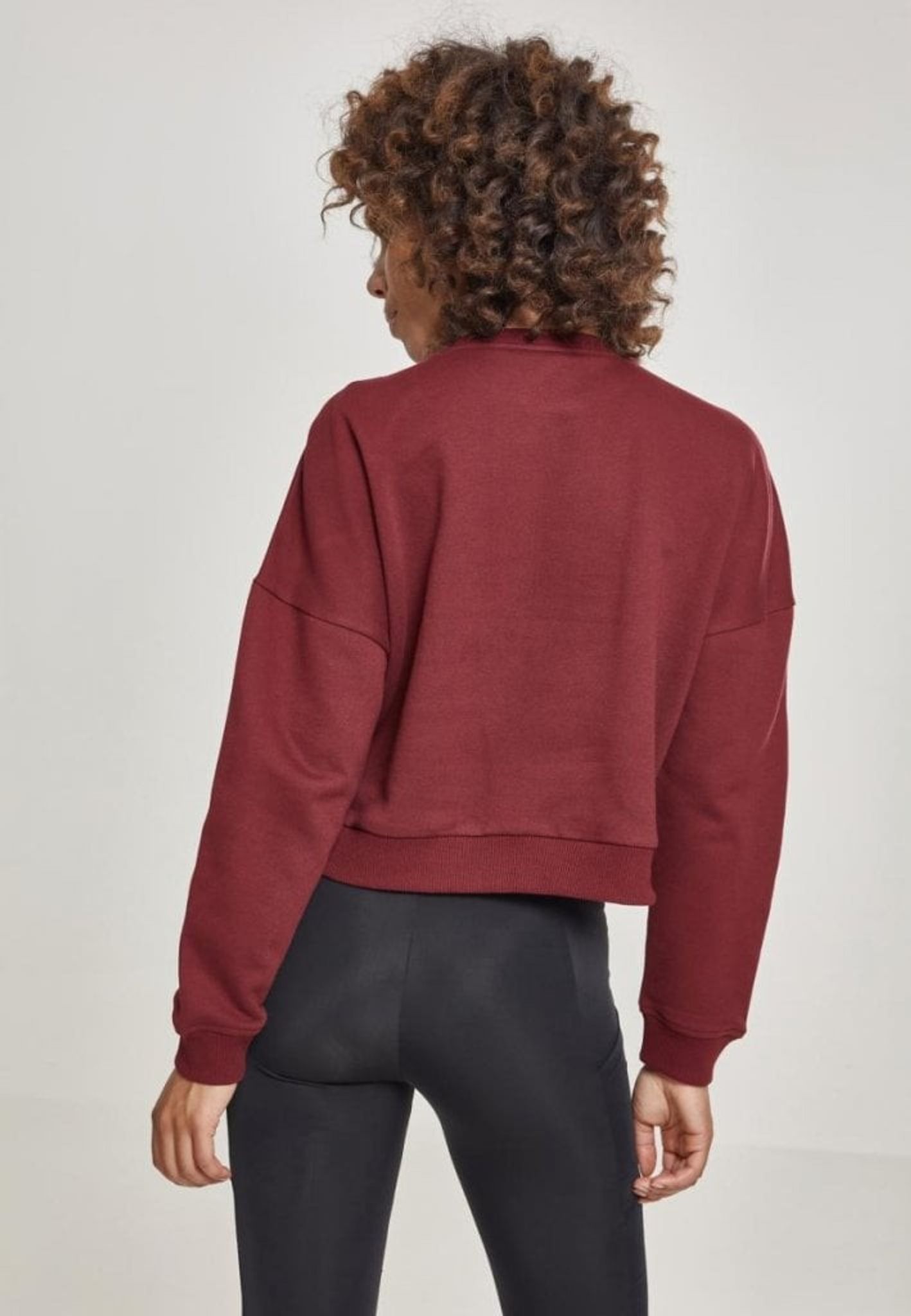 En sweater med en rund hals og en nedarmet arm i en kort model.