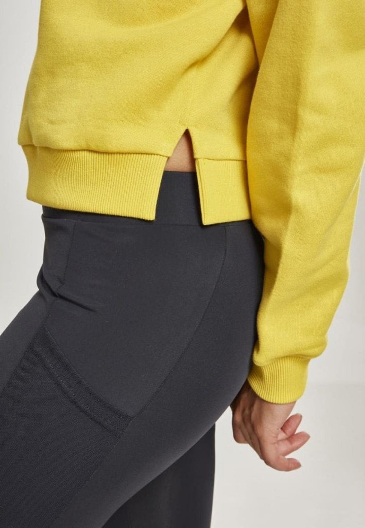 I den nederste kant af sidesømmen er der en drejning på begge sider.