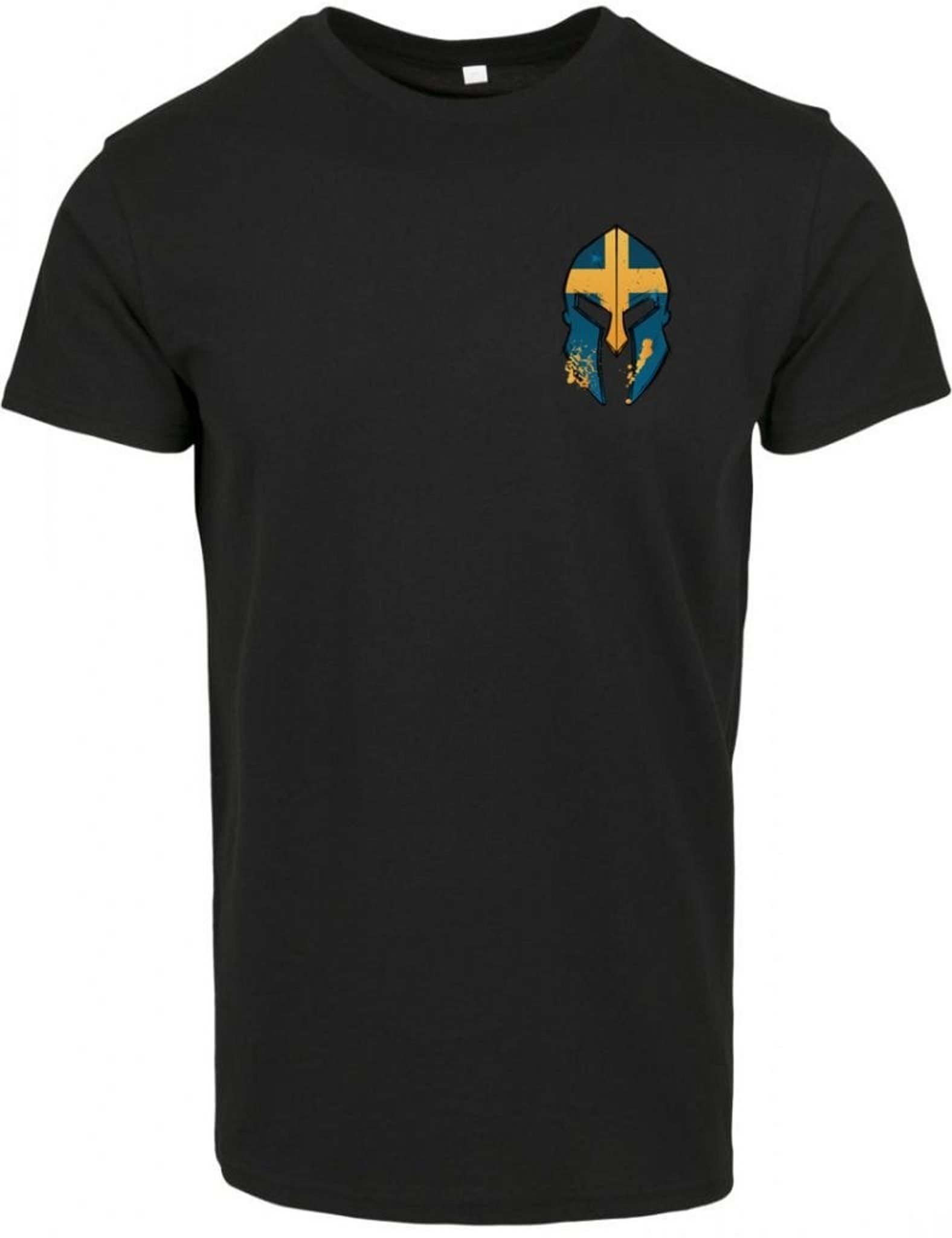 En rigtig fin T-shirt med hjelm på brystet. Hjelmen er malet i det svenske flags farver.