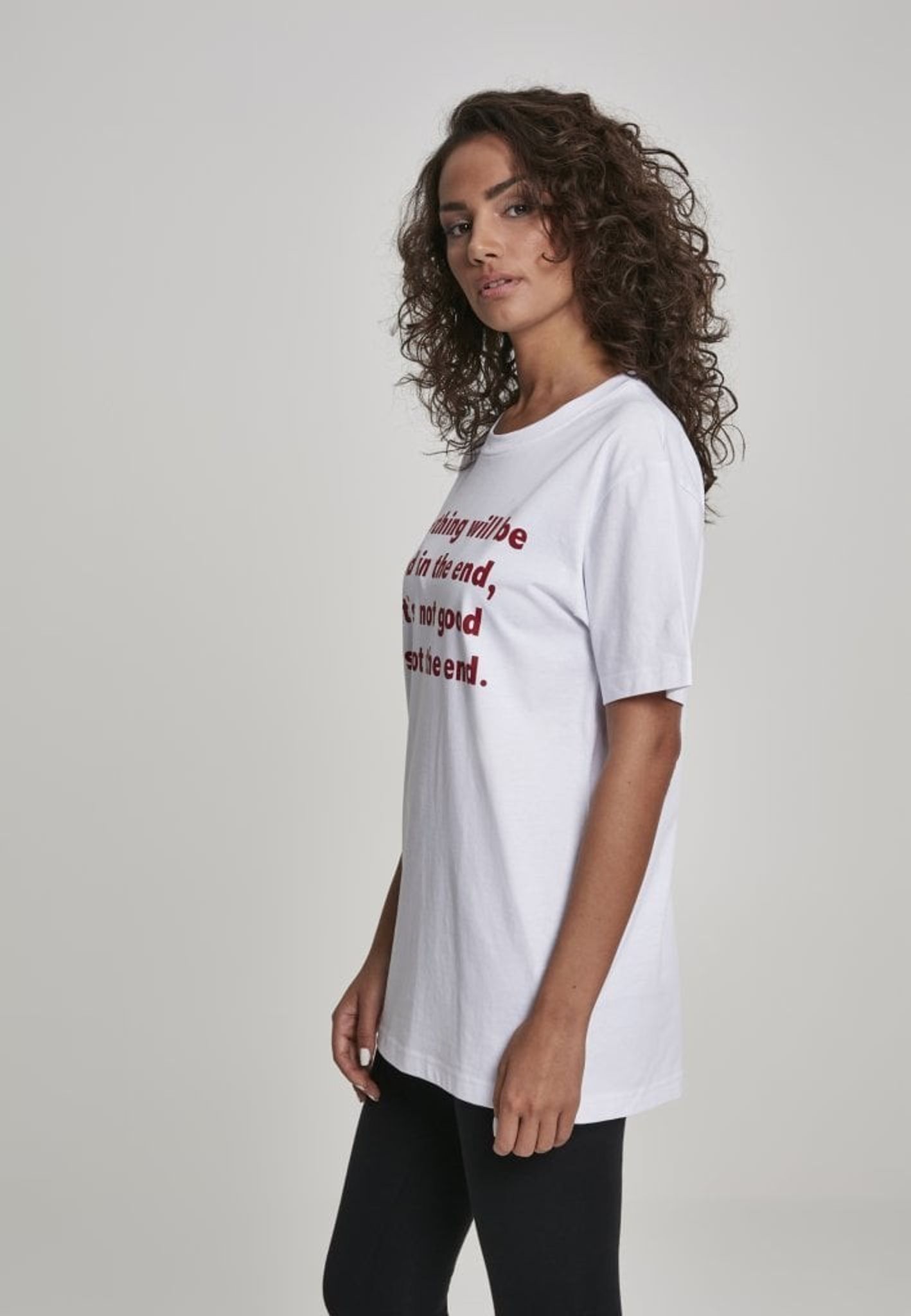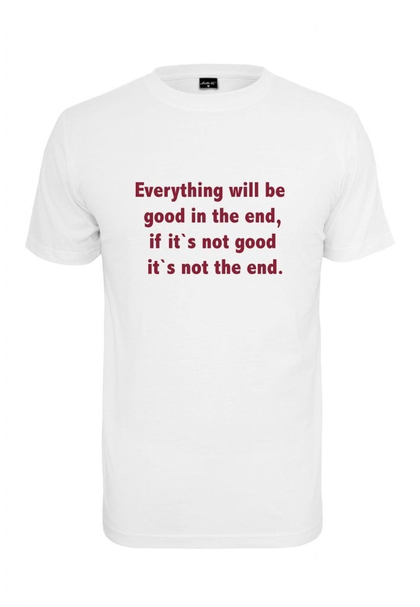 - Mønster: Rød tekst på brystet, der siger "Alt vil være godt i sidste ende, hvis det ikke er godt, er det ikke slutningen.