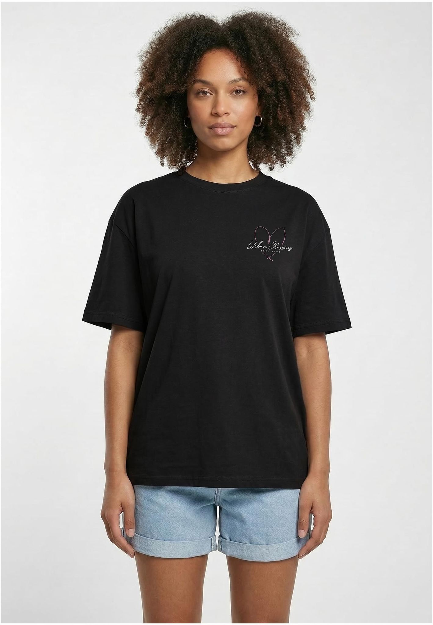 En bekväm oversize T-shirt med en stilren hjärtformad logotyp
