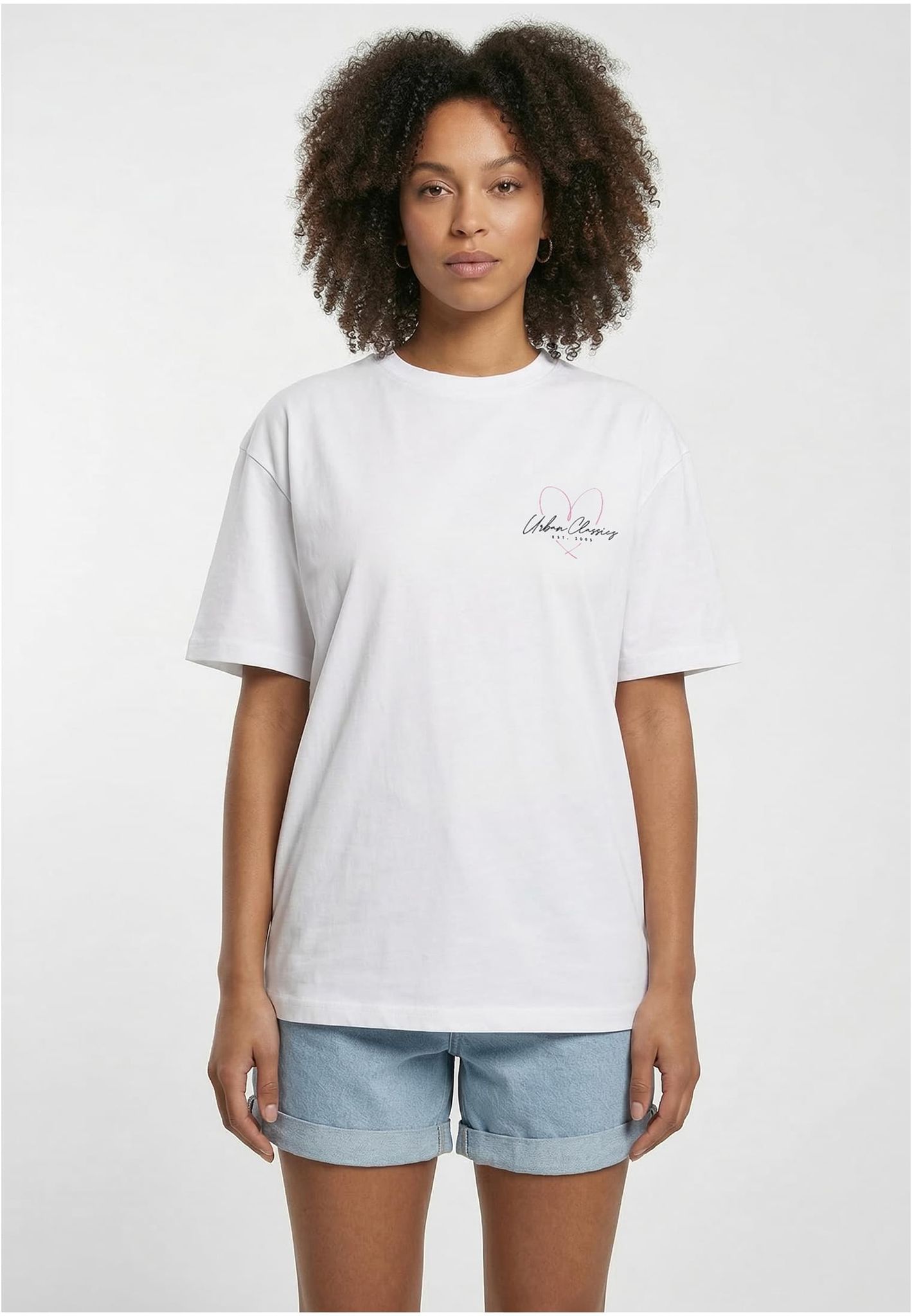 En stilren vit t-shirt för dam med en charmig hjärtlogotyp