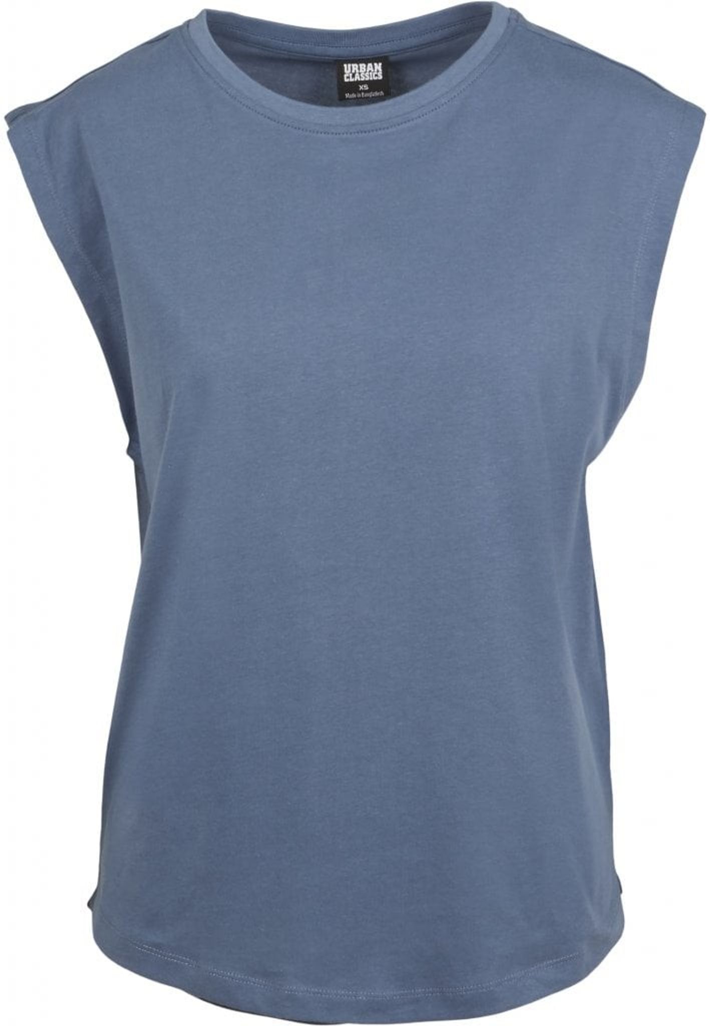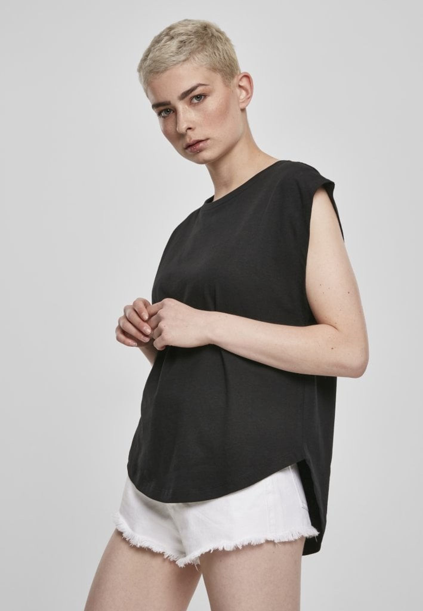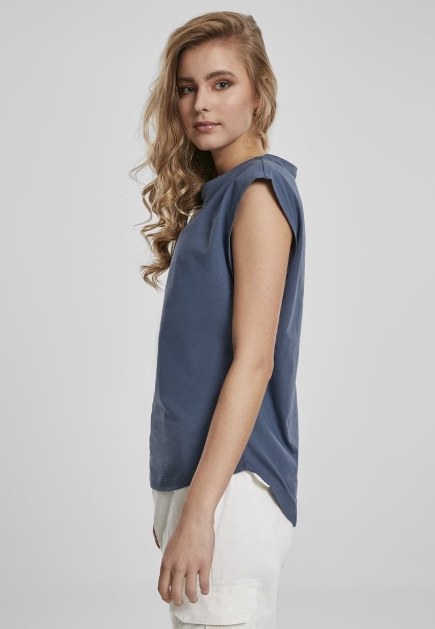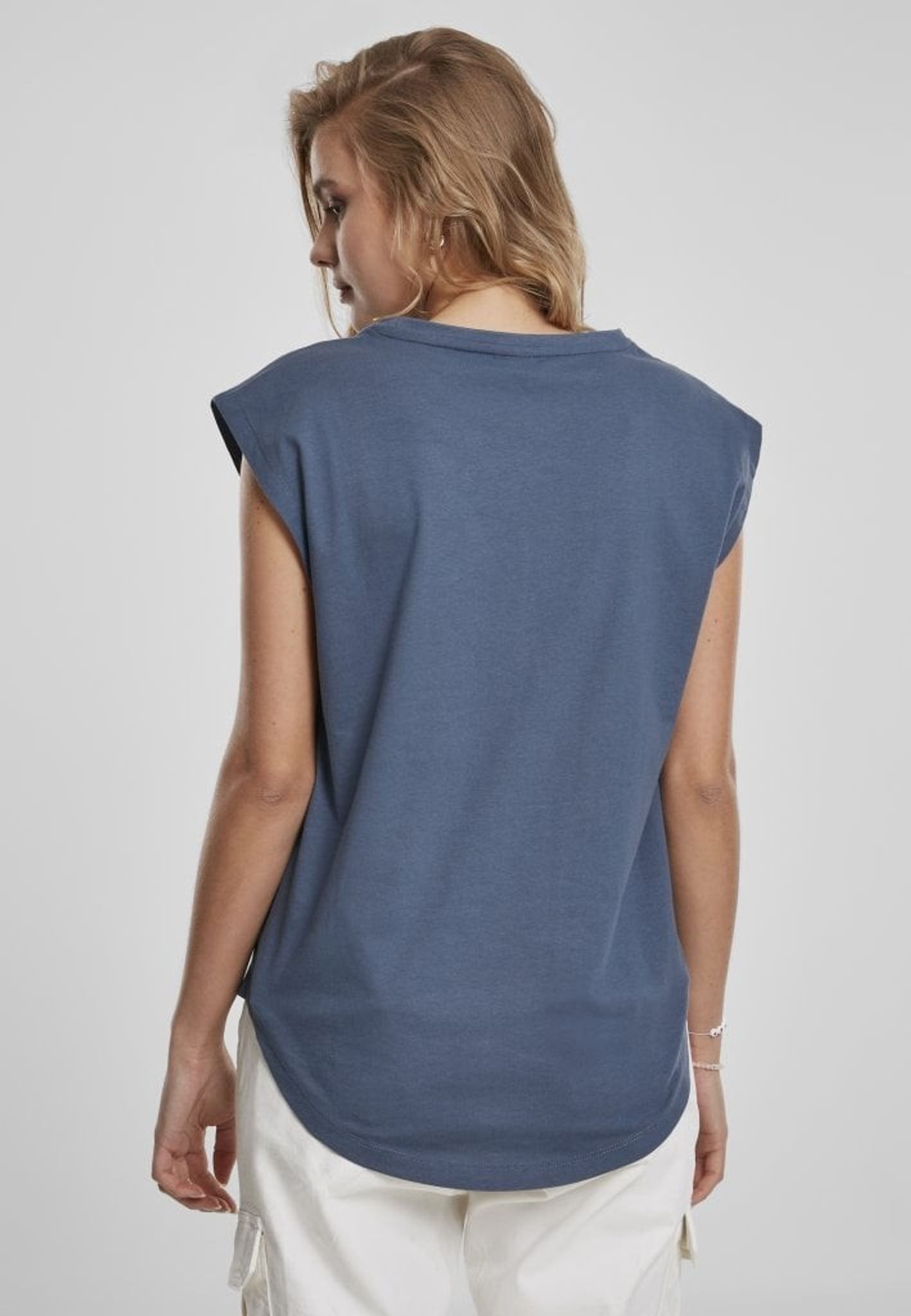 Denne top har en rund hals og brede arme, der falder ned over armene.