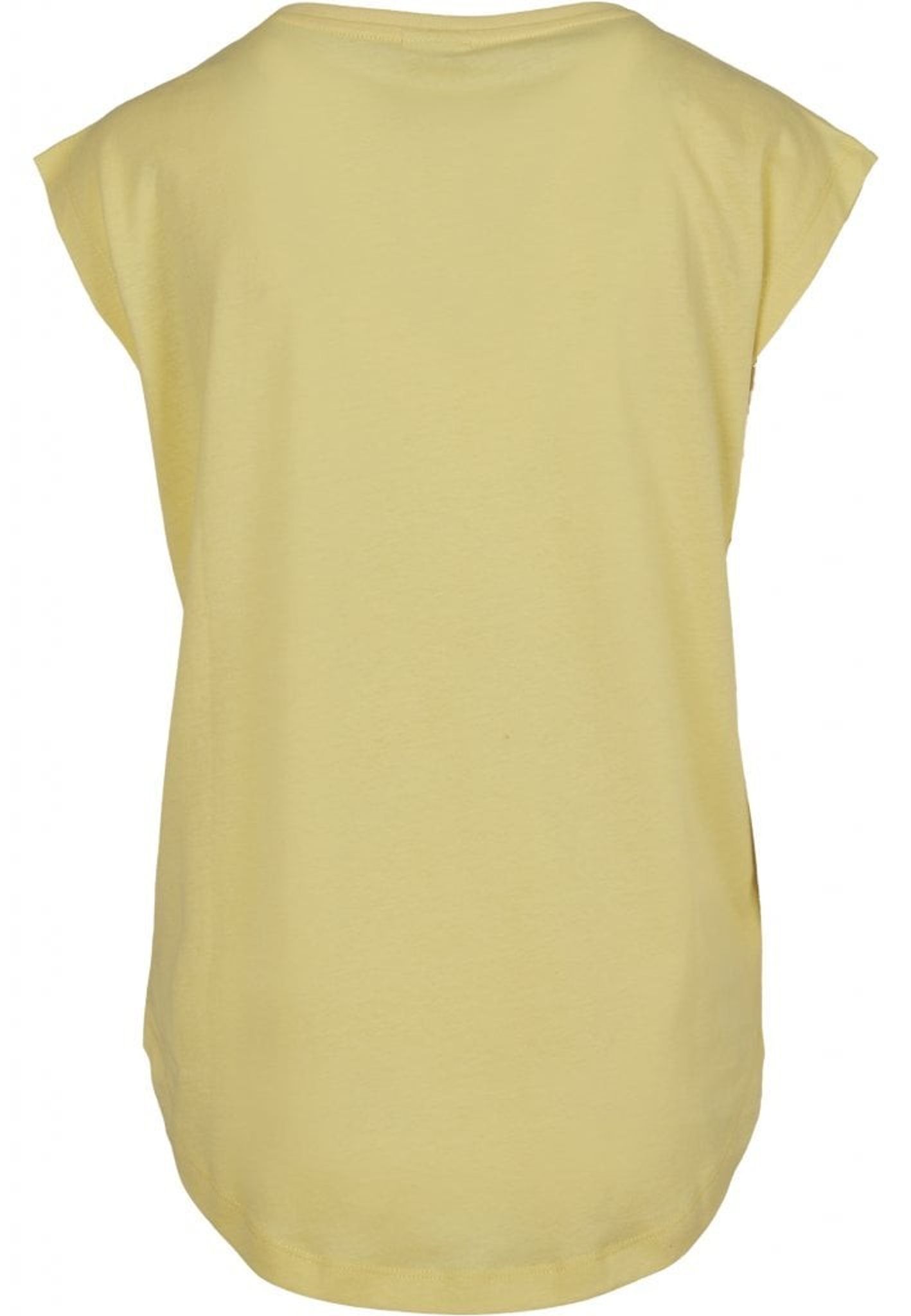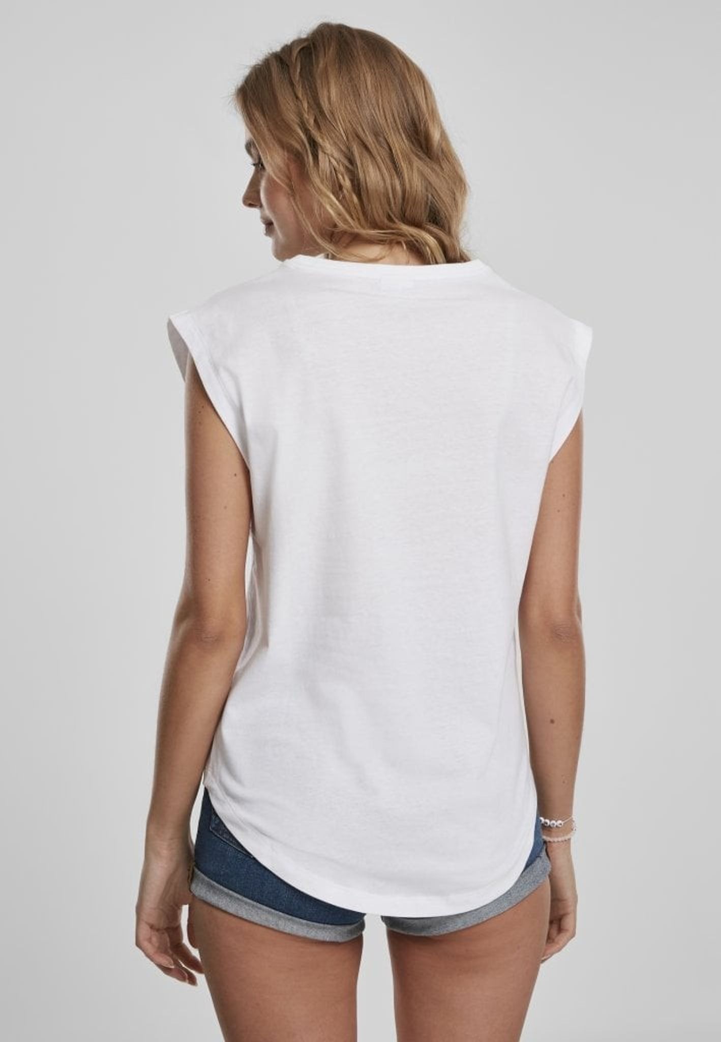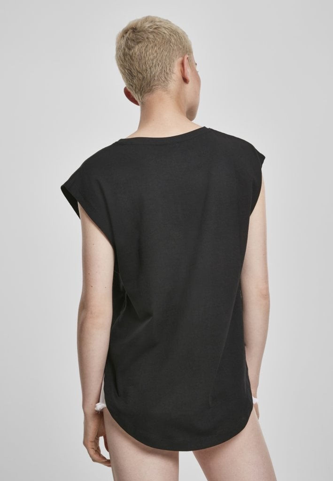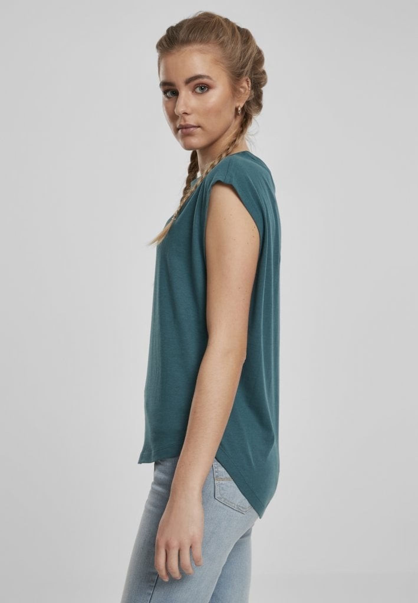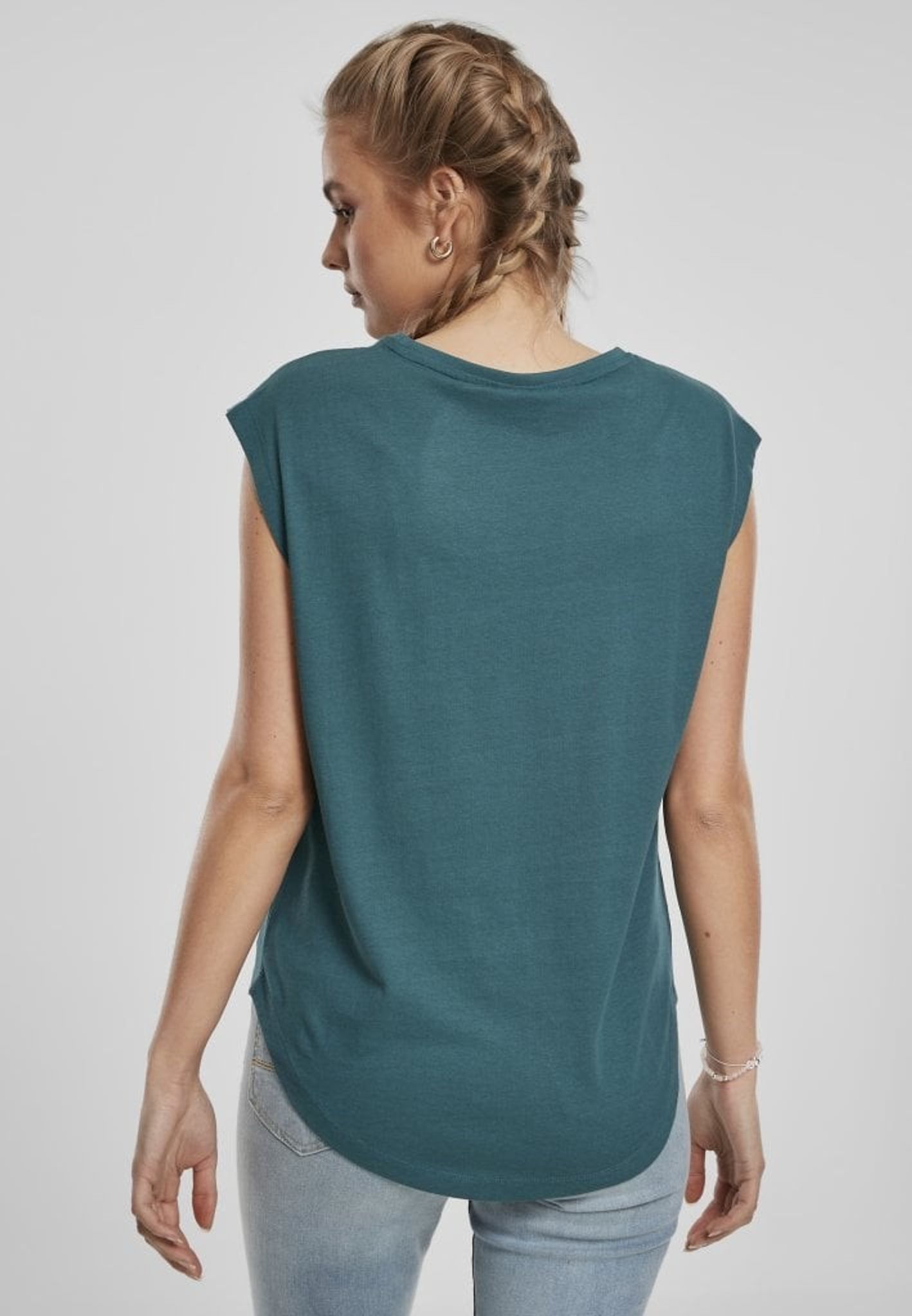 Denne top har en rund hals og brede arme, der falder ned over armene.