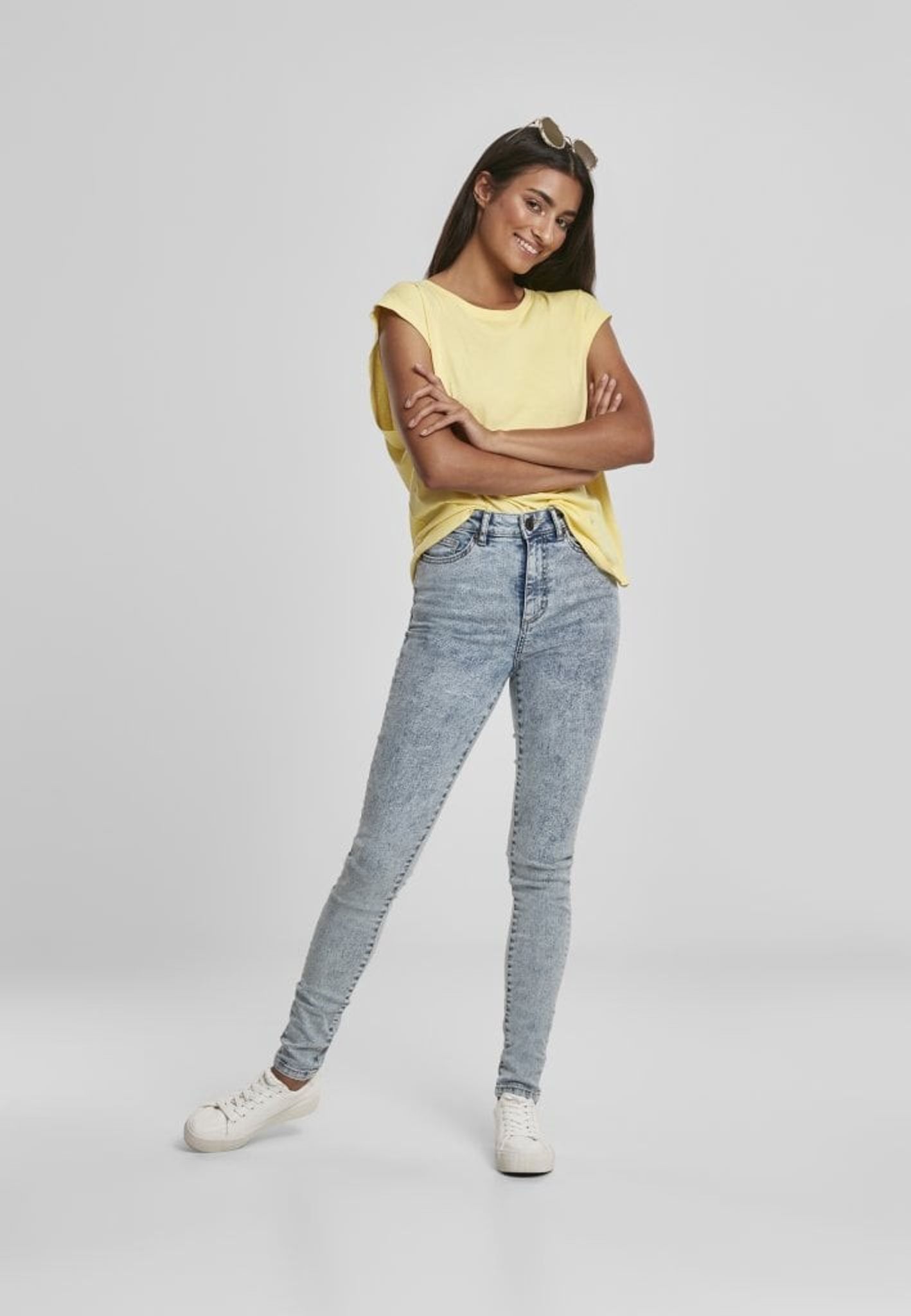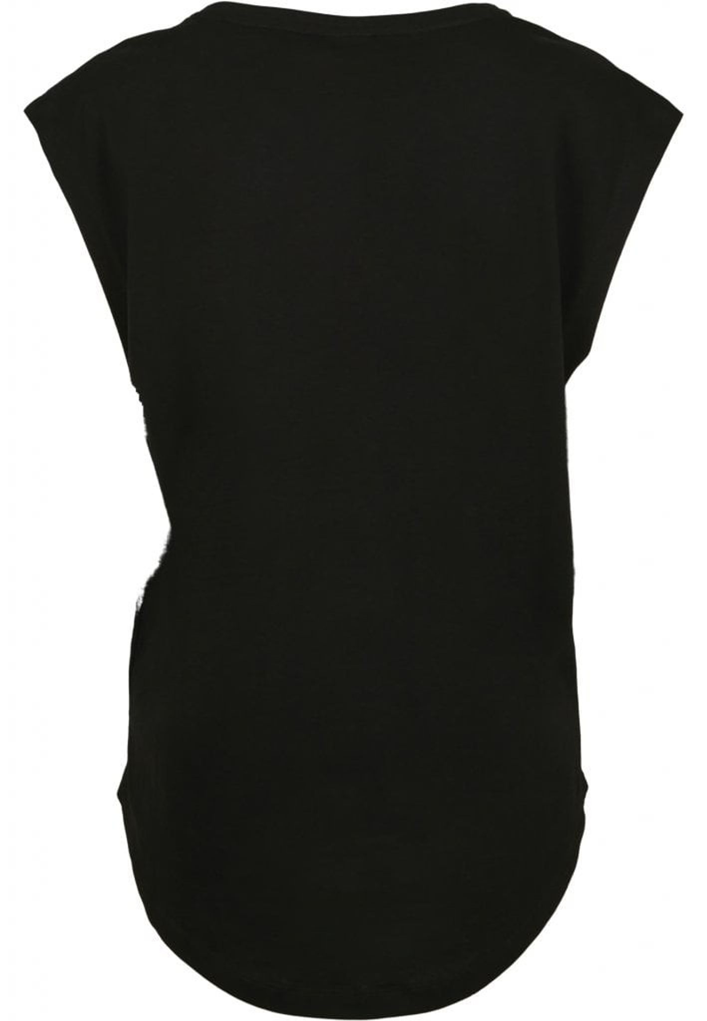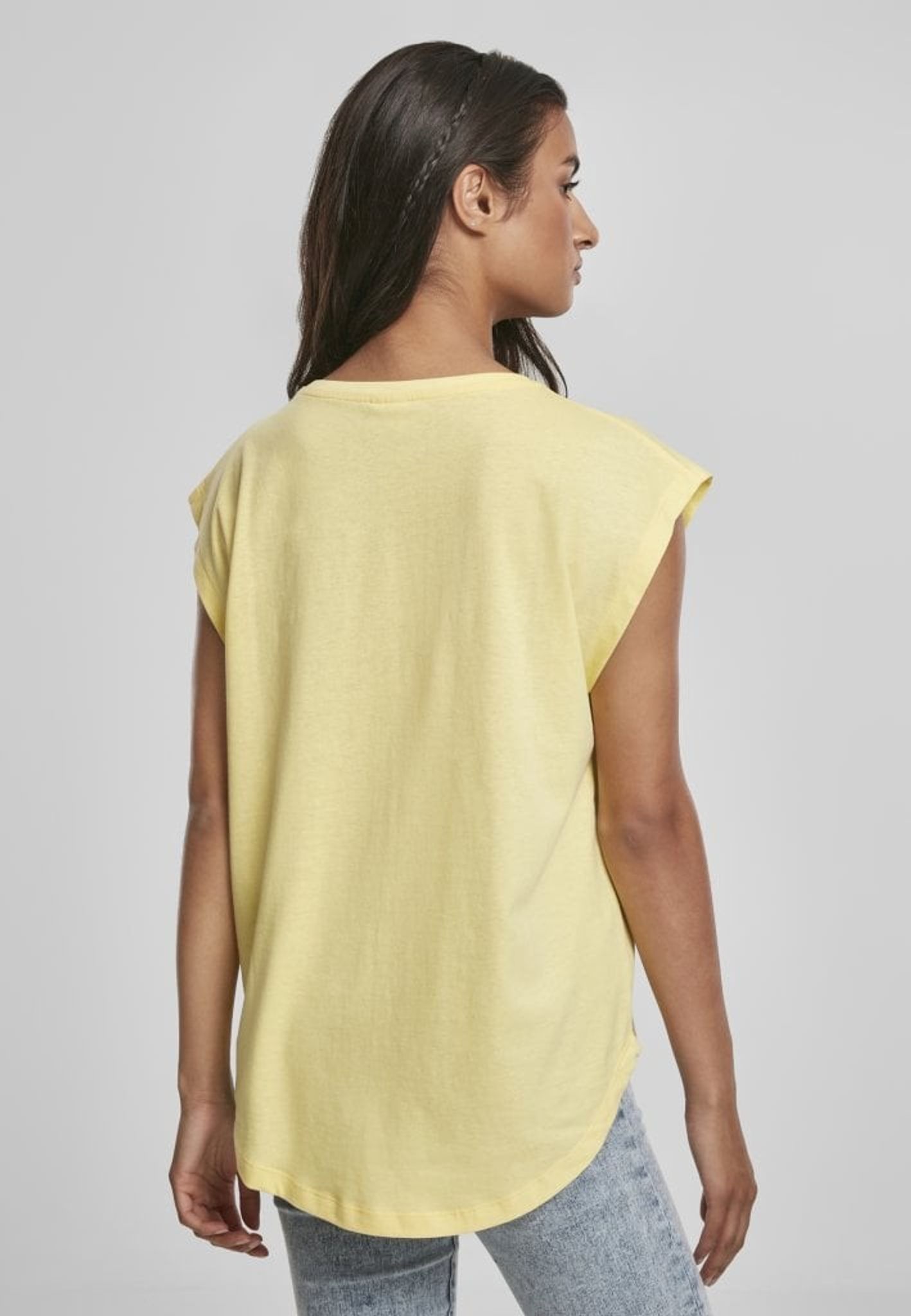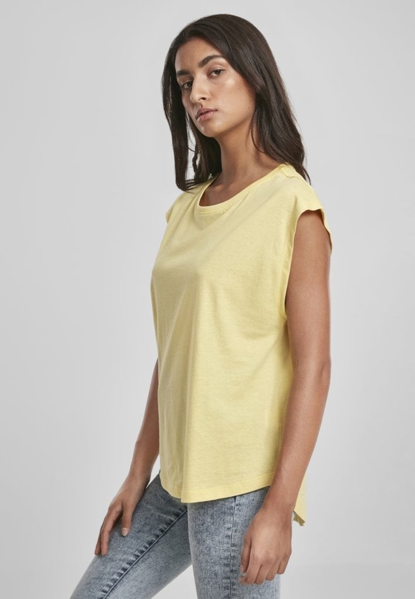 Denne top har en rund hals og brede arme, der falder ned over armene.