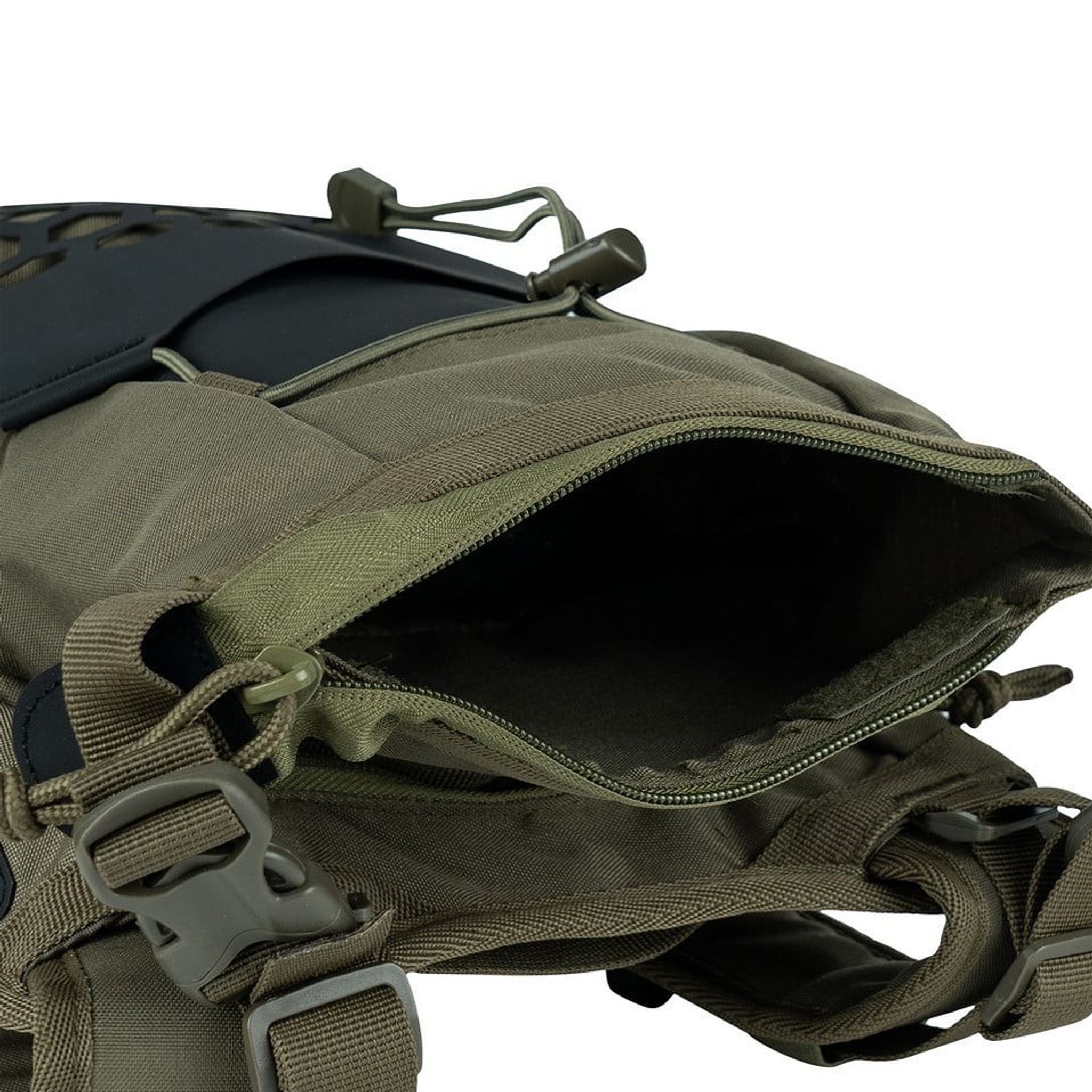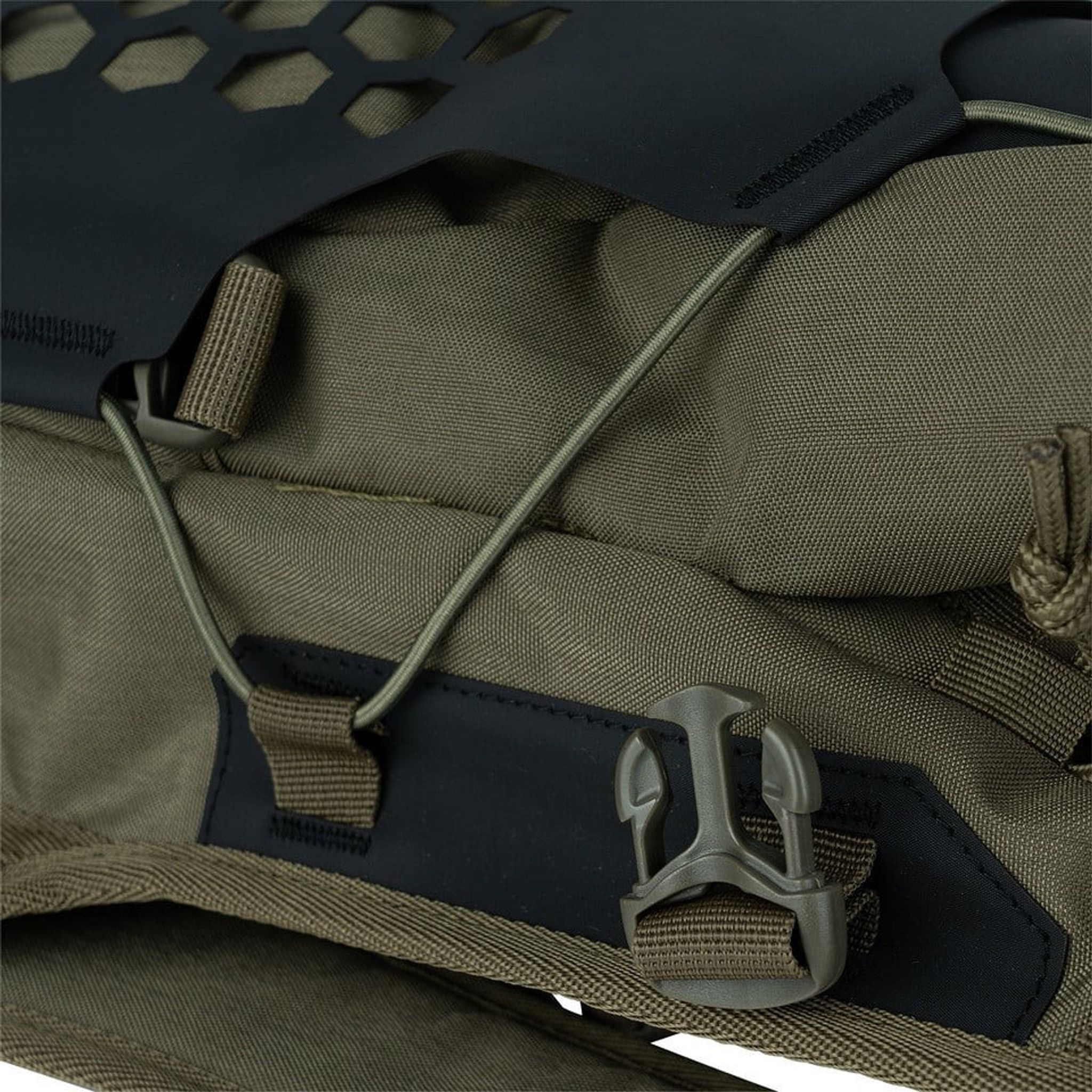 Et smart frontpanel gør det muligt at fastgøre ekstra udstyr, og rygsækken er justerbar med en elastisk ledning for at sikre en perfekt pasform. For ekstra komfort har den et bæresystem med en brystrem og en linning, der giver stabilitet og støtte under brug.