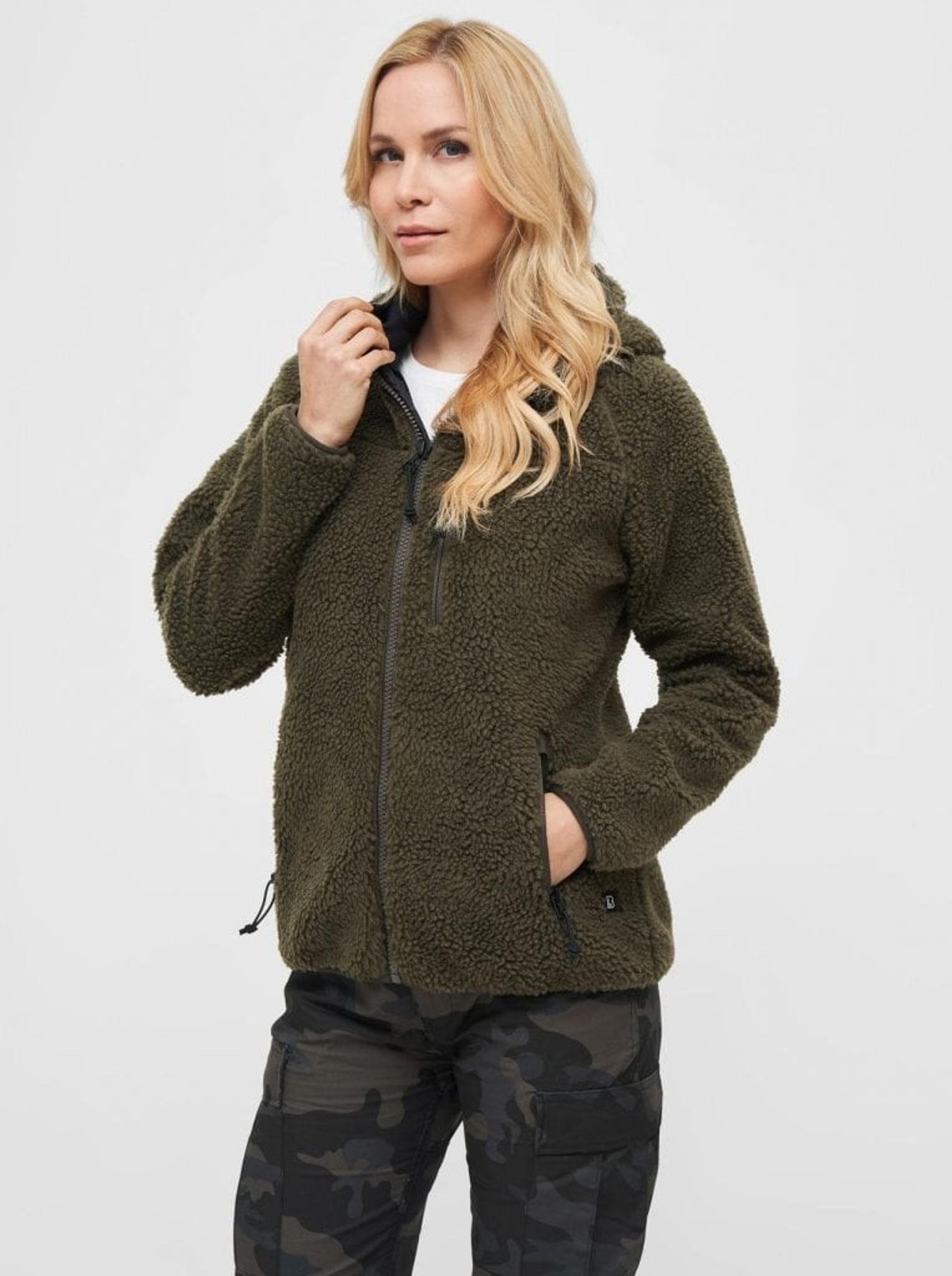 Teddy Fleece lynlåsjakke oliven - Dæme