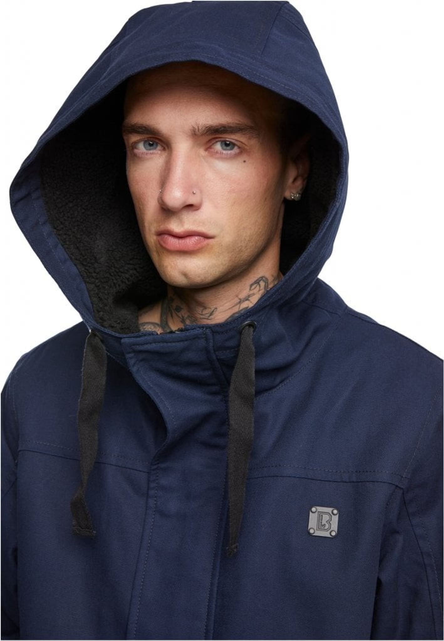 Teddyforet jakke til mænd er en kort jakke med hætte og teddyfor.
