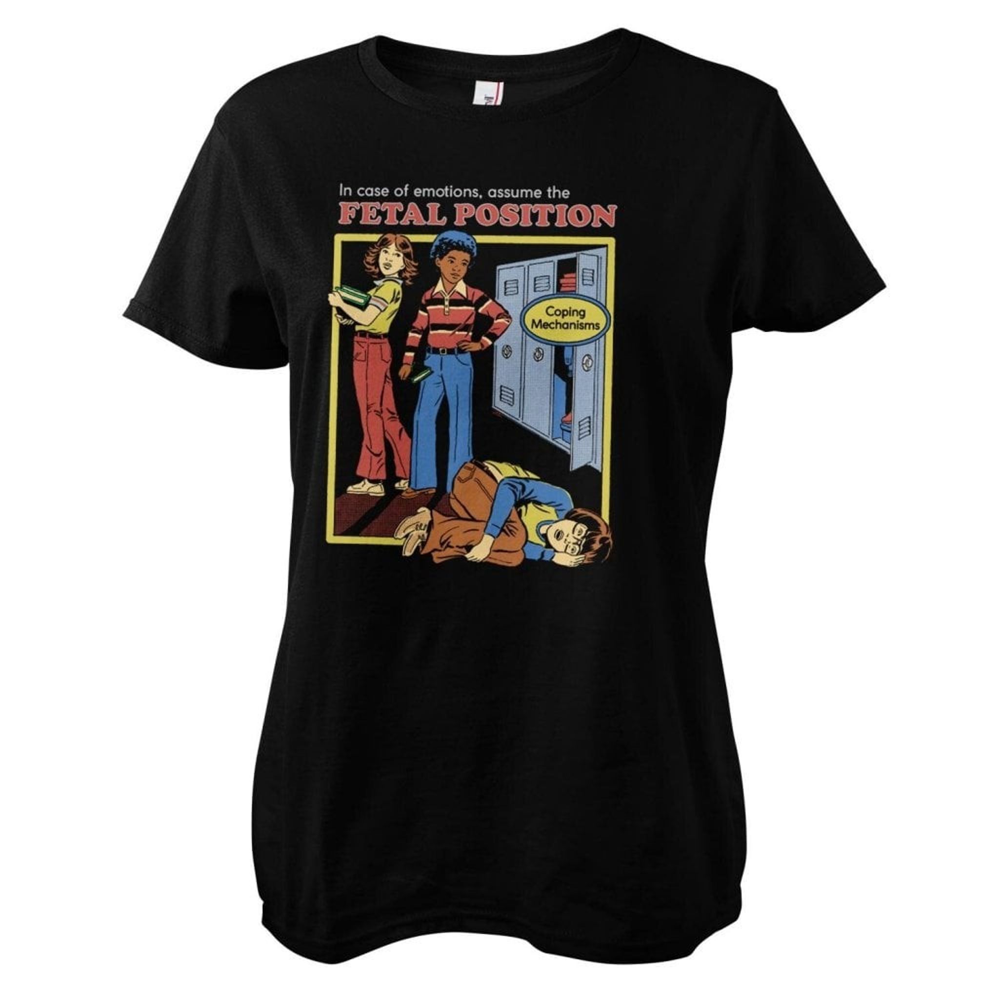 Dette er ikke nogen T-shirt. Nej, denne lille skønhed er et kunstværk, der fører dig tilbage til skoletiden på en måde, du aldrig har oplevet før. Med sit humoristiske motiv af en person i fosterpositionen og den ironiske tekst "I tilfælde af følelser, påtager sig føtalens position", er denne T-shirt et must for enhver, der nogensinde har følt sig overvældet af følelser. Vi lover, at denne T-shirt vil gøre dig populær på skolens ditto eller i det mindste få dig til at føle dig køligere, end du virkelig er.