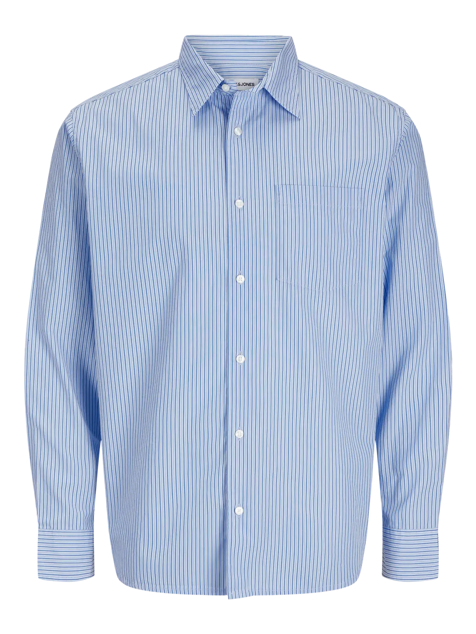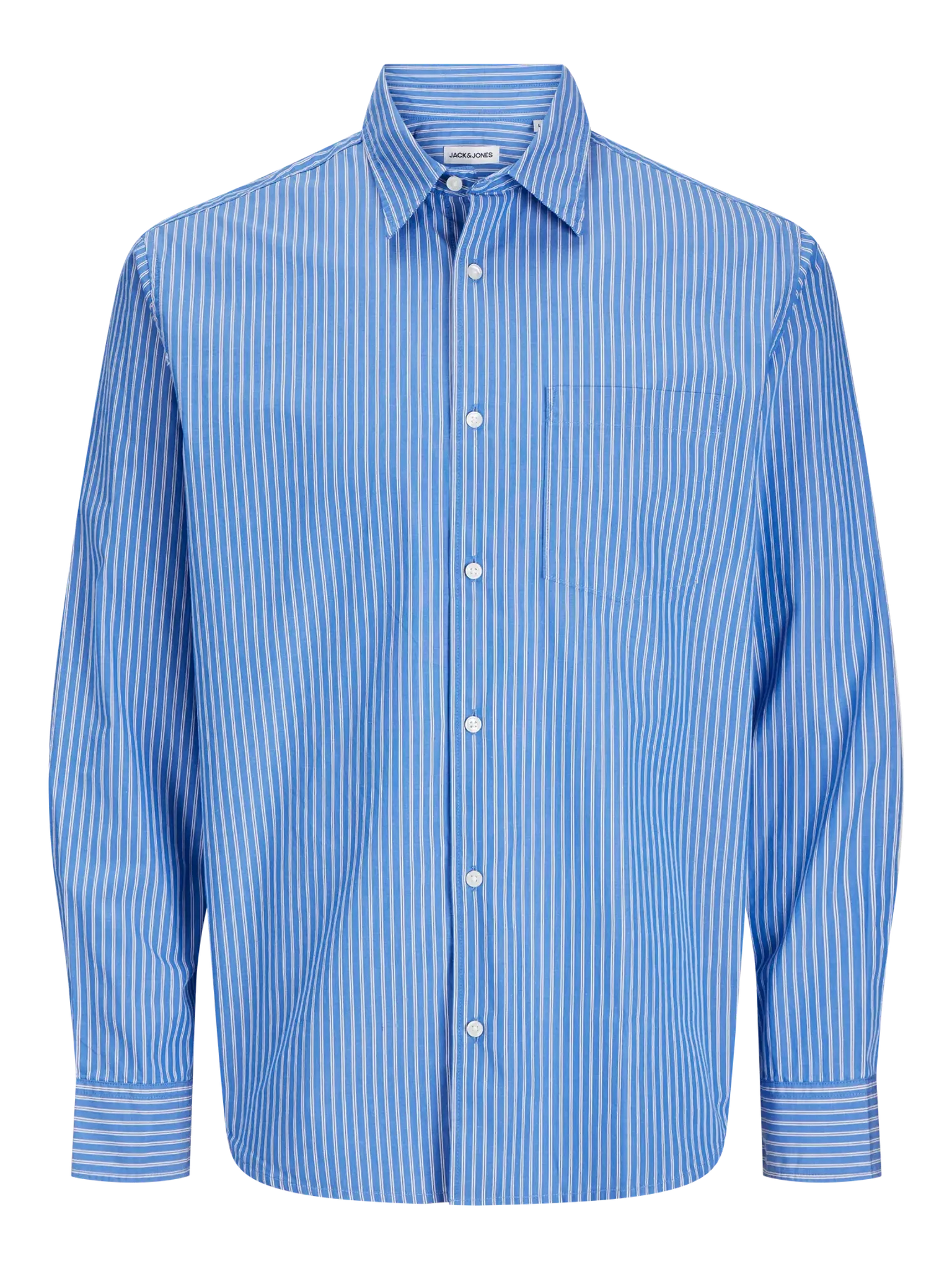 Denna skjorta med långa ärmar erbjuder en tidlös stil som passar perfekt för vardagsbruk. Den har en klassisk skjortkrage och knäppning fram, vilket ger en elegant och stilren look.