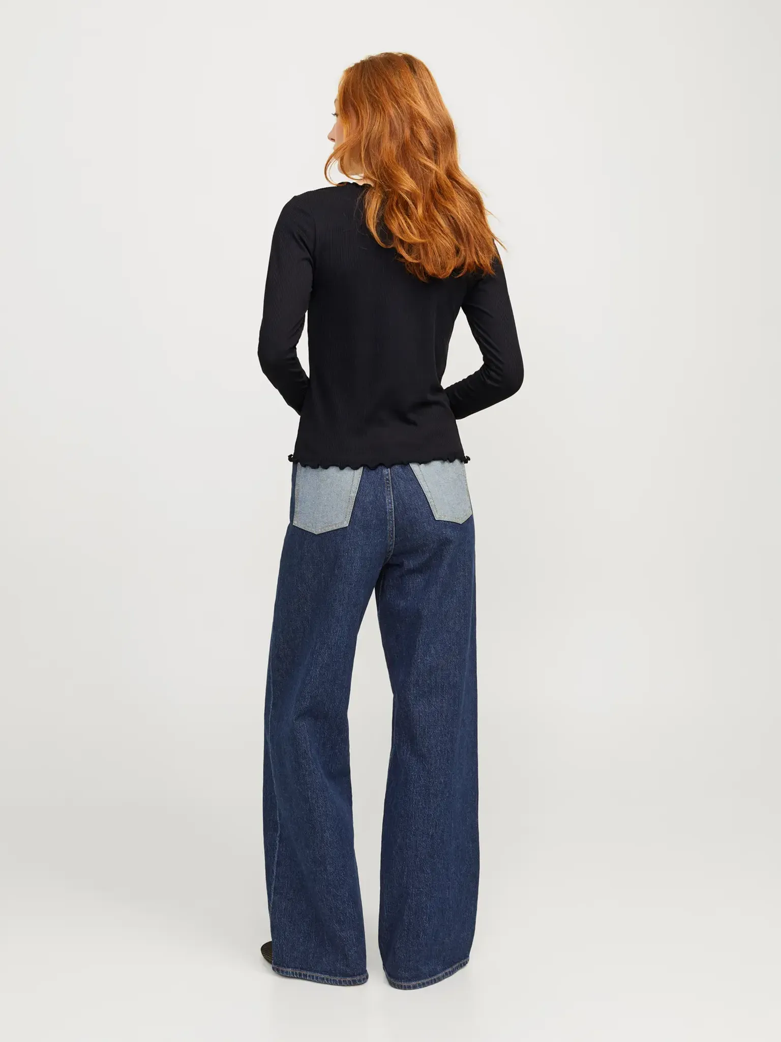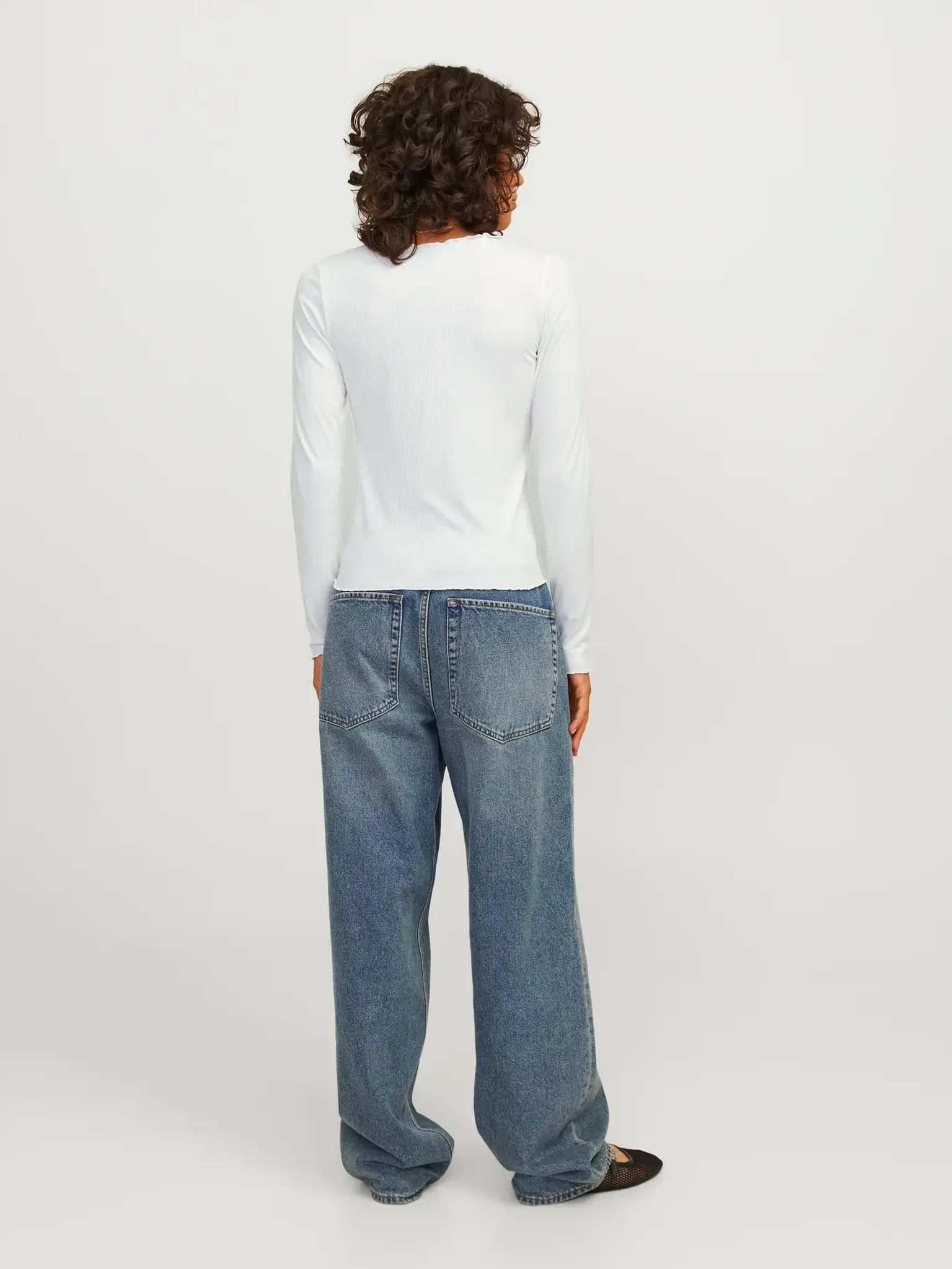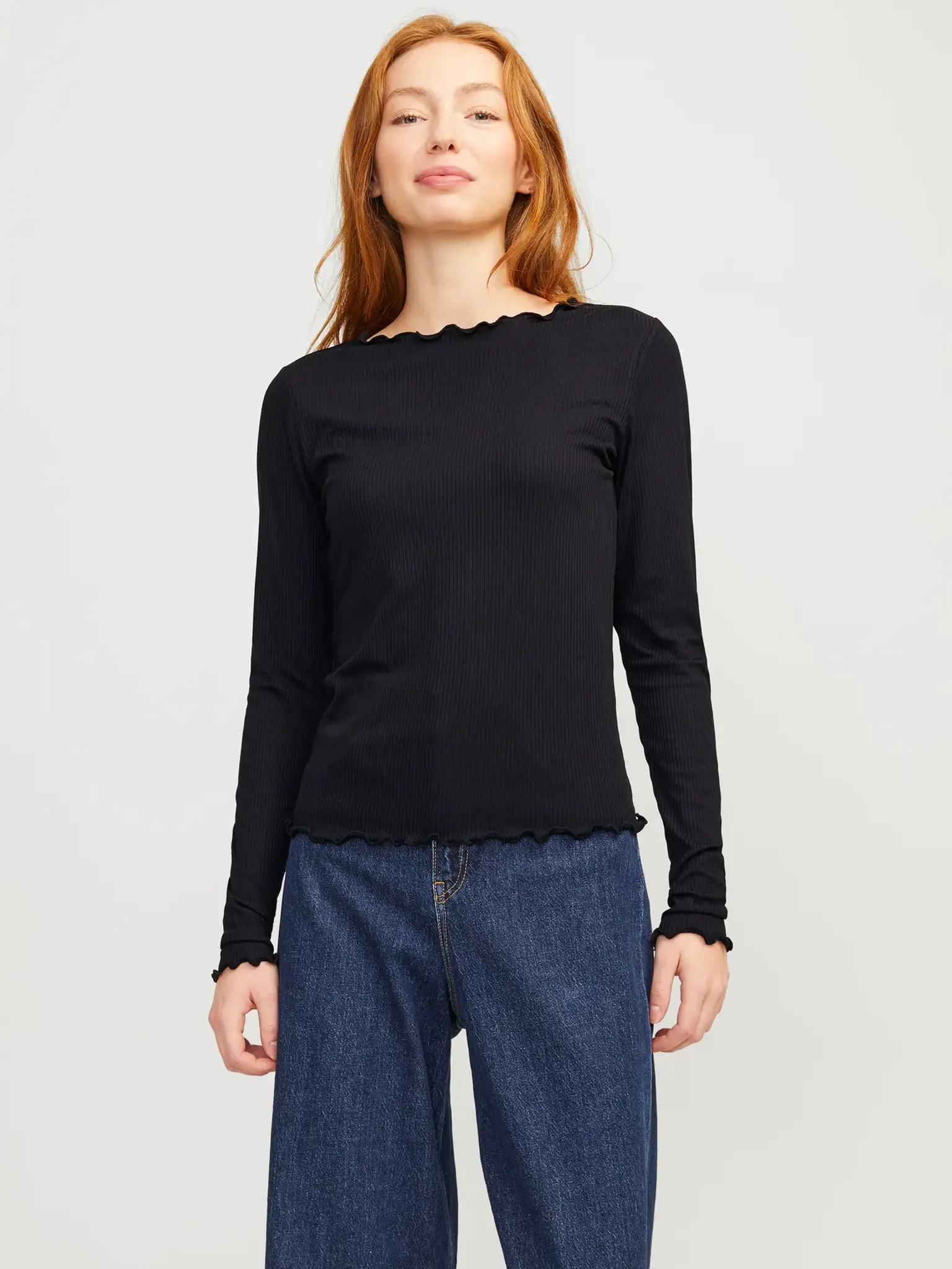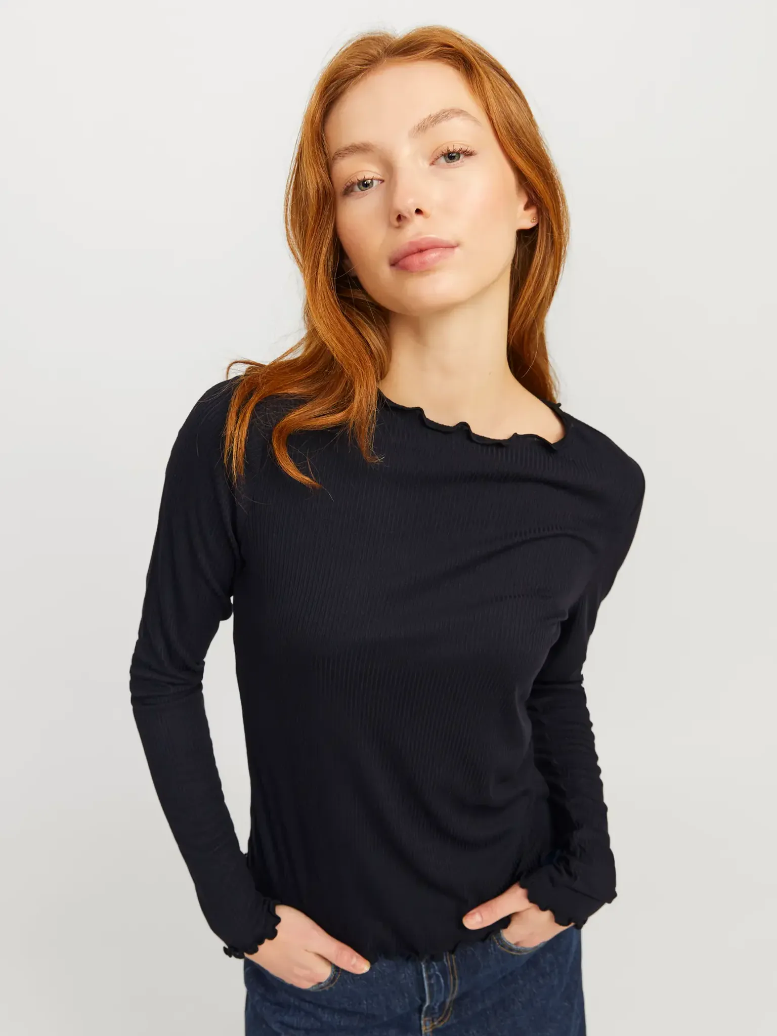 Denna långärmade topp är en grundläggande del av din outfit och passar utmärkt ihop med jeans, shorts och byxor.