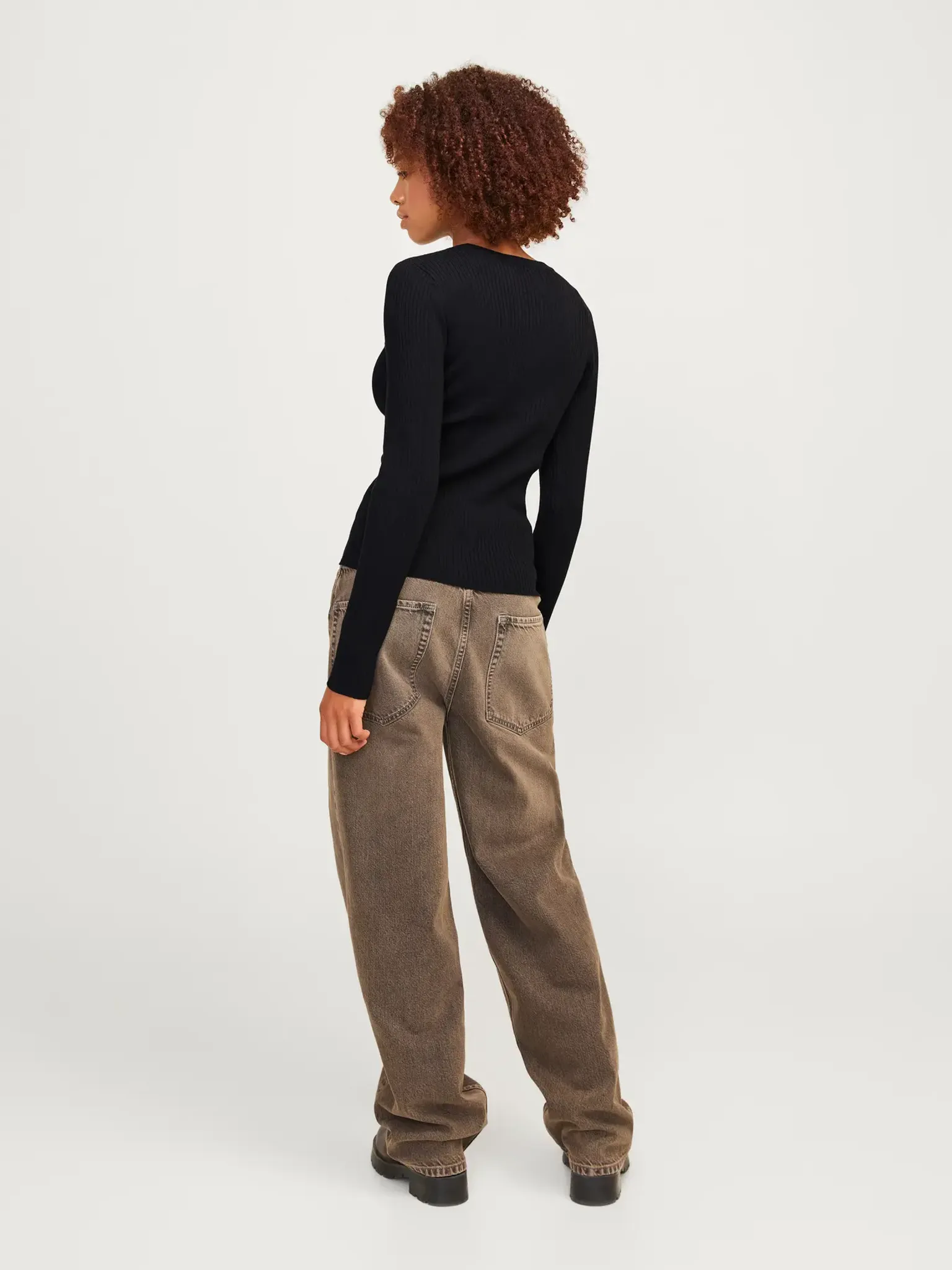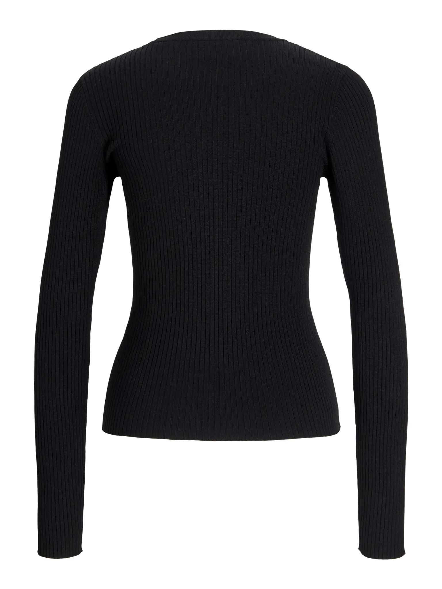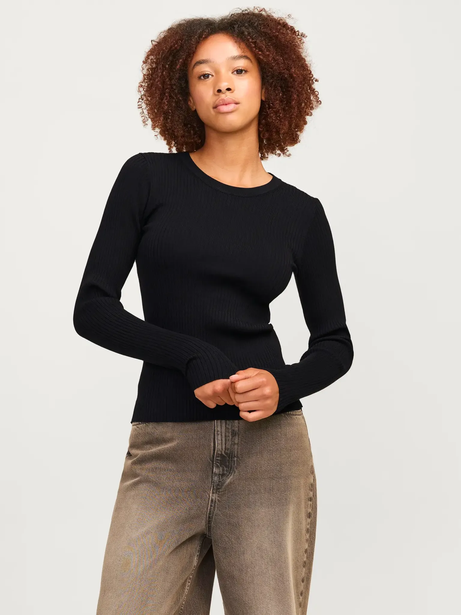 Toppens ribbade struktur ger en smickrande silhuett och en bekväm passform. Den har en rund halsringning och lång ärmar, vilket gör den idealisk för både vardag och mer avslappnade tillfällen.