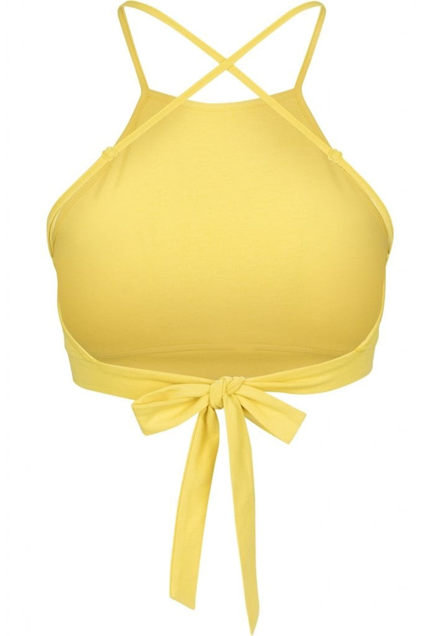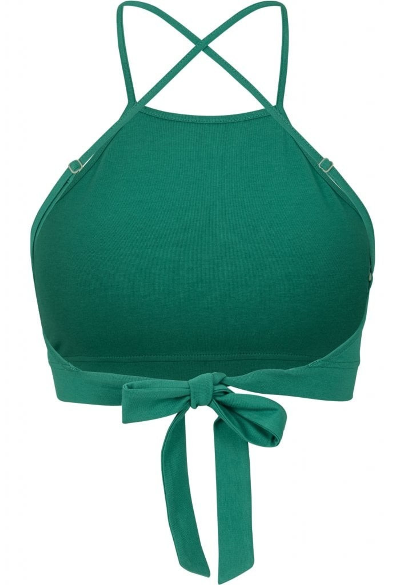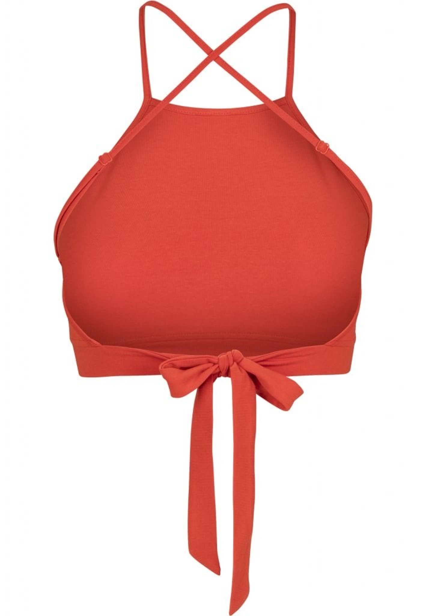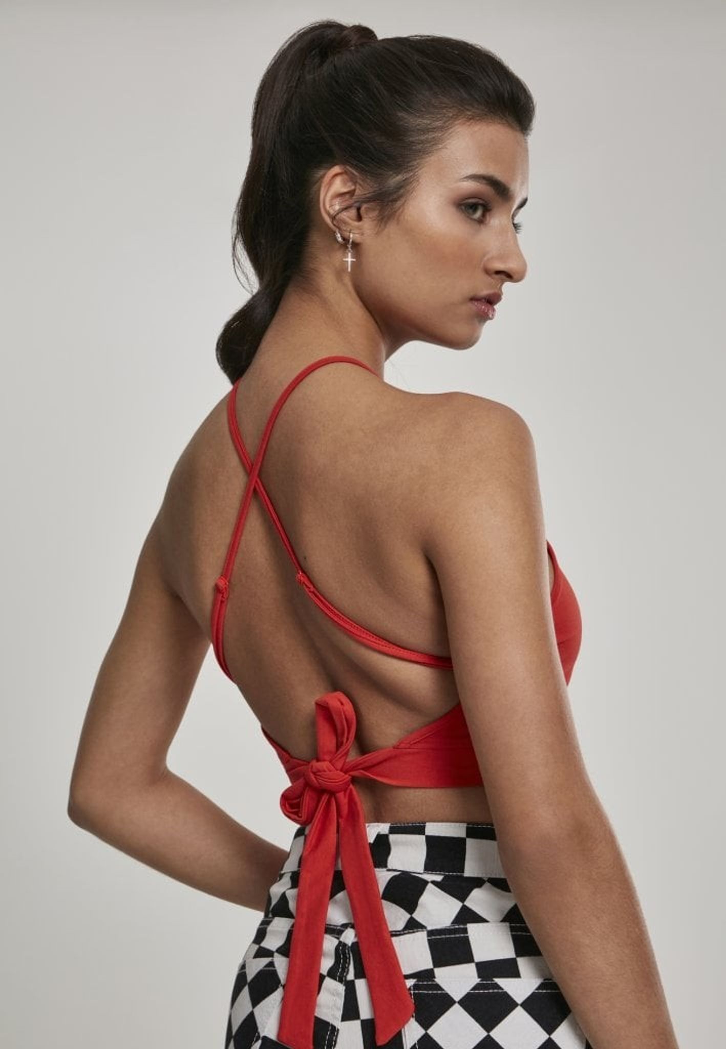 Toppen er bundet bagpå med et bredere bånd under bysten.