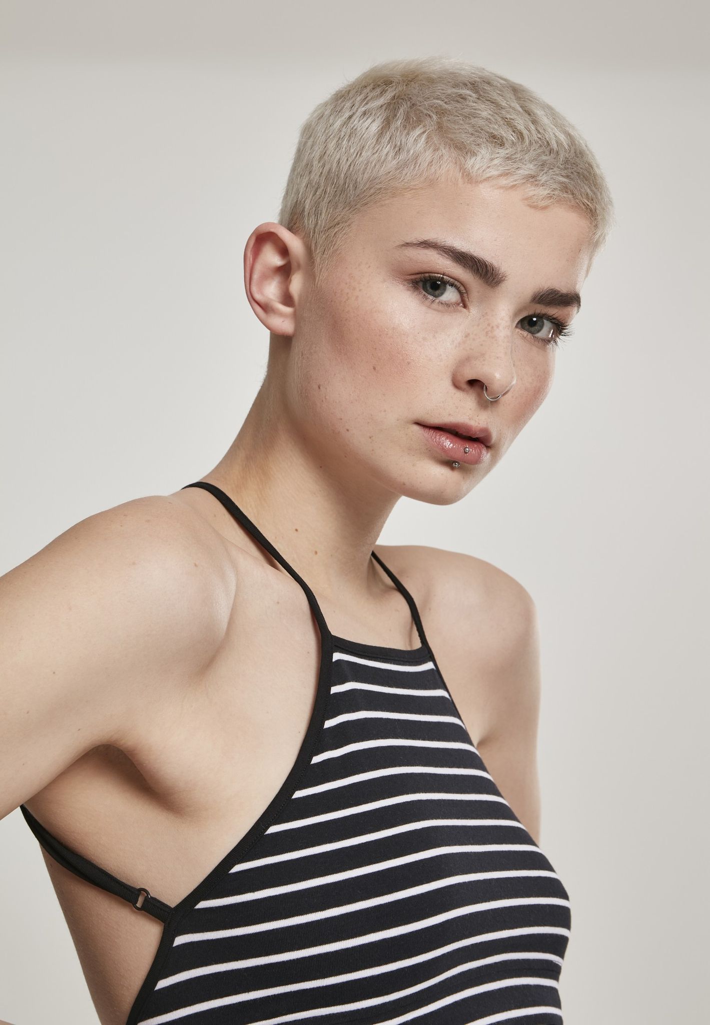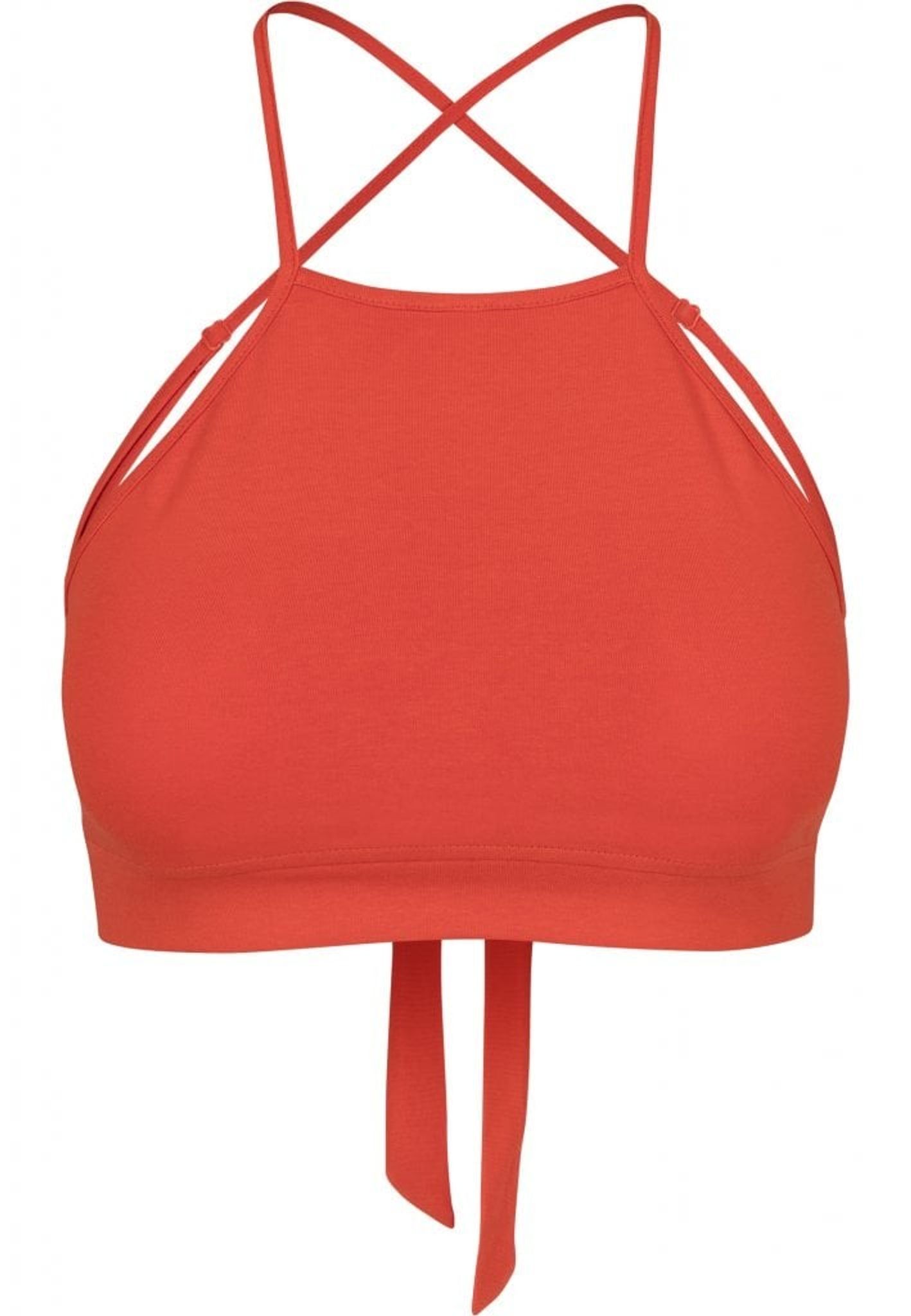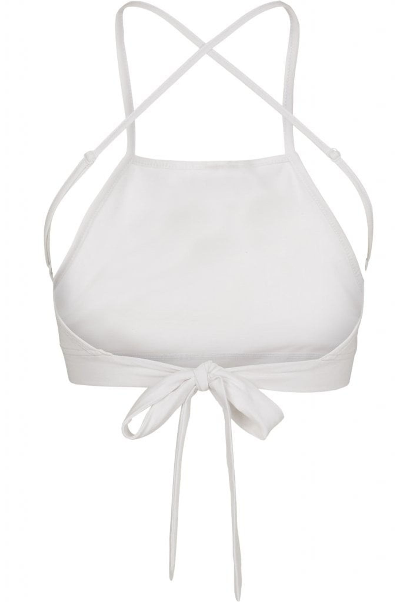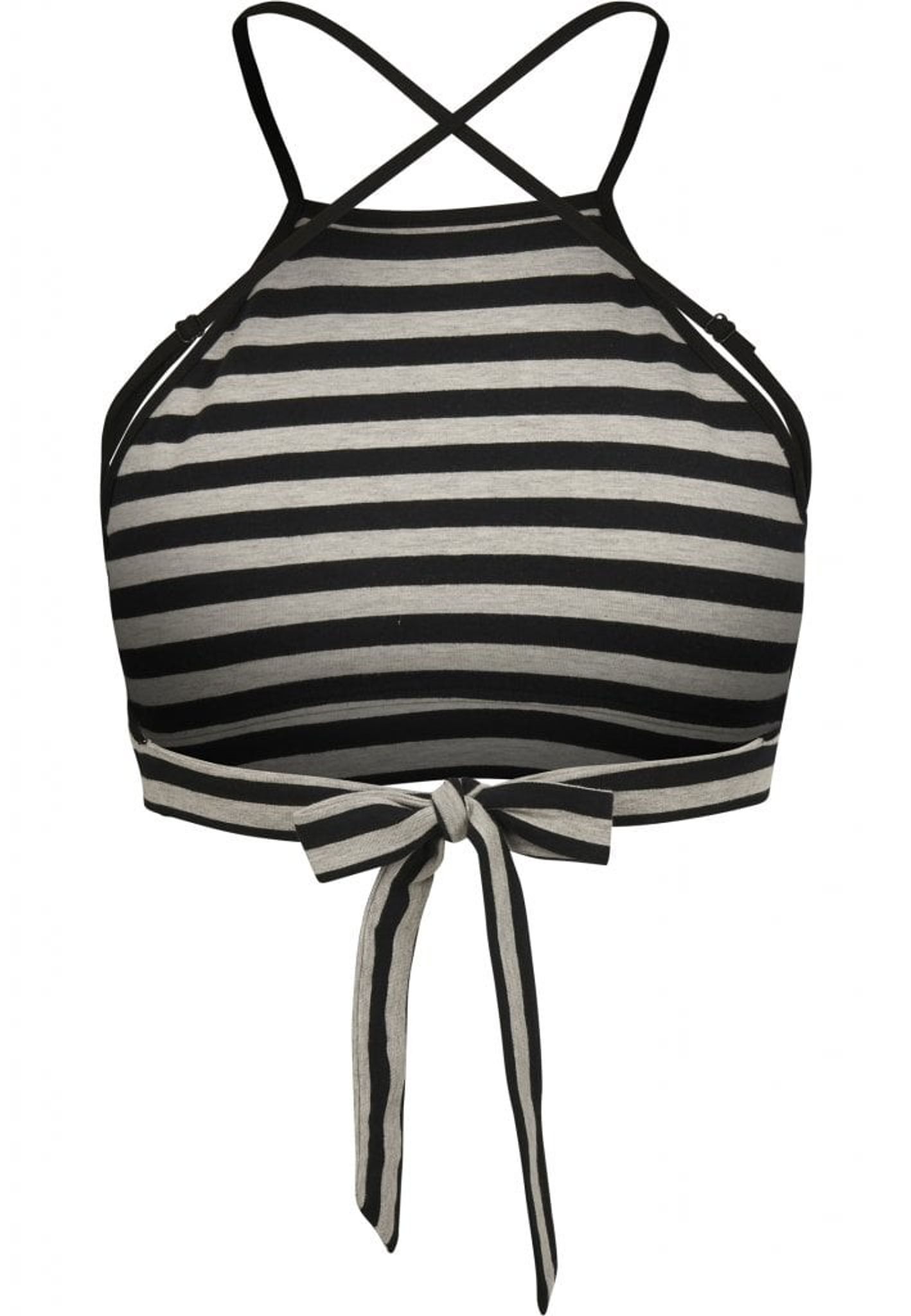 Toppen er bundet bagpå med et bredere bånd under bysten.