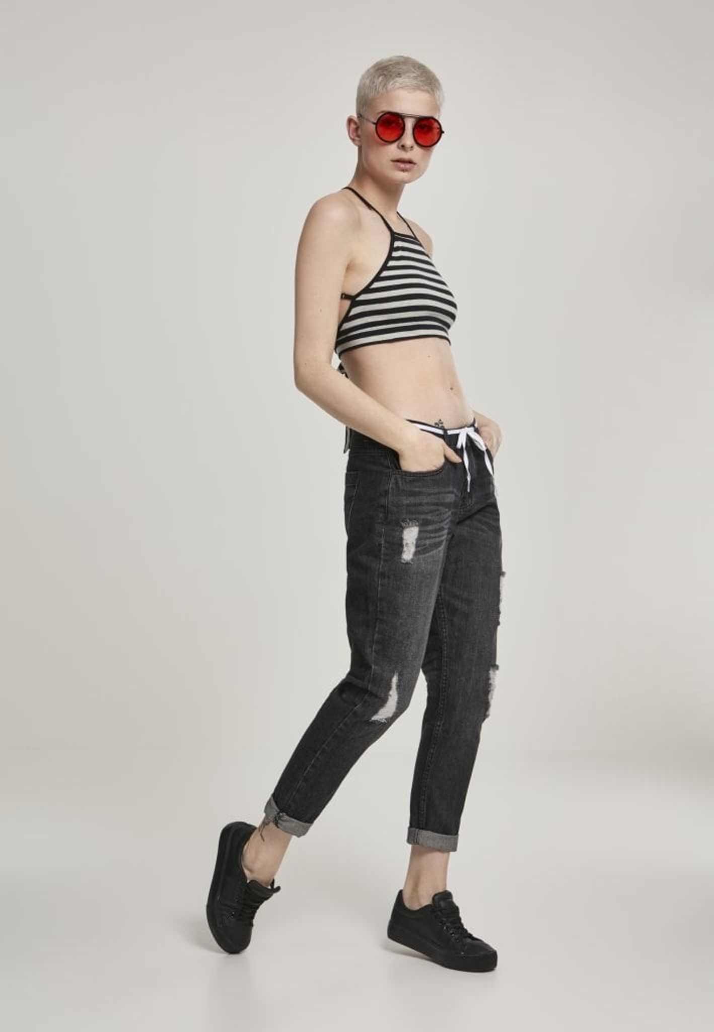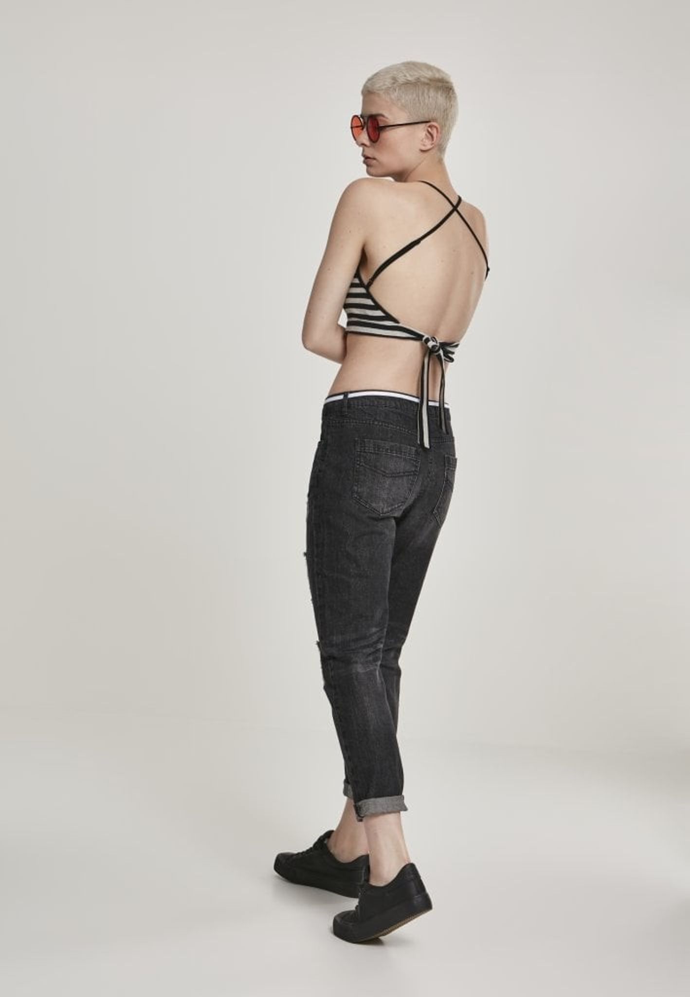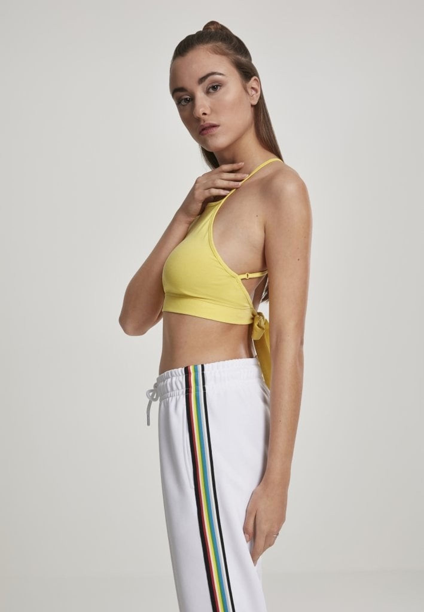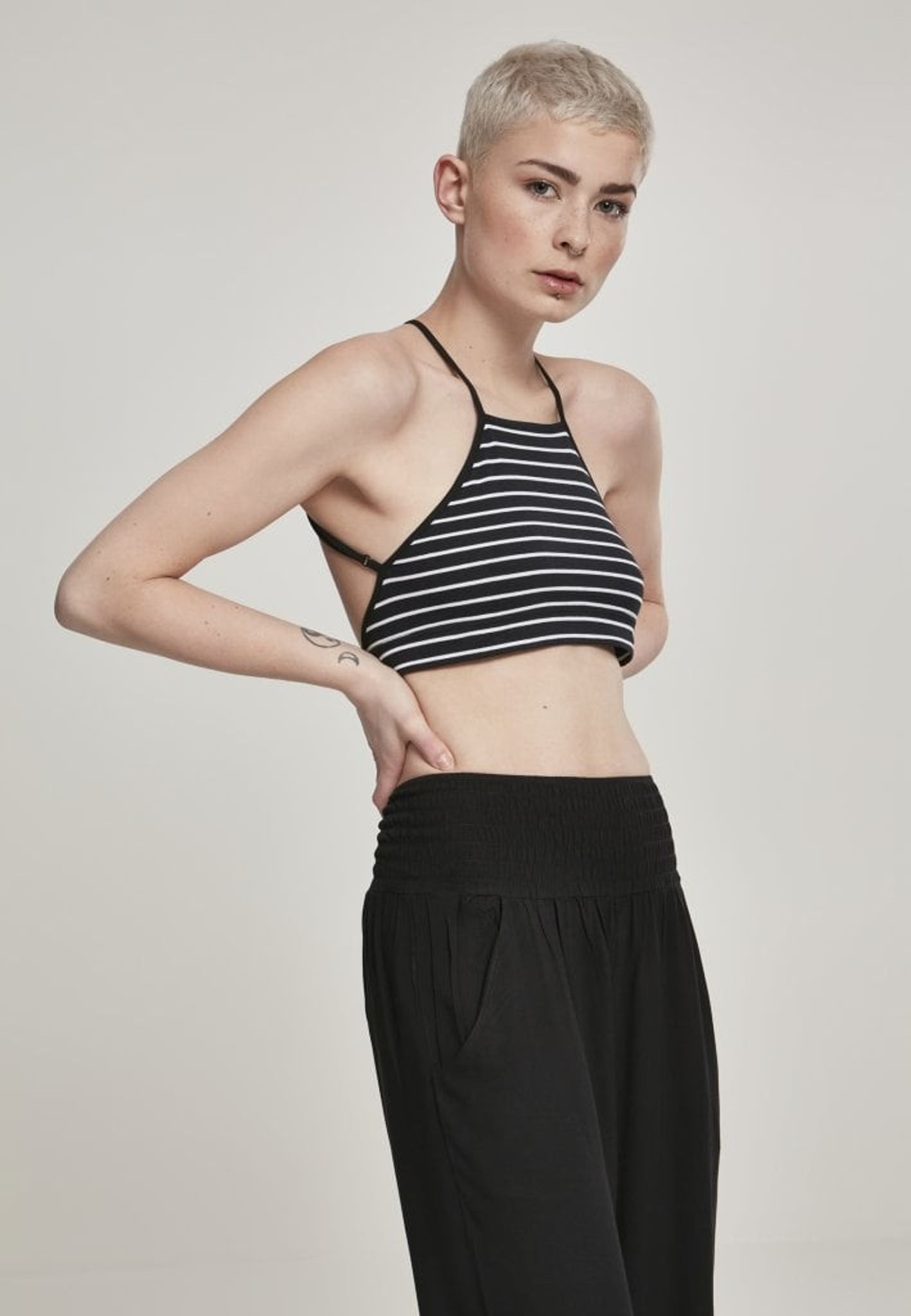 Toppen er bundet bagpå med et bredere bånd under bysten.