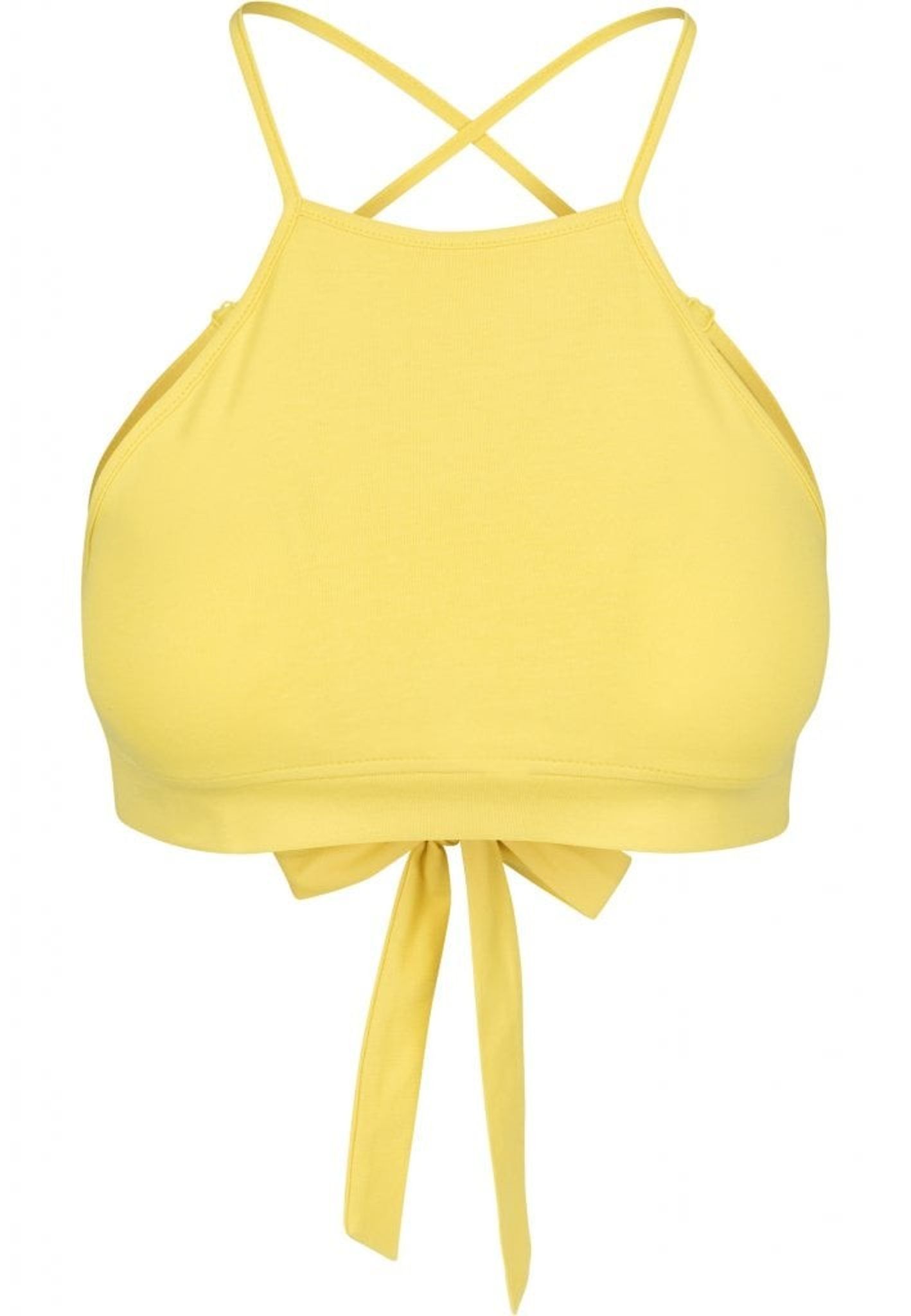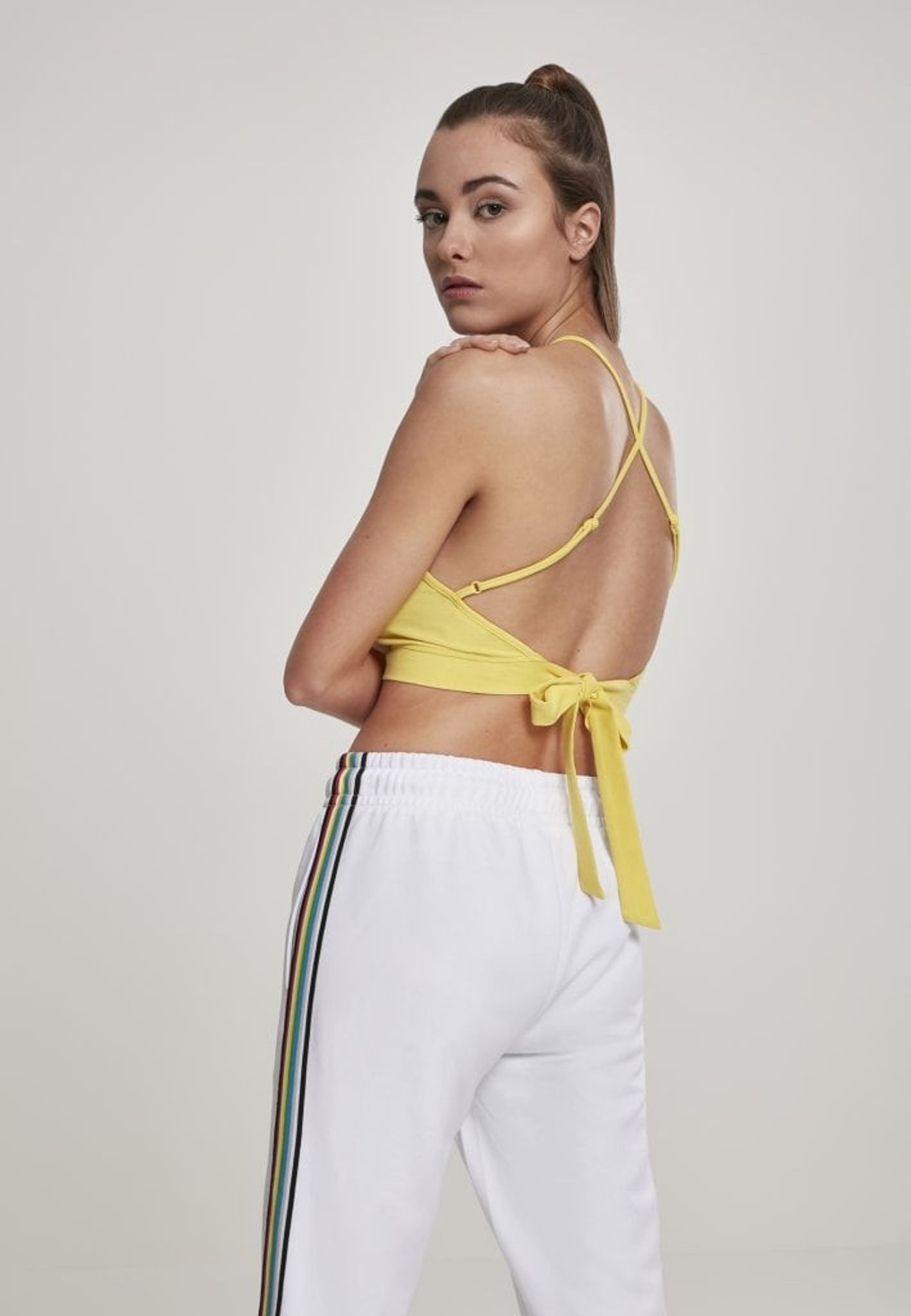 Denne top har smalle justerbare stropper, der krydser sig bagpå.