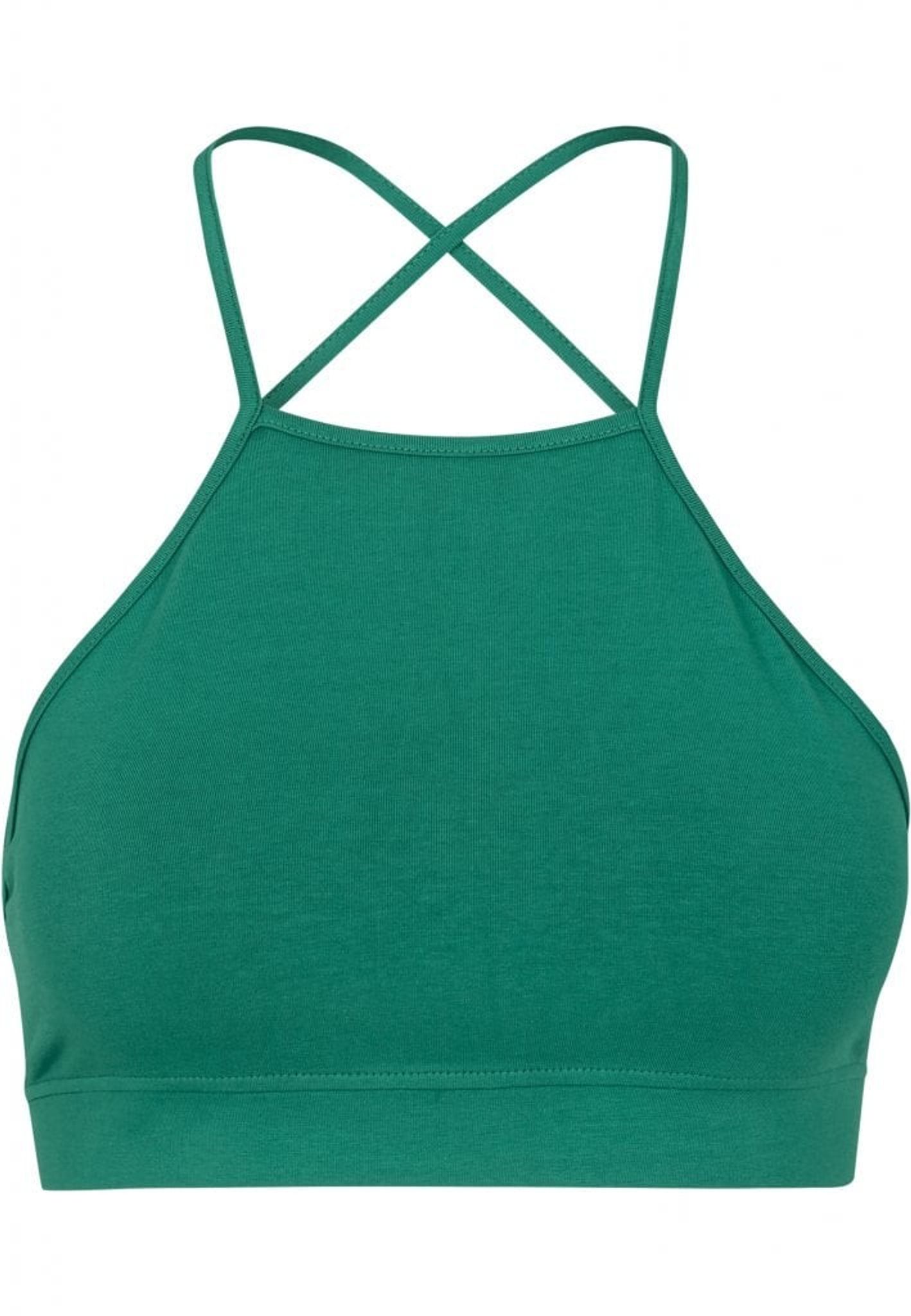 På fronten går toppen højt op i nakken og under bysten er et bånd