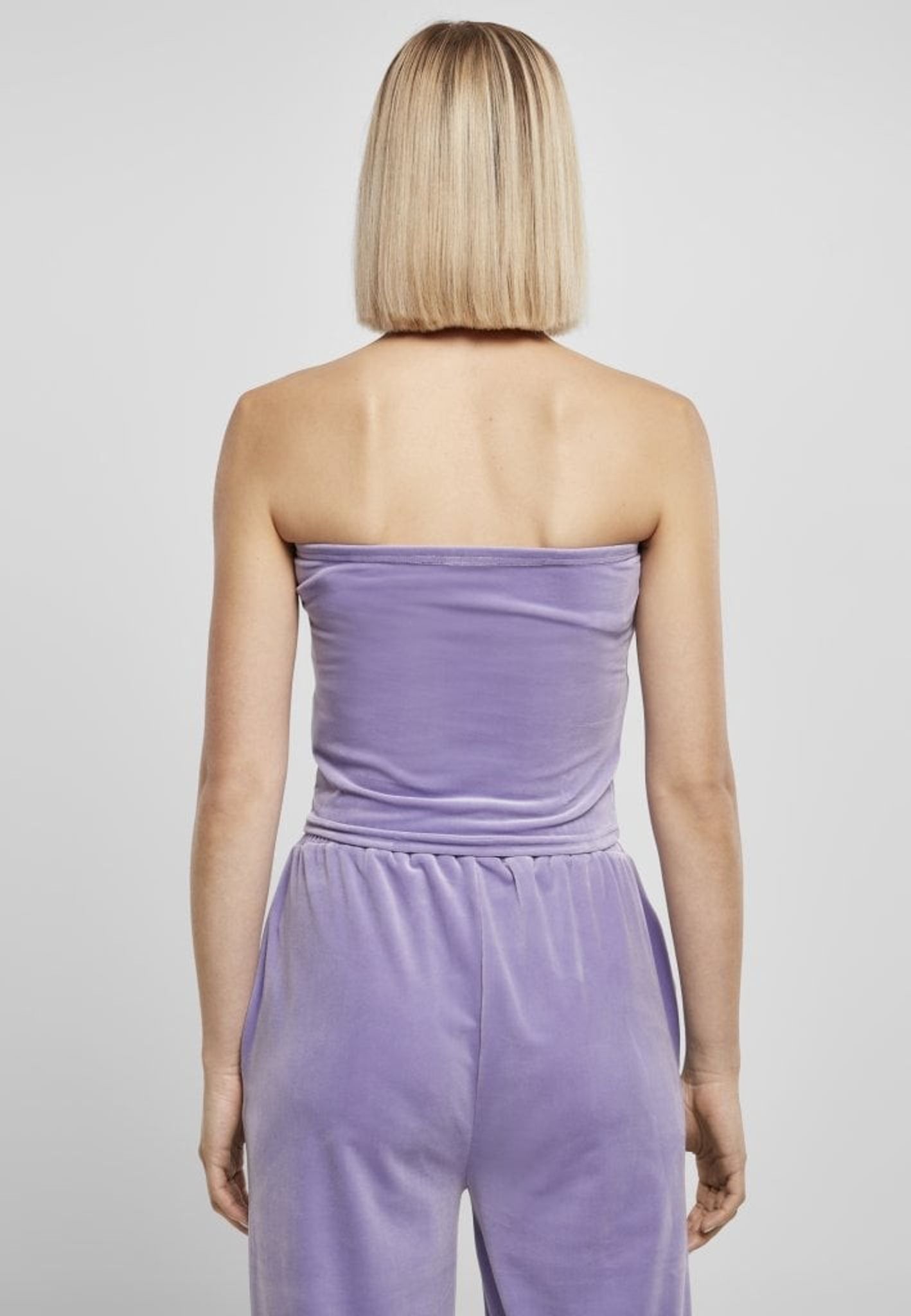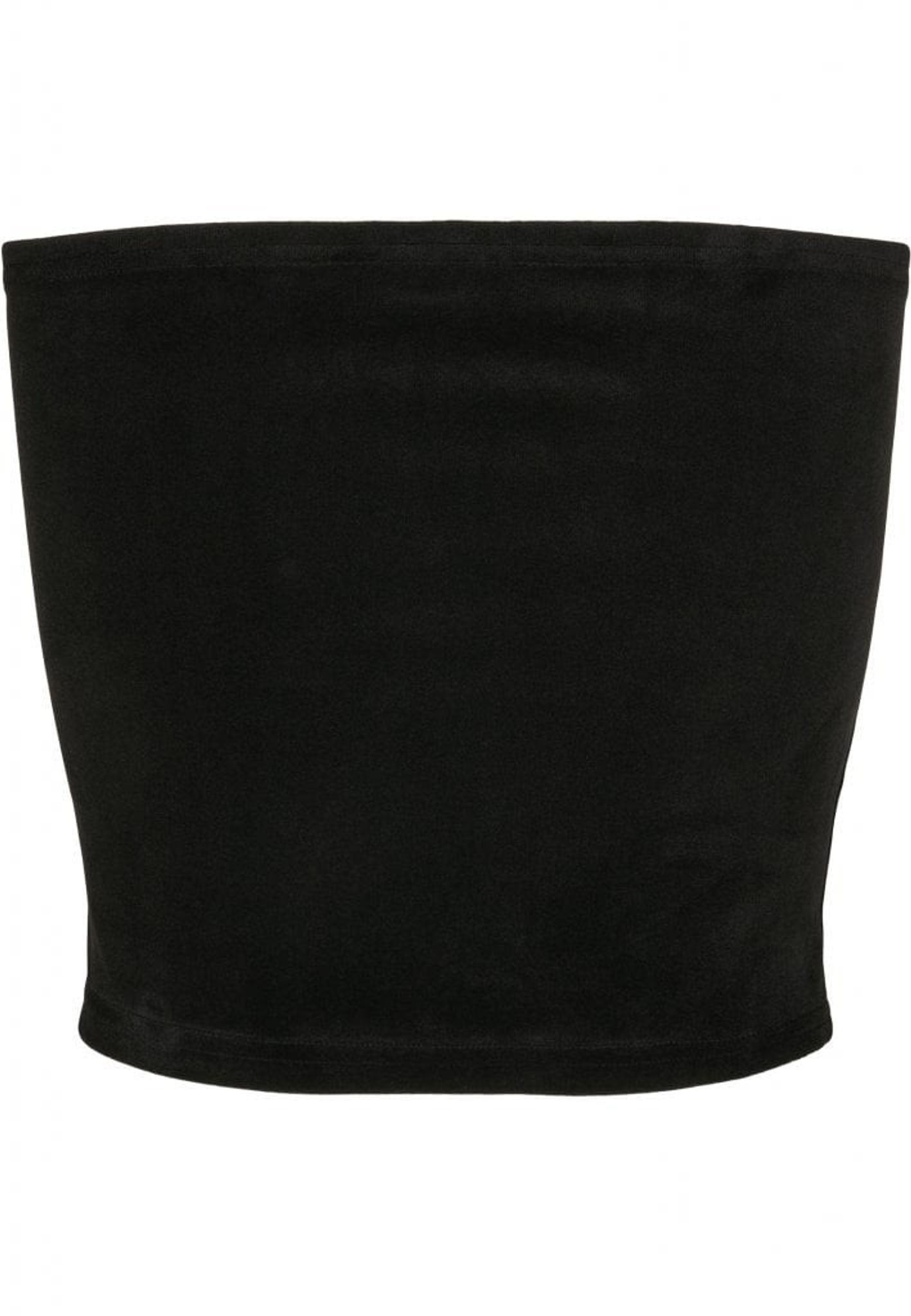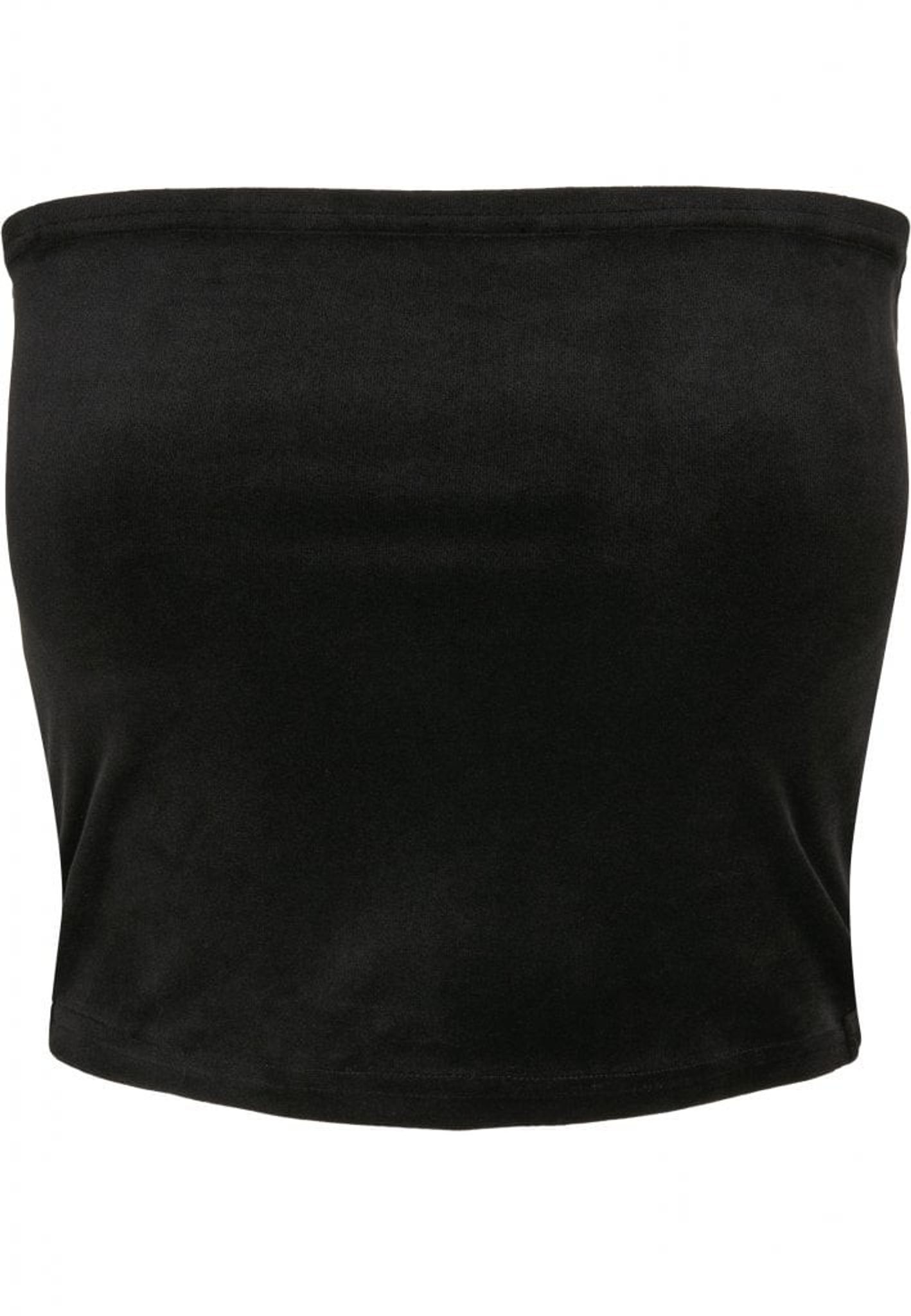 En tubetop, der er slanket i smukt stretch-fløjl. Tubetoppen behøver ikke stropper, hvilket betyder, at skaftet er blottet, da det har et elastikbånd i toppen af toppen, som giver den en sikker fastgørelse.