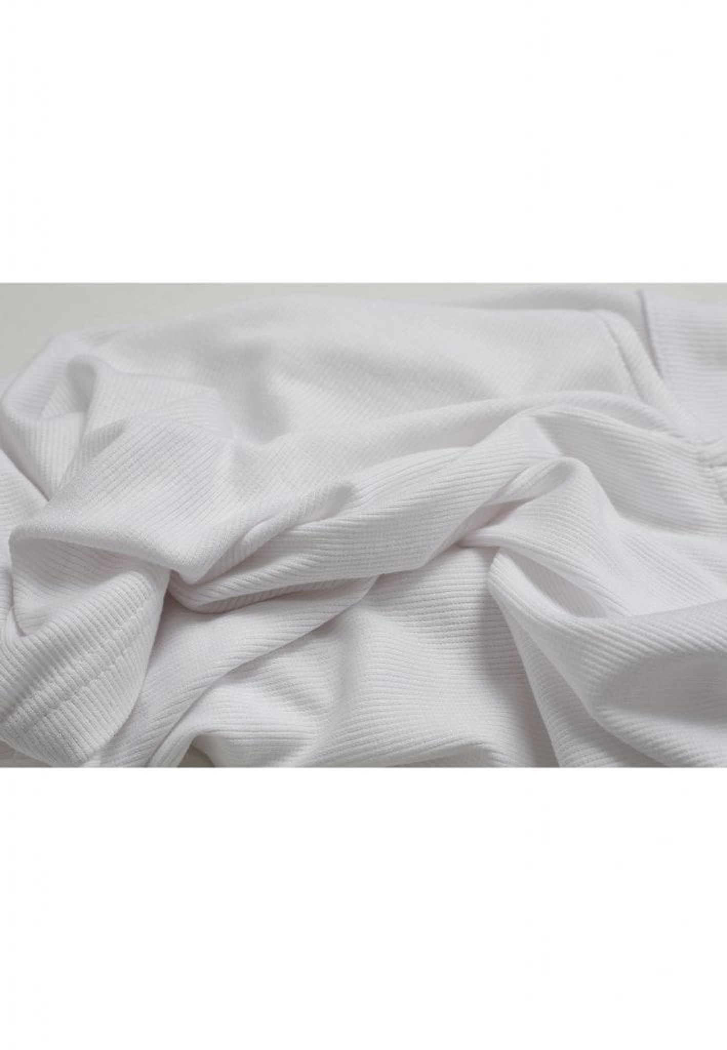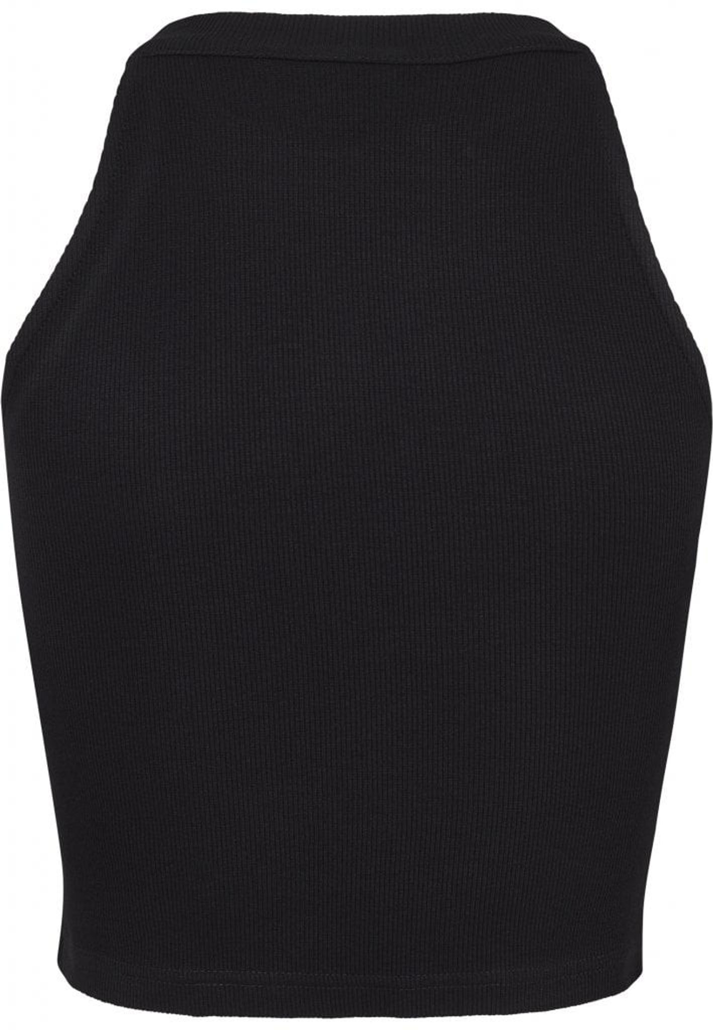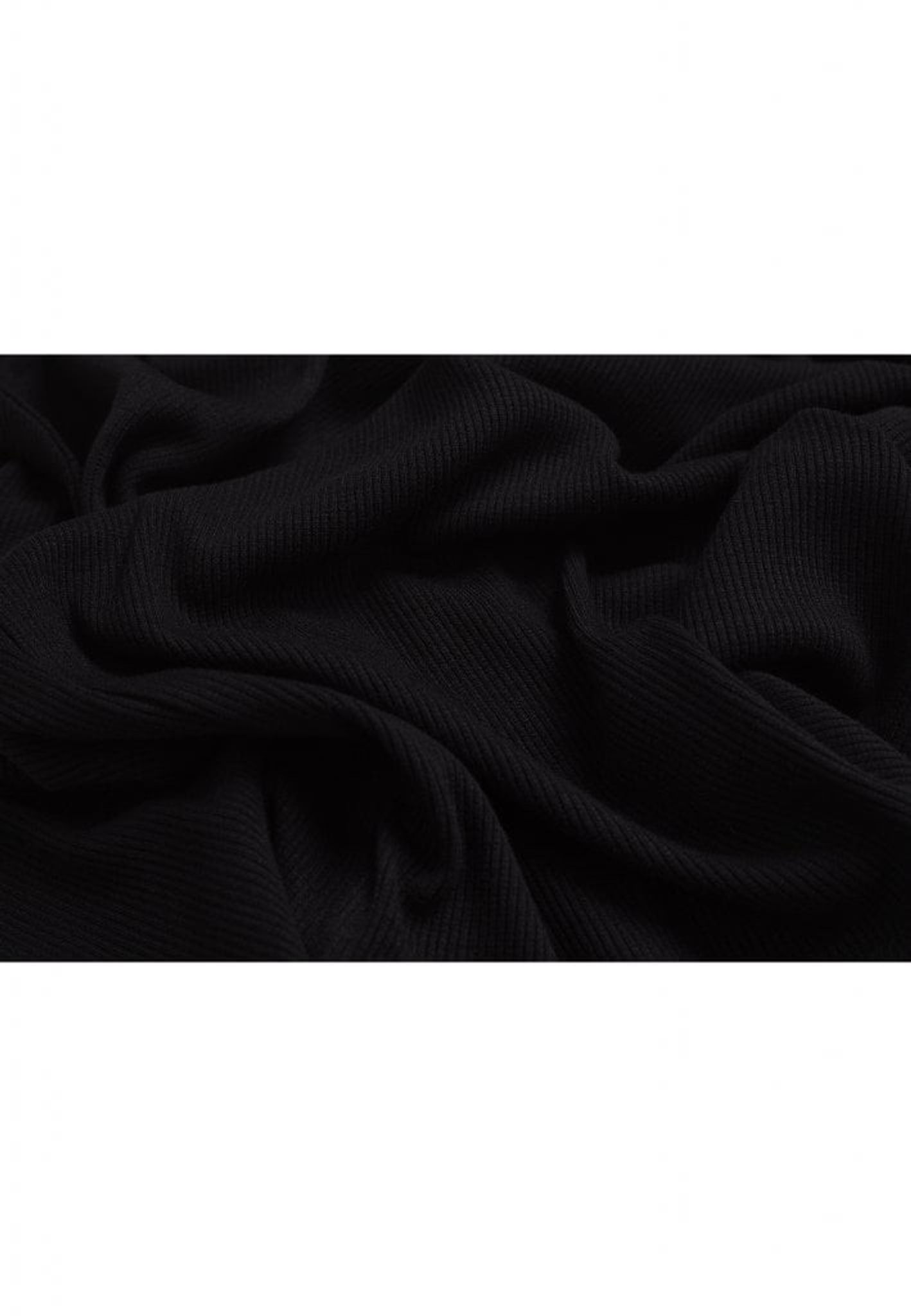 Stoffet er ribbet viskose, og faldet øverst er lige og med dobbelt sting.