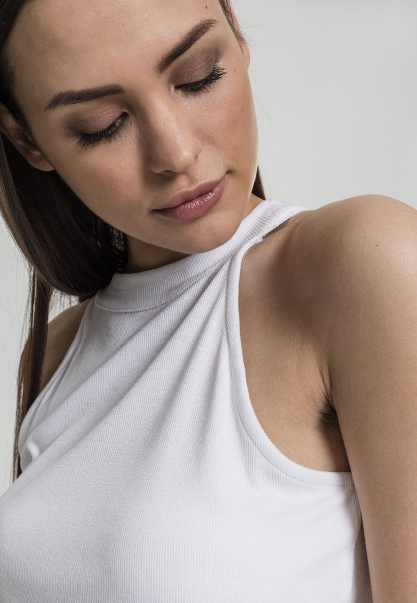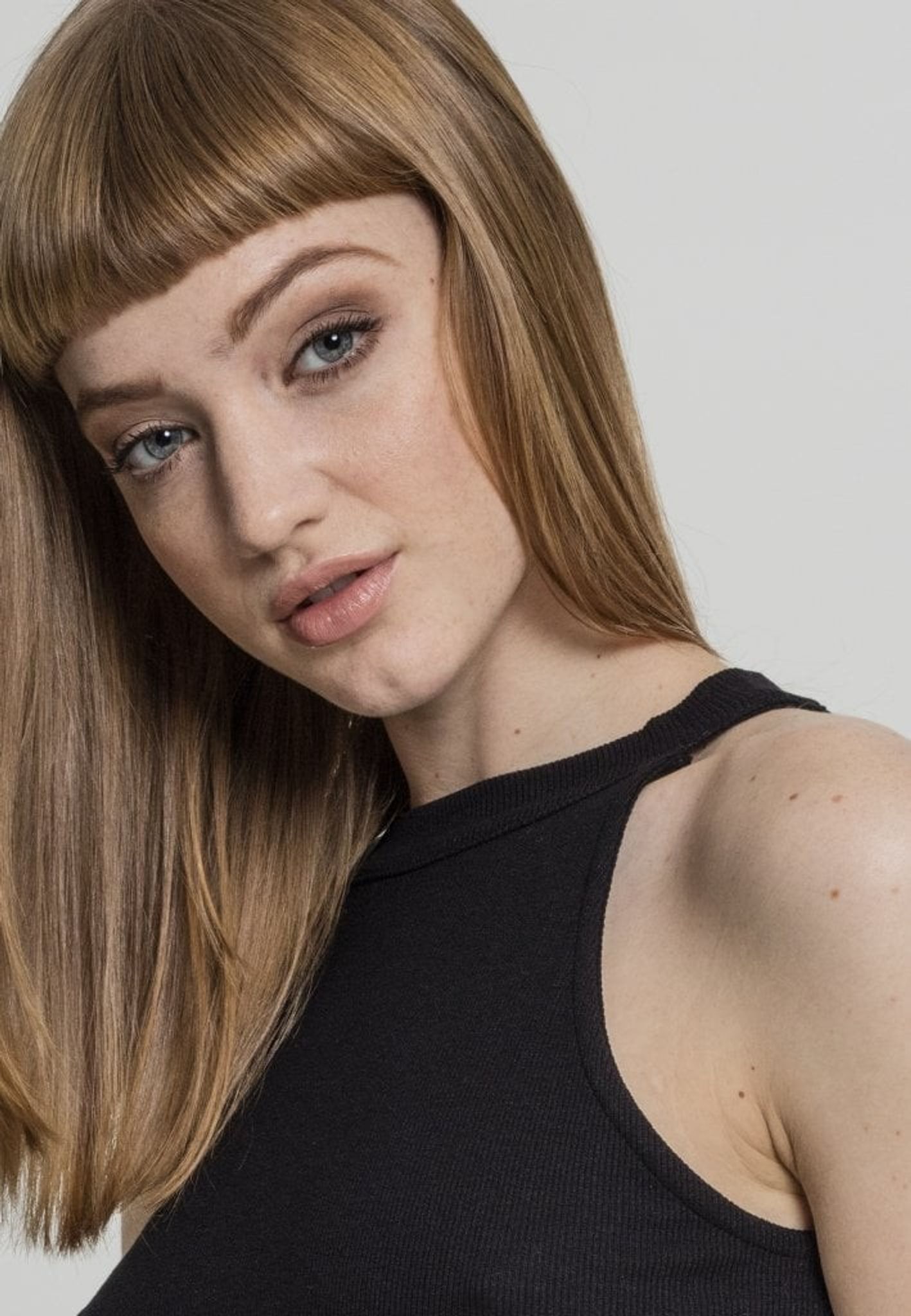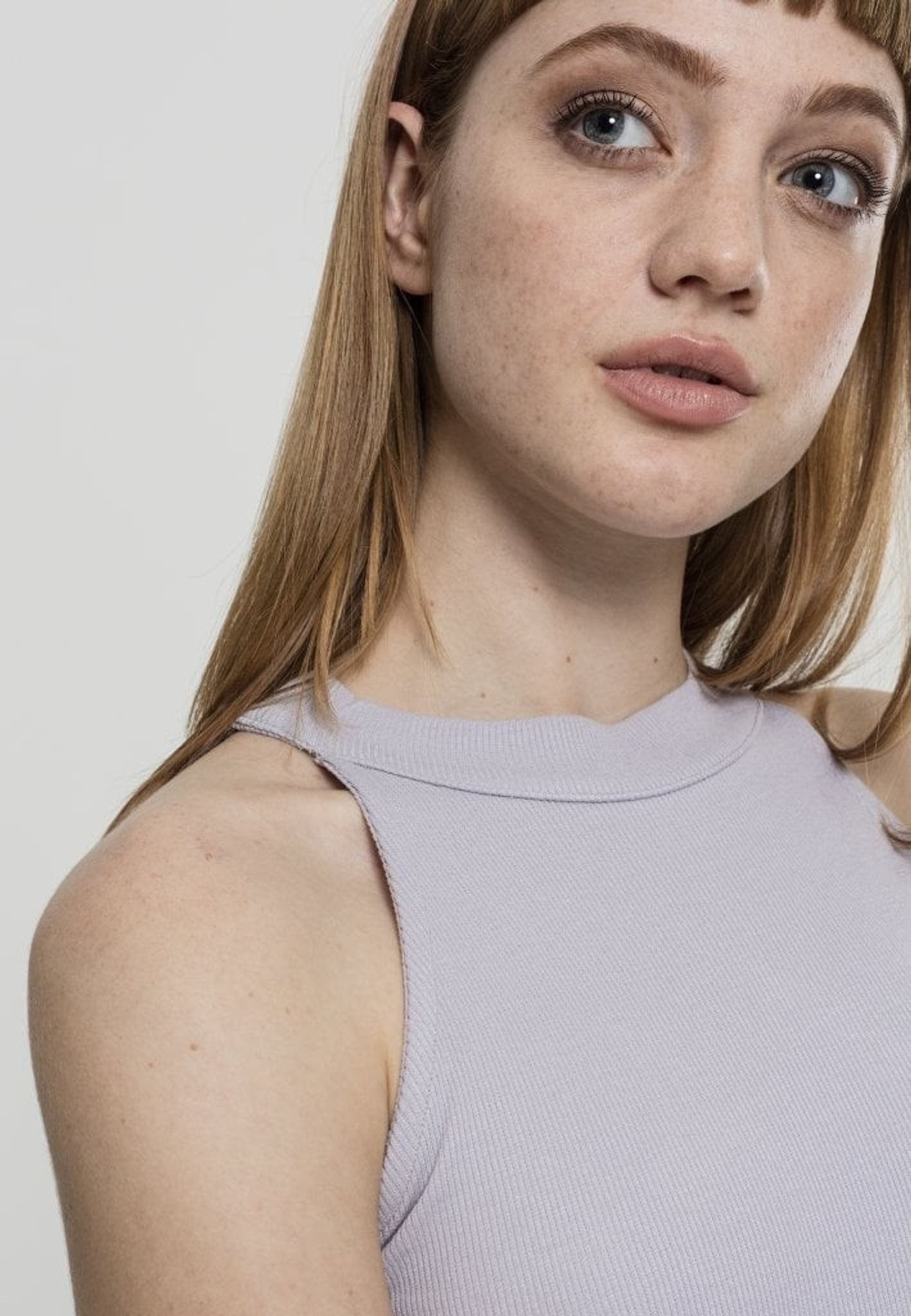 Stoffet er ribbet viskose, og faldet øverst er lige og med dobbelt sting.