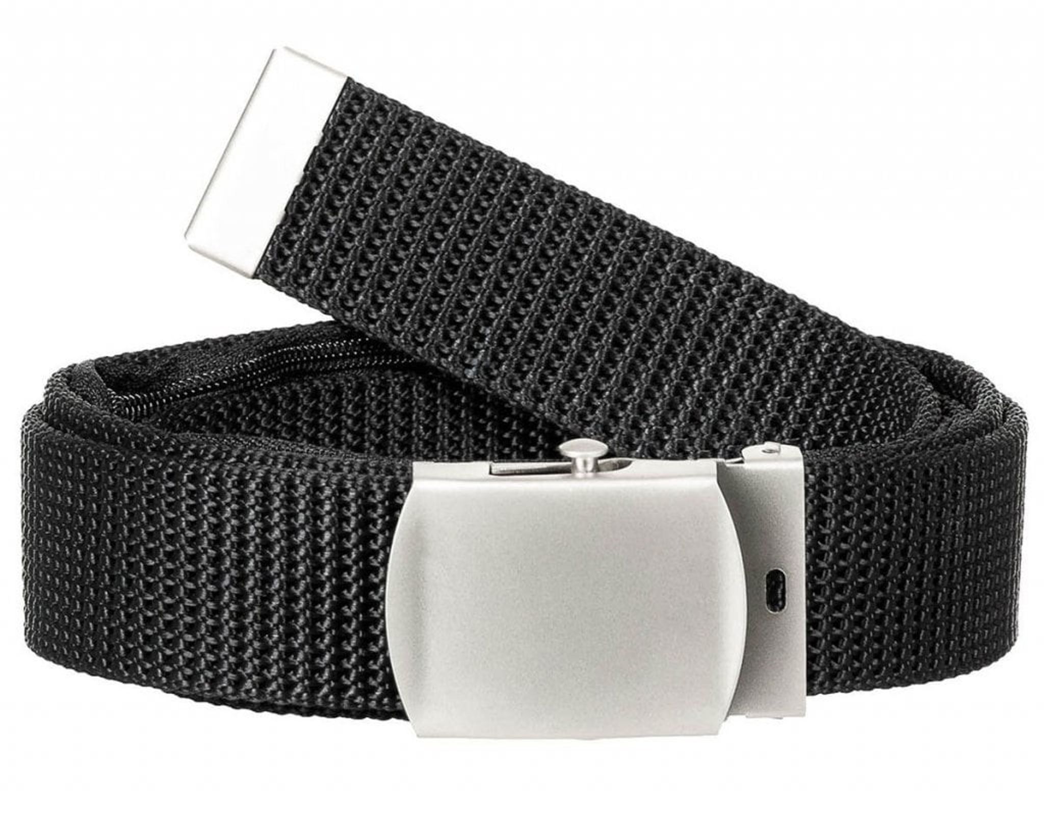Et stofbælte med et skjult rum på indersiden af bæltet, der fungerer som opbevaring af kontanter eller lignende.