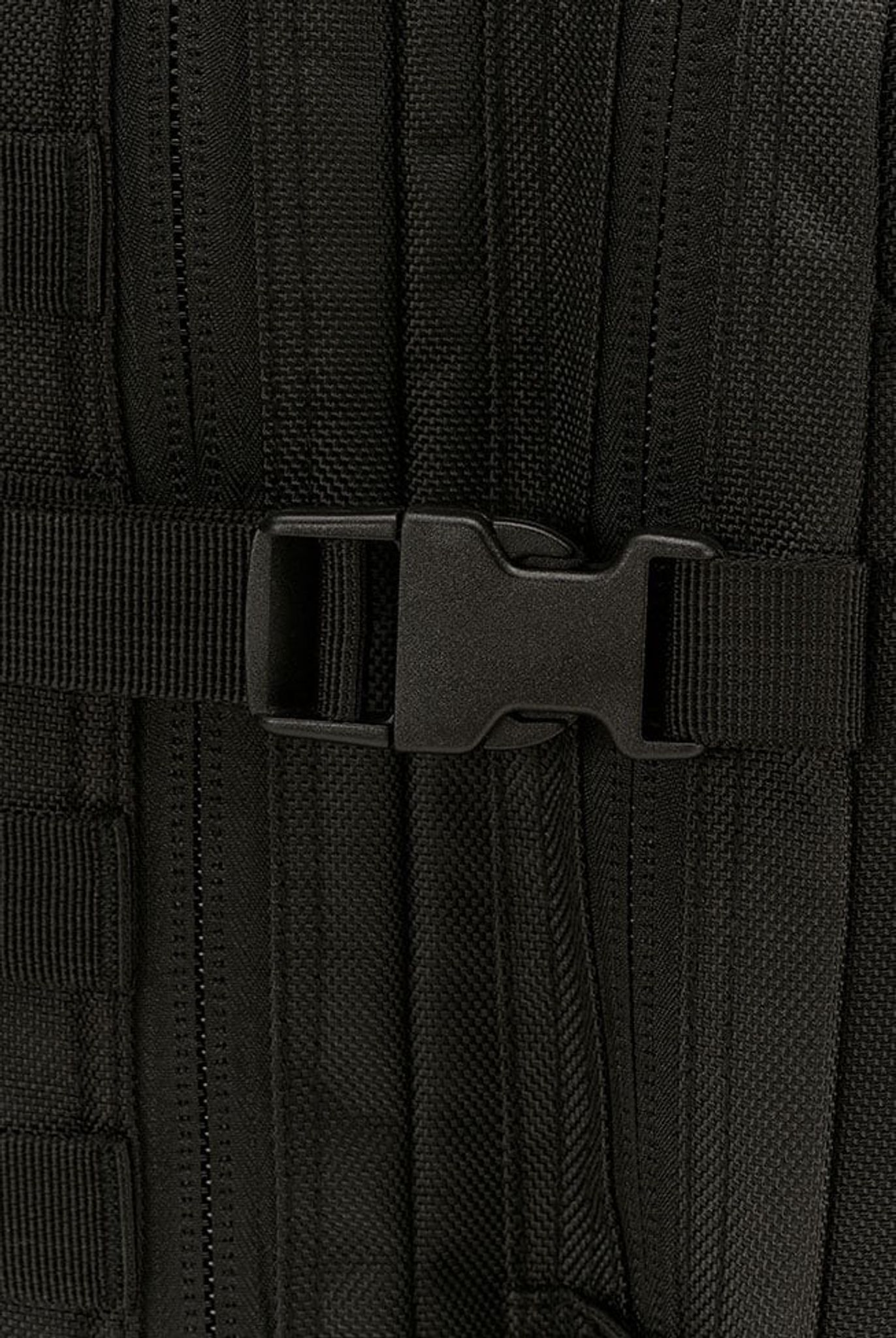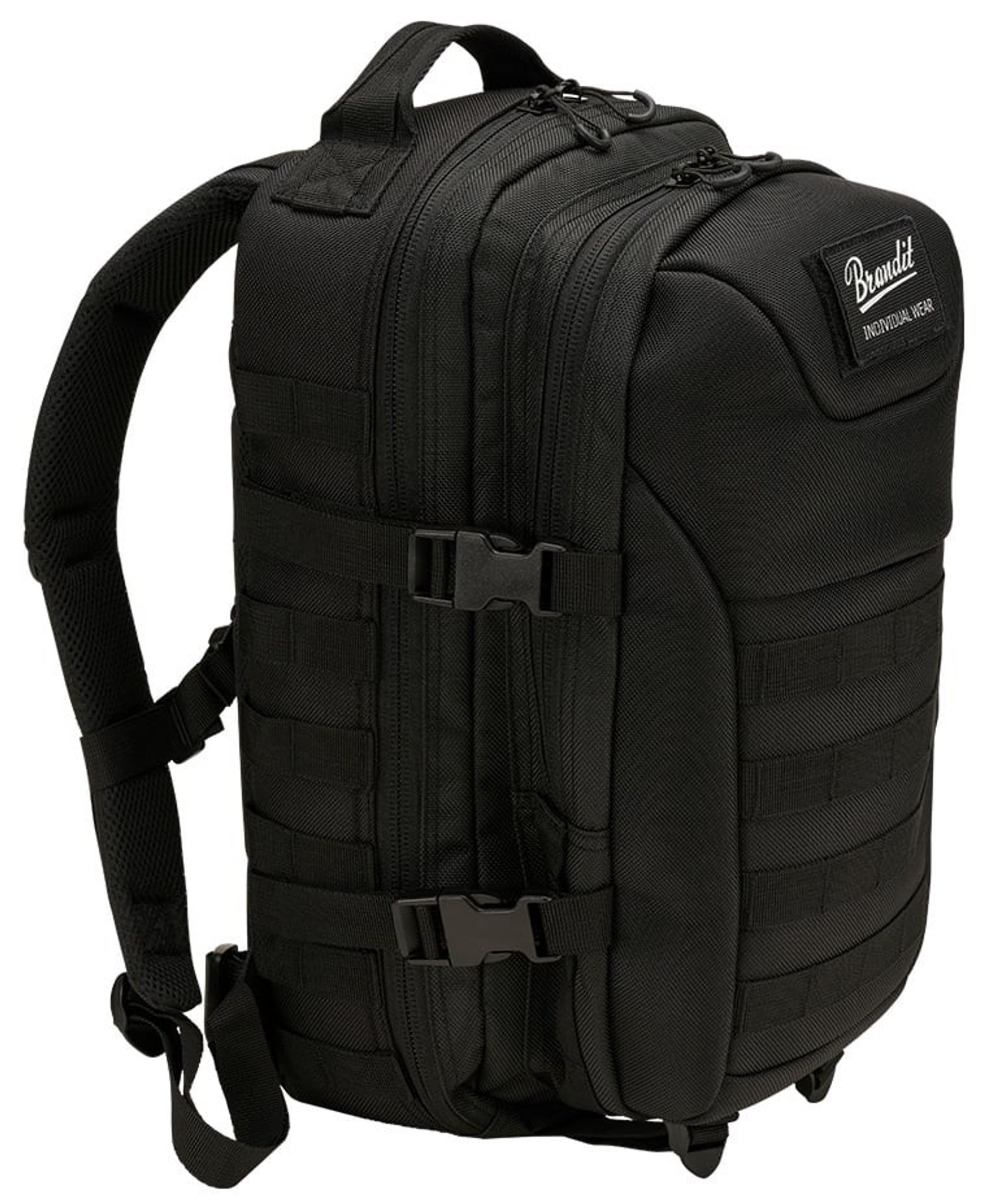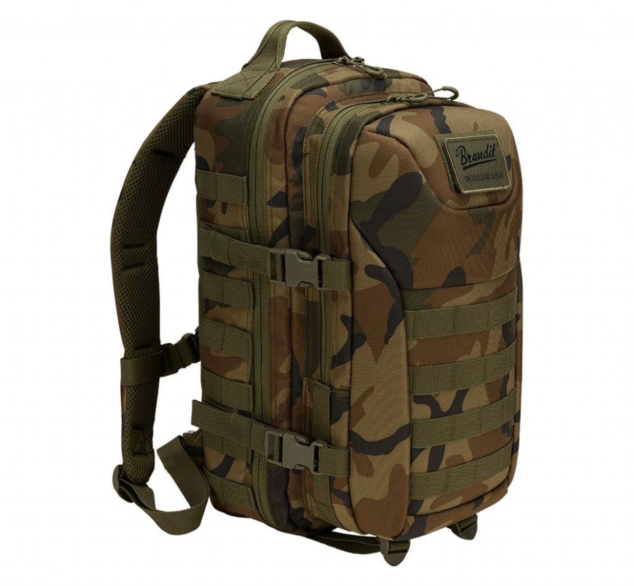 Ydersiden har flere praktiske funktioner såsom robust vendbar lynlås, C-ring lynlåse, MOLLE løkker, Brandit patch, patch krog-og-løkke overflade, sidekompressionsstropper, justerbar brystrem, polstrede skulderstropper, justerbar hoftebælte.