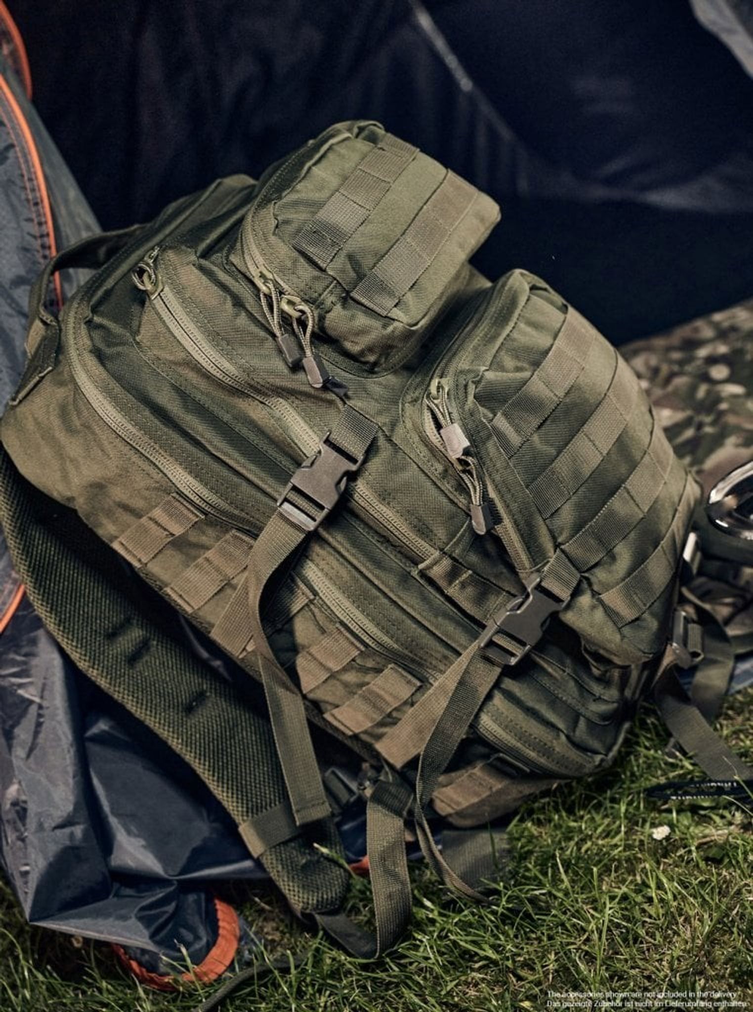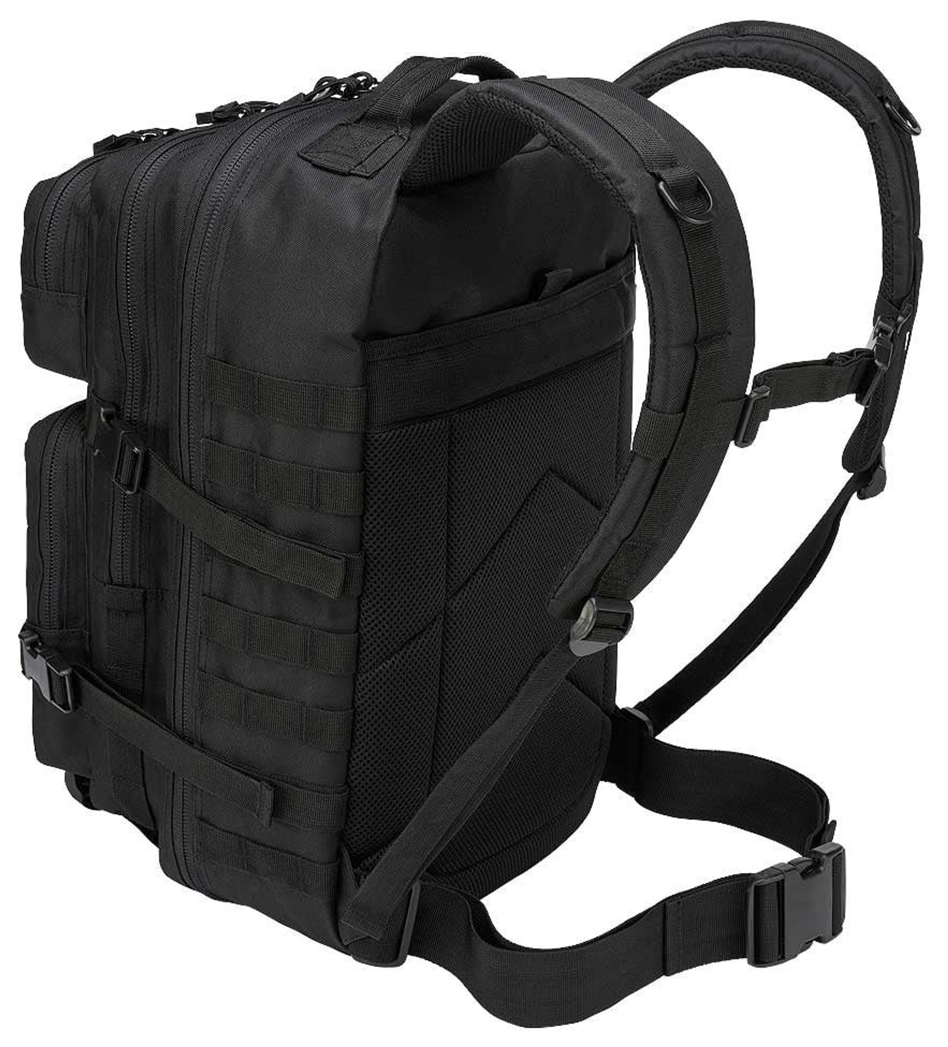 En solid rygsæk med molle-system. Rygsækken har polstrede skulderstropper og en justerbar taljerem, der sidder godt på ryggen. Bagsiden er også polstret på tasken og er også designet til at afkøle din ryg med luftkanaler.