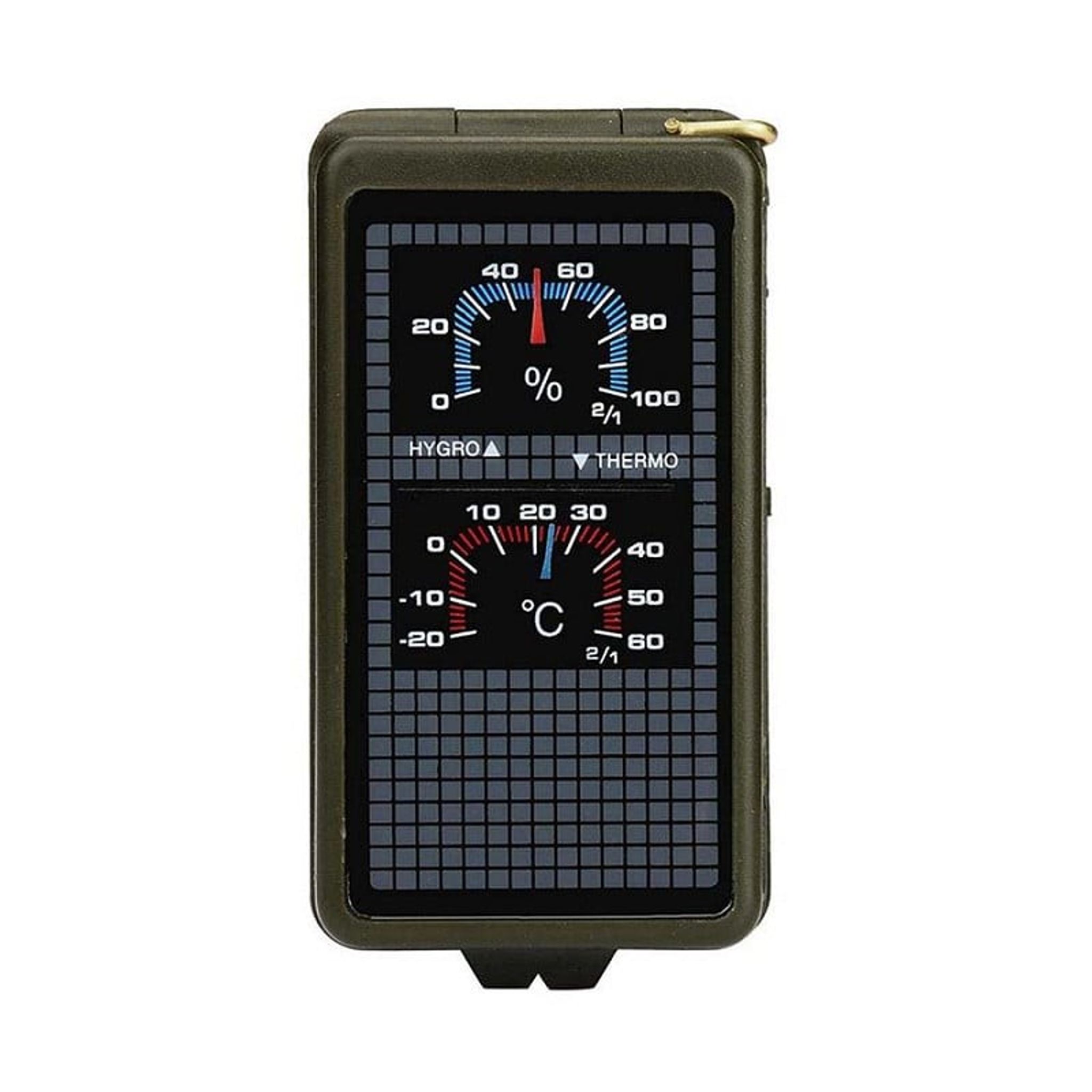 Værktøjet indeholder et termometer, der måler temperaturen, samt et hygrometer, der giver information om luftfugtigheden. Der er også et LED-lys til belysning i mørke forhold og en reflektor for at øge synlighed.