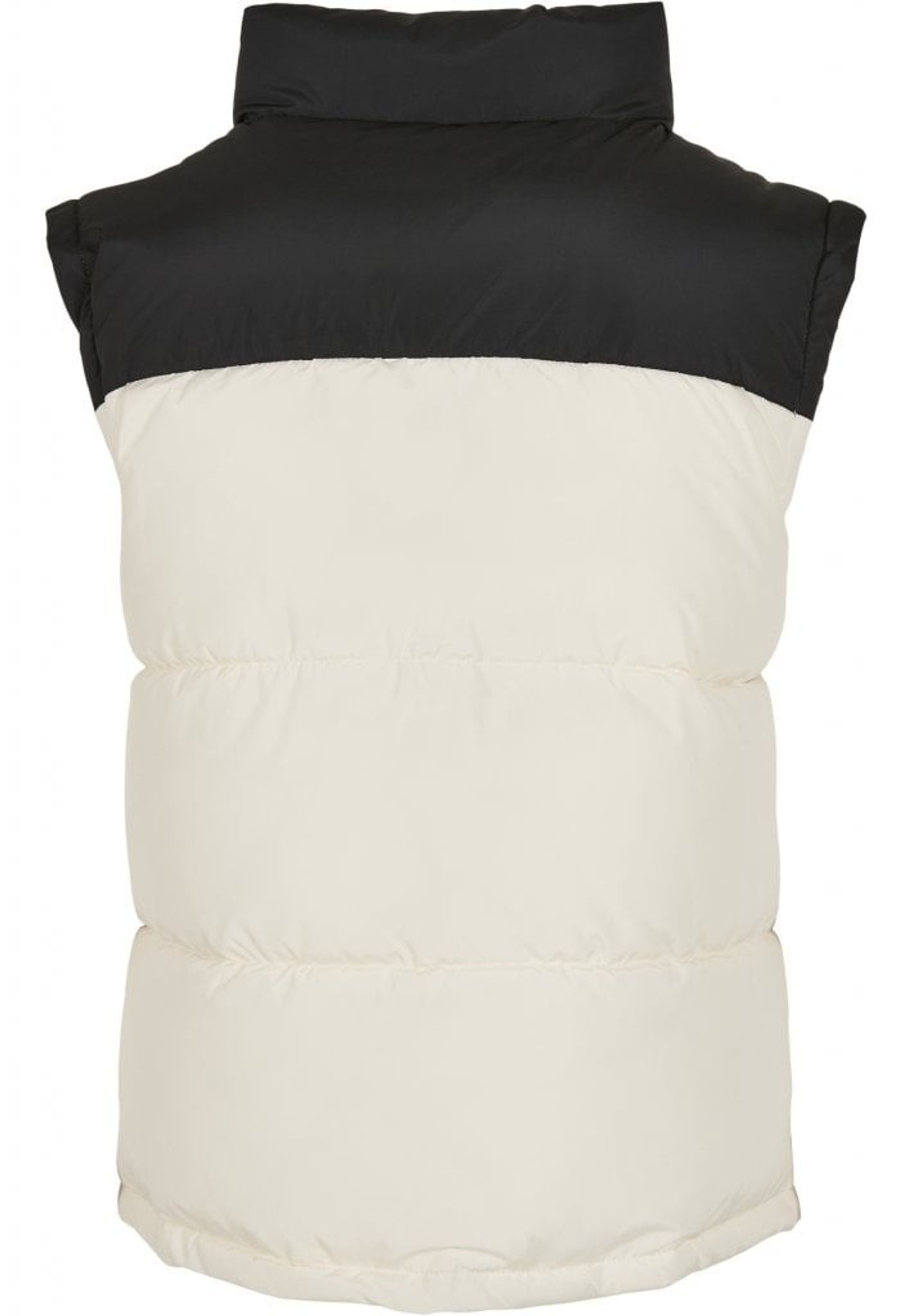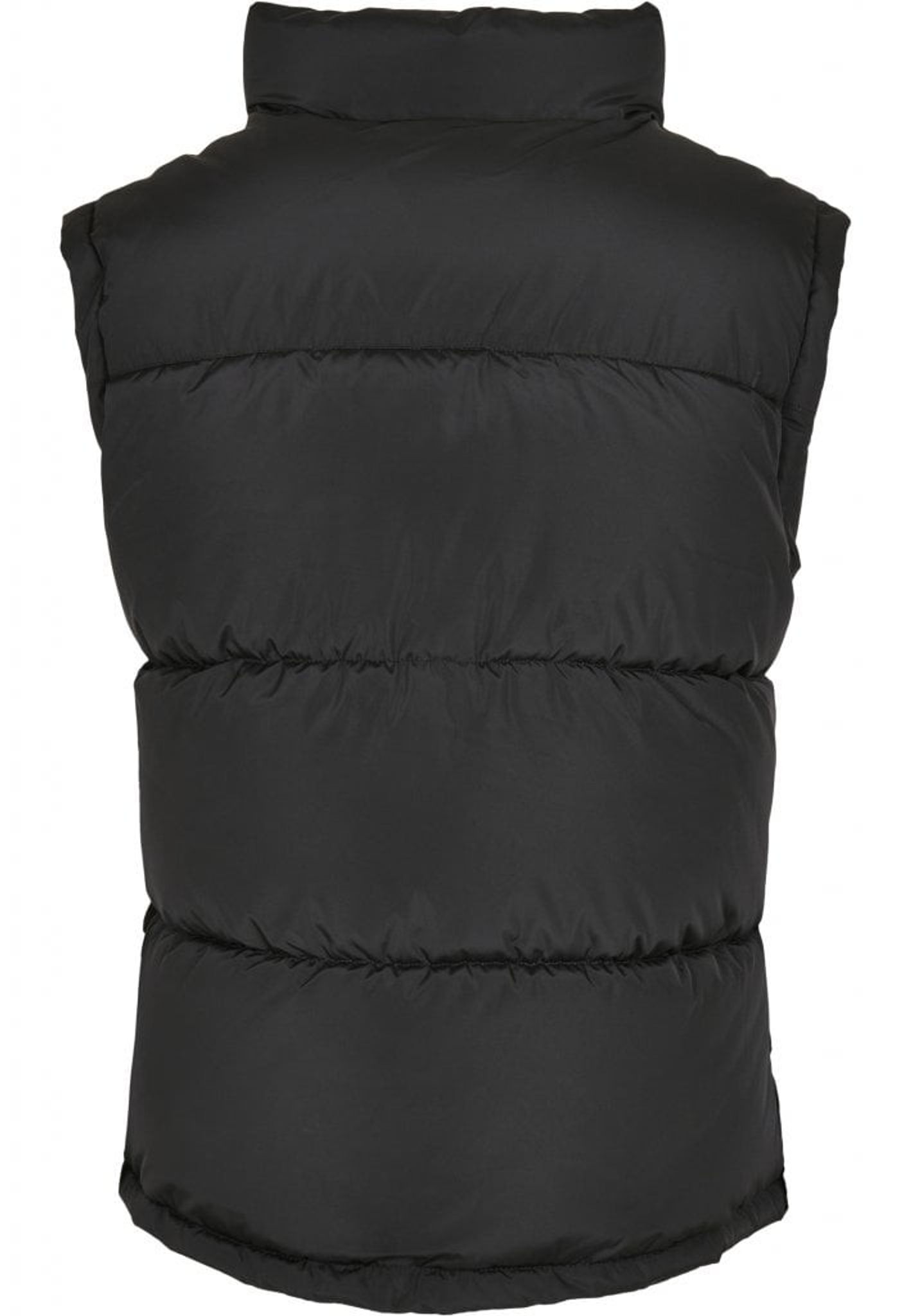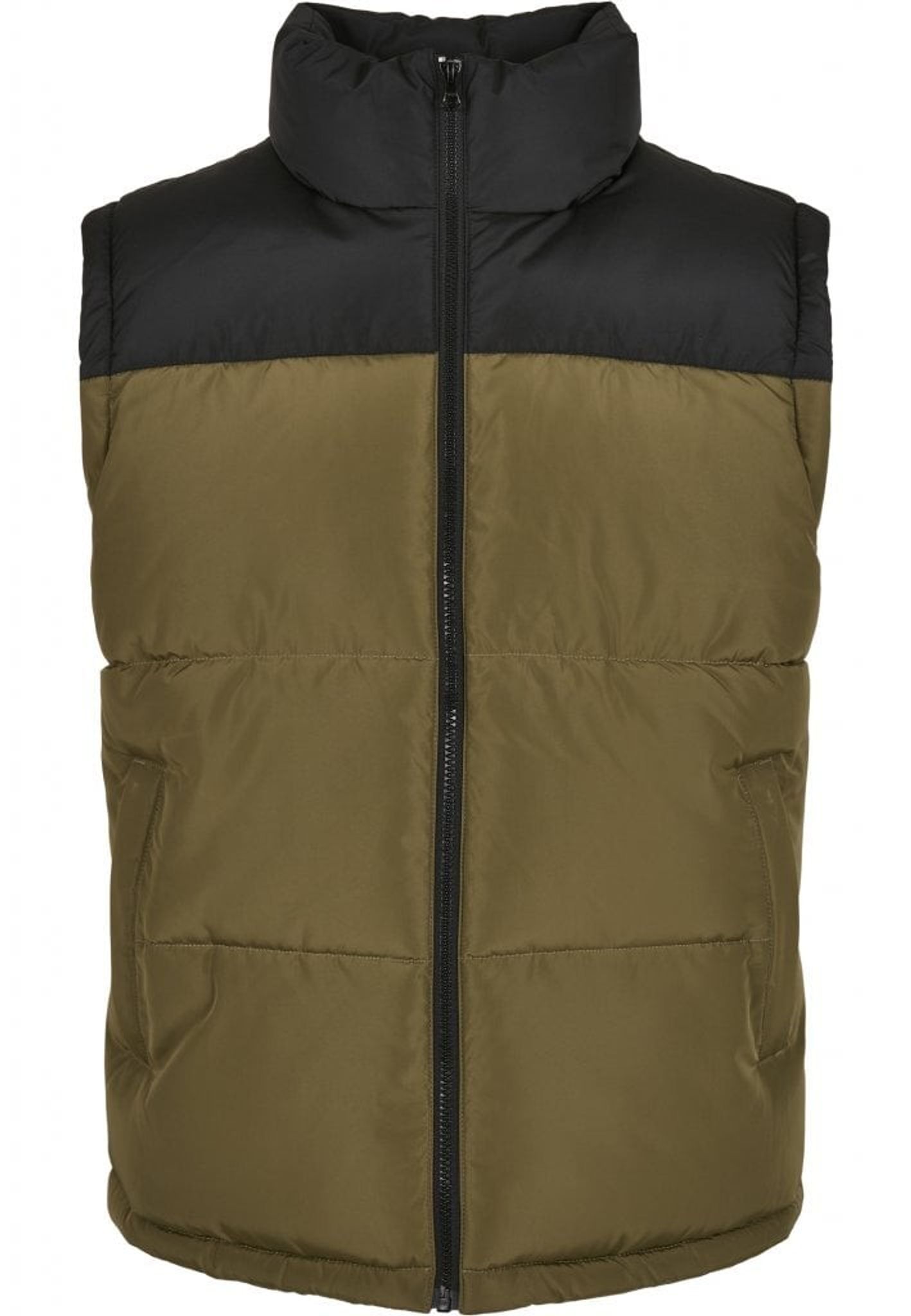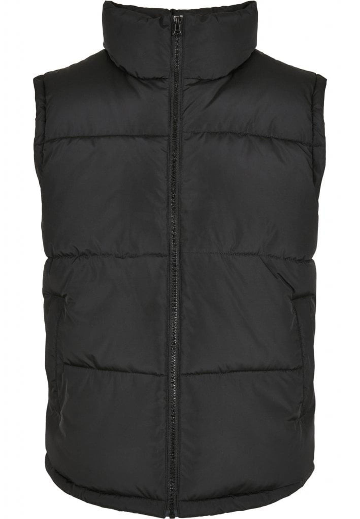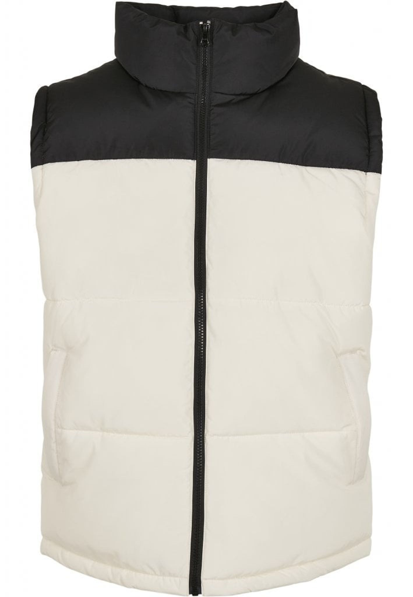 Denne vest lukkes med lynlås foran og har en stand-up krave. Lynlåsen går op i kraven.