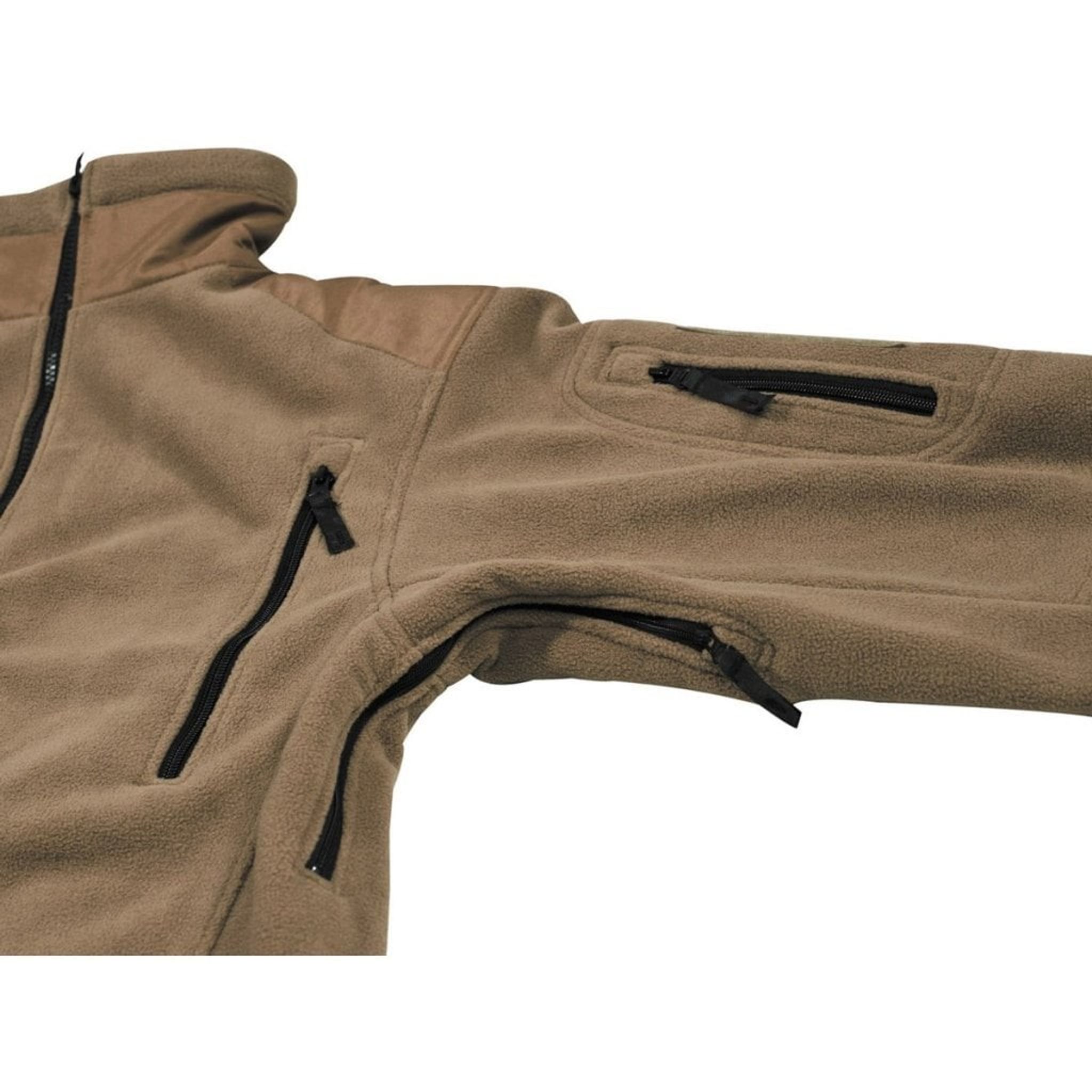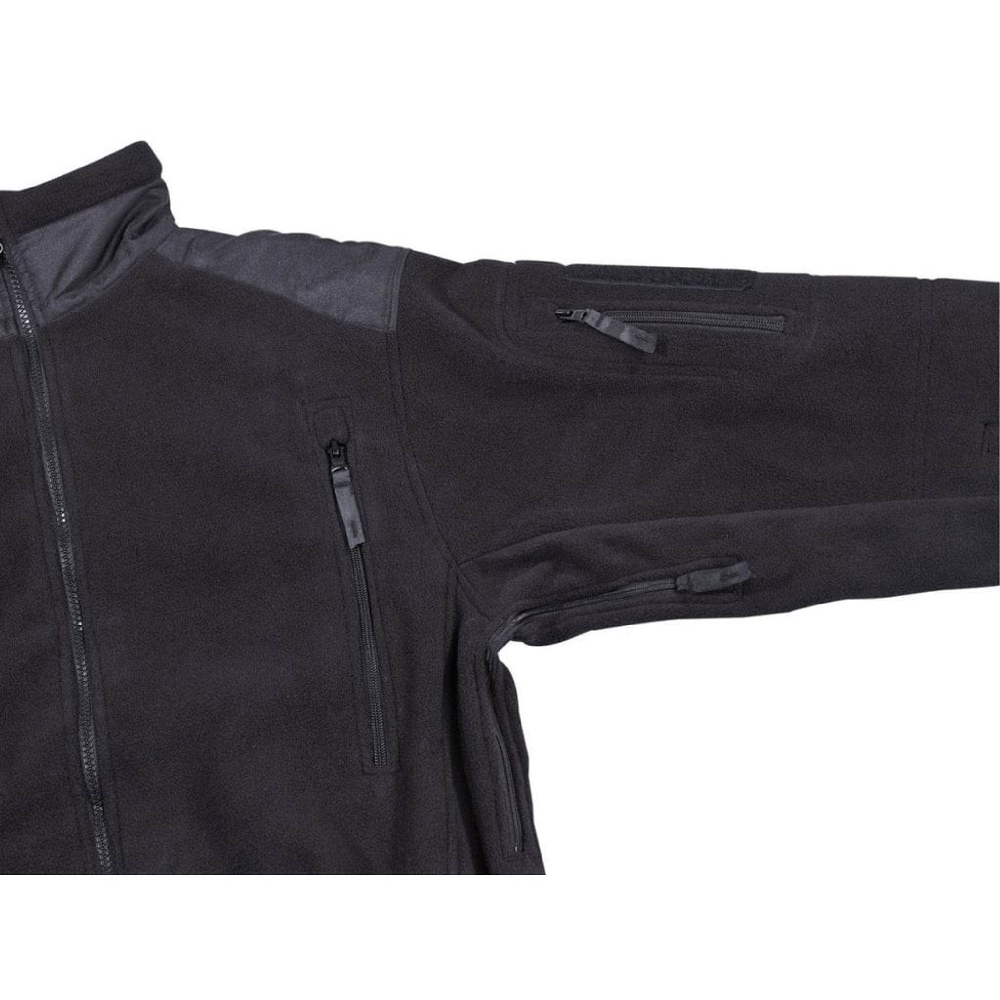 Jakken lukkes med lynlås foran, og jakken har to lommer med lynlås foran. Der er lommer på armene med lynlås og velcro-panel.