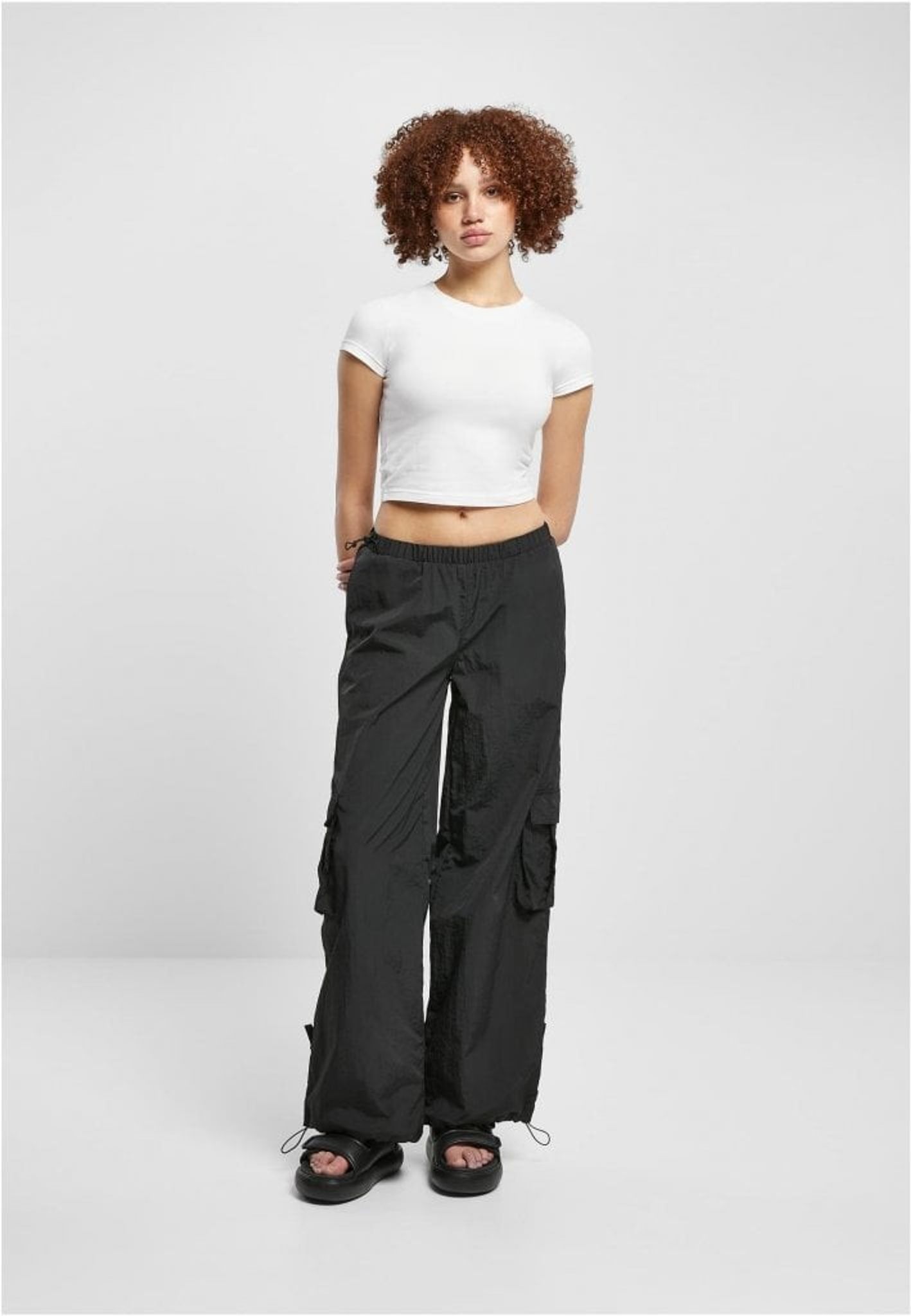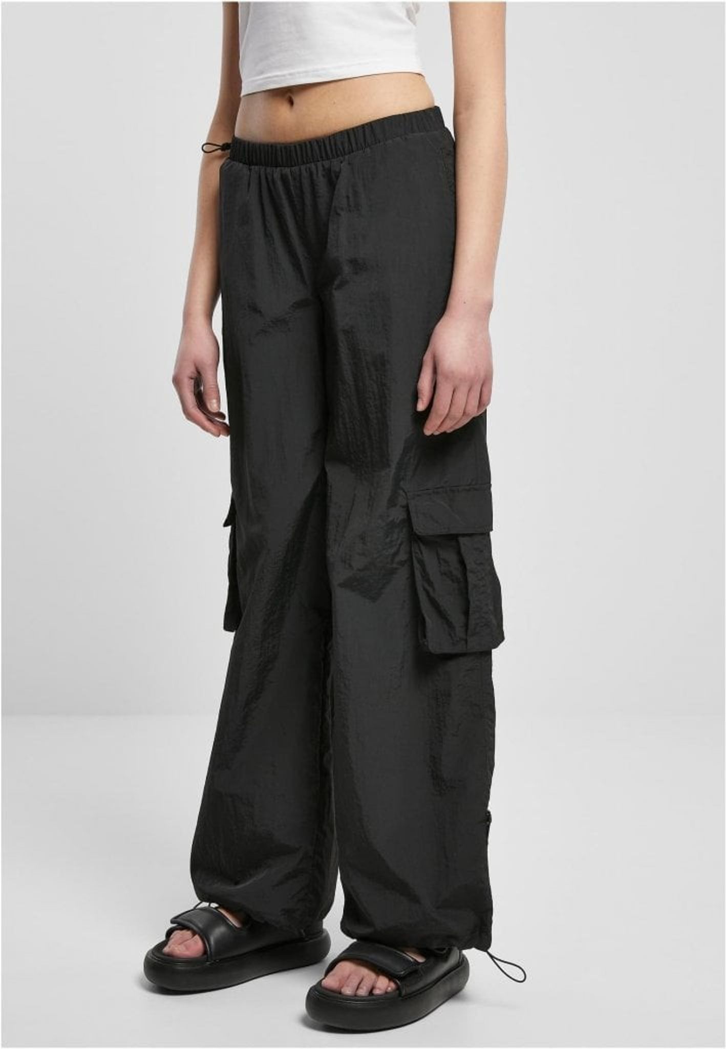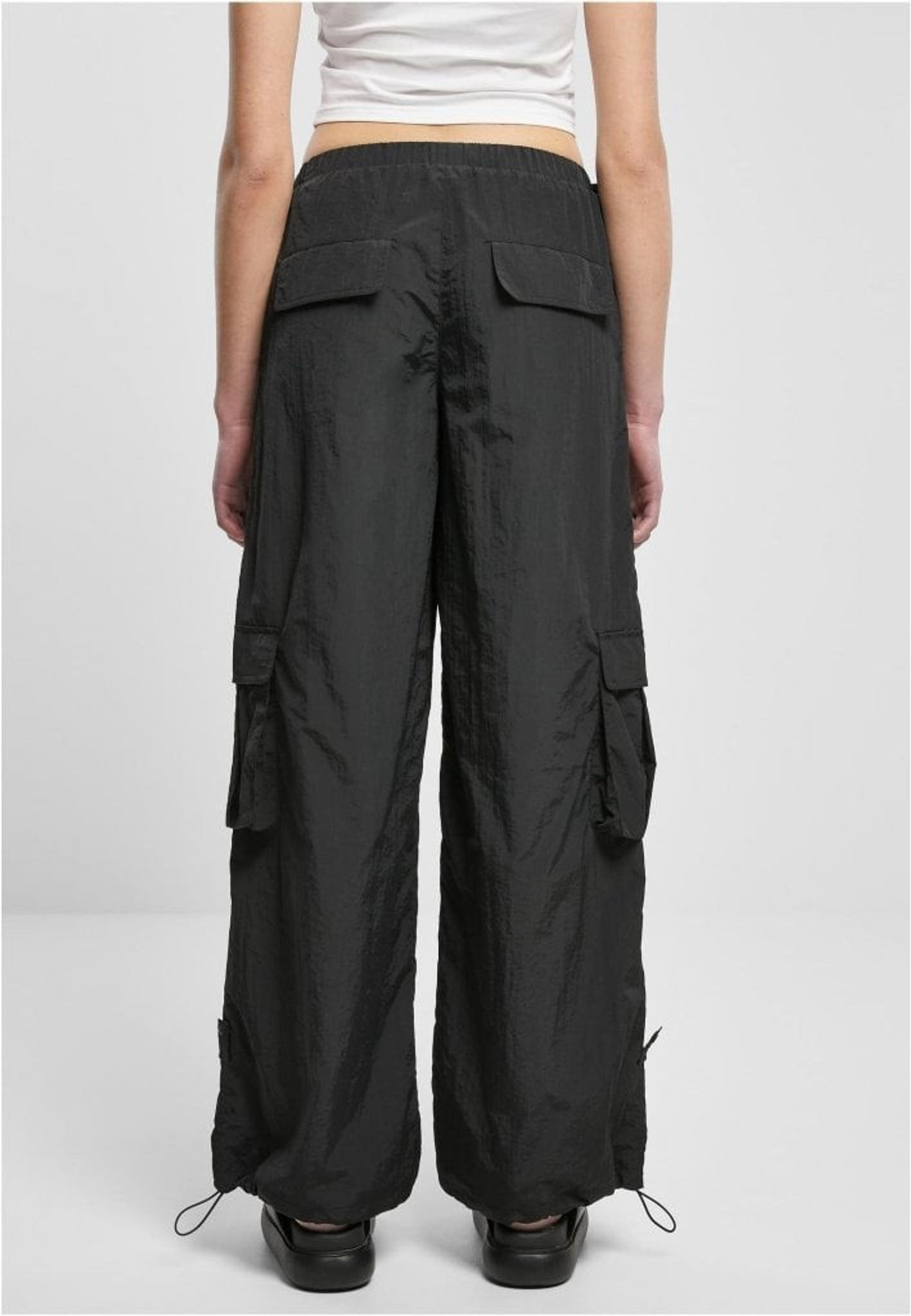 Vide Nylon Cargobyxor Dam er et par behagelige og stilfulde bukser, der kombinerer ballonbukser med cargostil. Bukserne har en elastisk talje med snøre og stopper, der sidder lige over hofterne. Også de elastiske benlommer er udstyret med stopper, hvilket skaber den videde puffede form. Opbevaring findes i form af to sidelommer og to baglommer med knapper - de ekstra cargolommer er placeret ved knæhøjde. Materialet er lavet af nylonkrøllet og pasformen er løs.