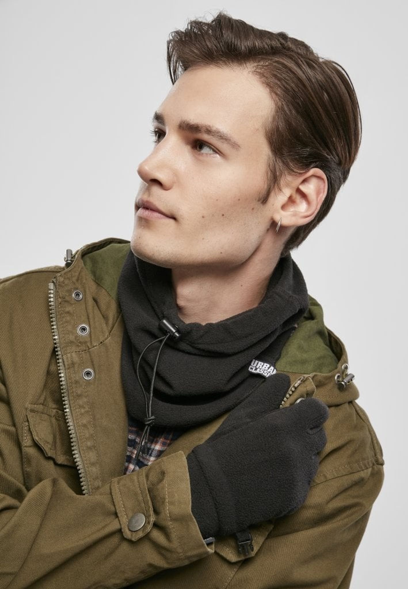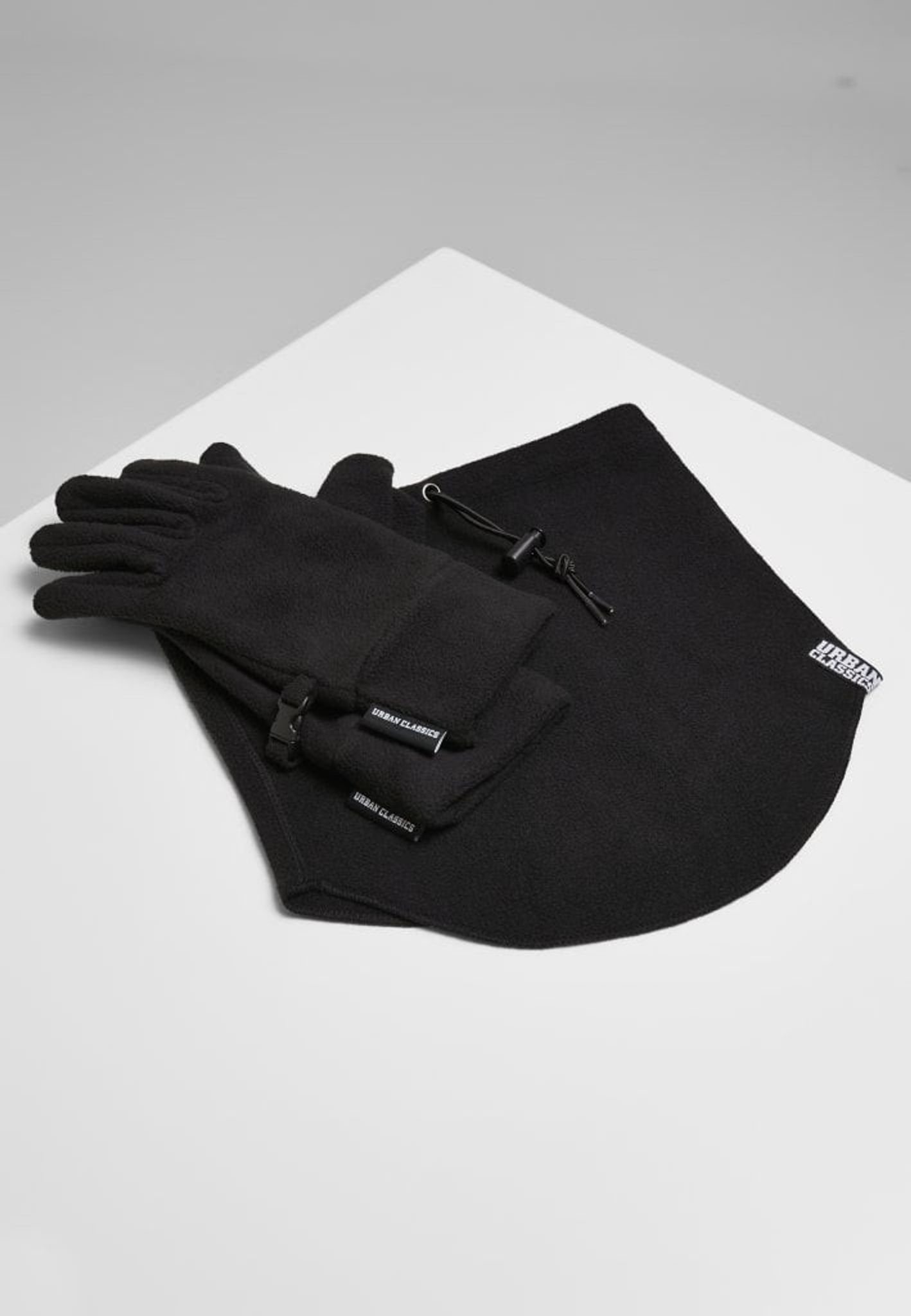 Fleecehandsker og halsvarmer i en pakke.
