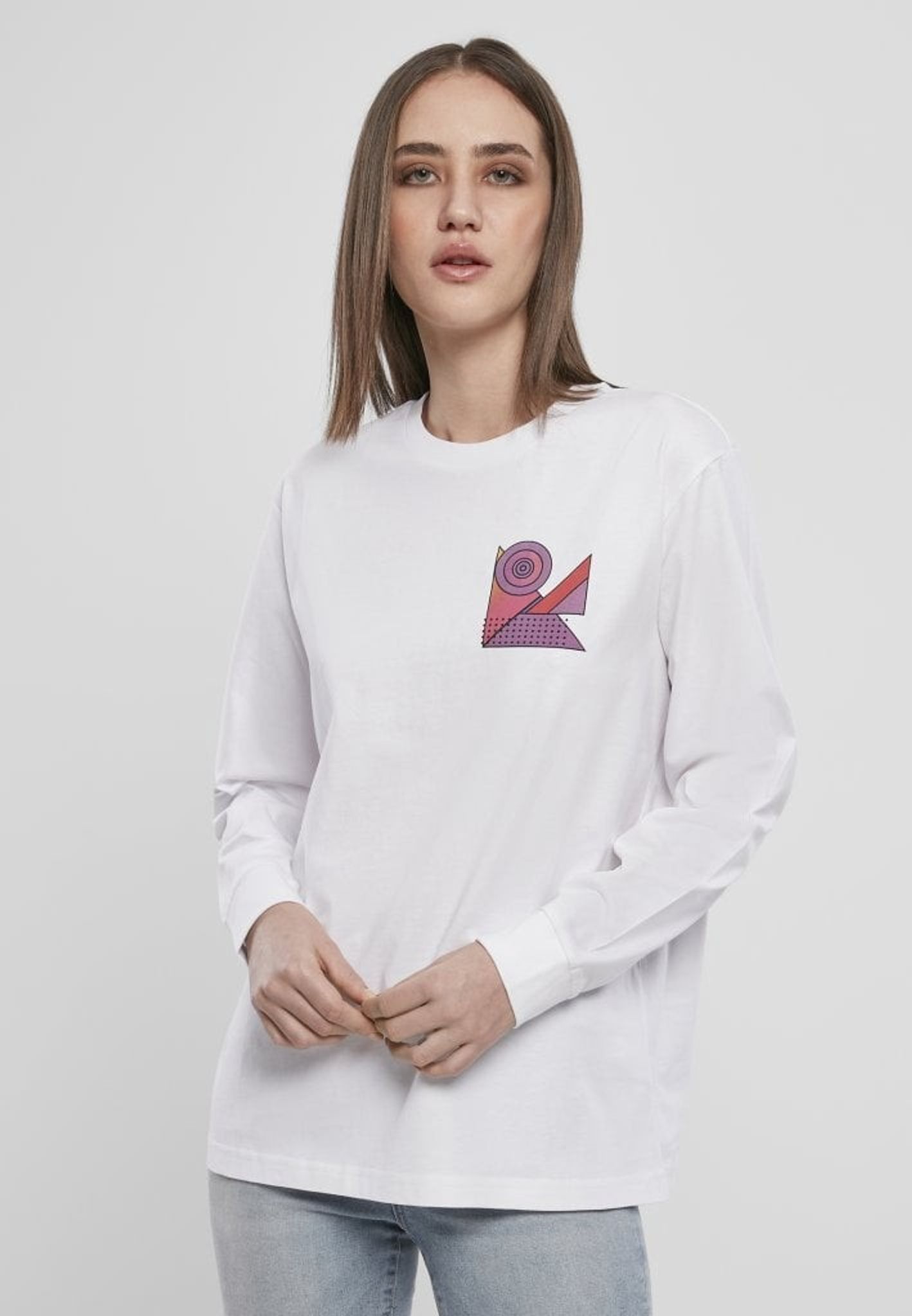 En tröja med lång arm med tryck på bröstet och bak på ryggen.